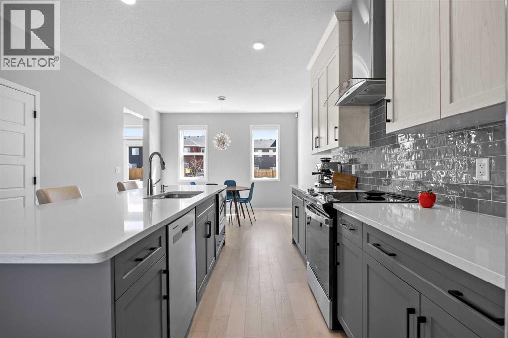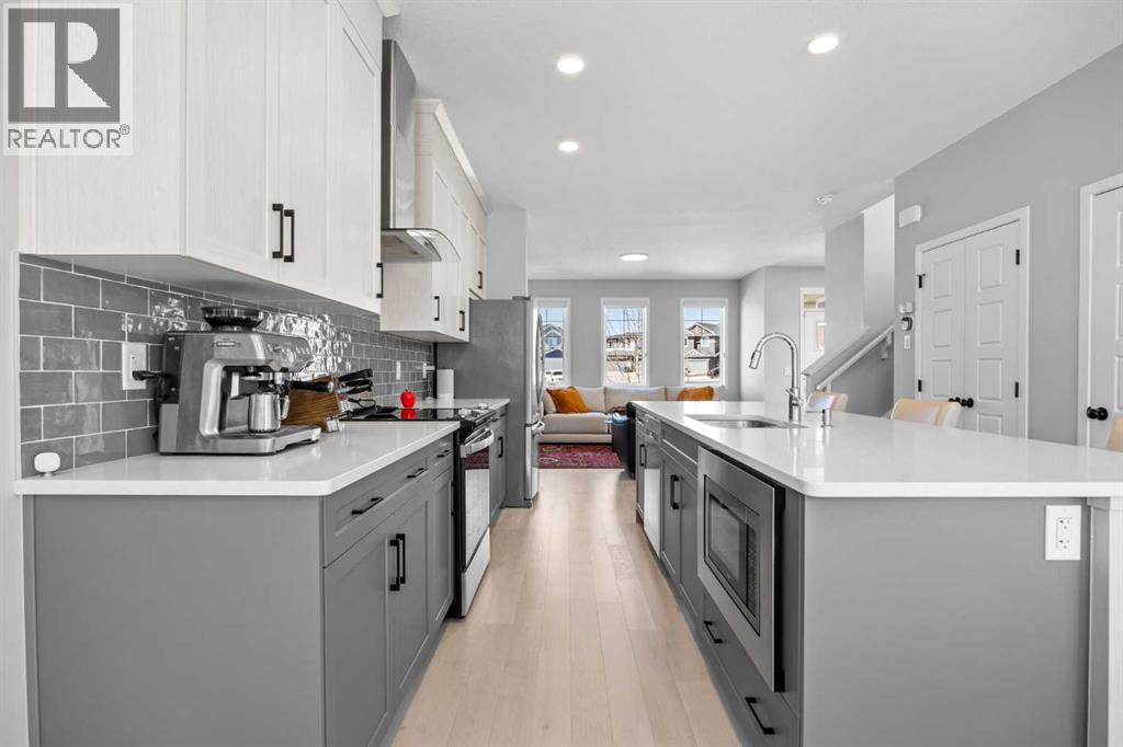 BETTER THAN NEW!! FULLY UPGRADED • AIR CONDITIONING • WINDOW COVERINGS • OPEN VIEWS • QUIET LOCATION Welcome to this IMMACULATE, LIKE-NEW Trico-built home offering a level of finish, comfort, and added value that goes ABOVE AND BEYOND what you’ll typically find in new builds today.The bright OPEN-CONCEPT MAIN FLOOR features RICH HARDWOOD FLOORING and a thoughtfully designed layout centered around a stunning CHEF-inspired kitchen—complete with QUARTZ countertops, TILE Backsplash, full height white cabinetry, a HUGE modern grey island, STAINLESS STEEL appliances + plenty of workspace. The kitchen flows seamlessly into the spacious living room and SUN-FILLED dining area, creating the perfect setup for both everyday living and entertaining.Perfectly positioned with NO HOMES DIRECTLY IN FRONT, this home offers OPEN VIEWS and an abundance of NATURAL LIGHT—creating that bright, airy feel buyers are always looking for.Upstairs, you’ll find a generous primary retreat featuring a SPA-INSPIRED 5-PIECE ENSUITE, along with 2 additional bedrooms, another full 4-PIECE bathroom, and the convenience of UPPER FLOOR laundry.The basement is fully carpeted and provides an excellent opportunity for future development—whether you envision a rec room, home gym, 4th bedroom or additional living space.What truly sets this home apart are the UPGRADES ALREADY COMPLETED—saving you time, money, and hassle compared to new construction. These include AIR CONDITIONING, a NEW HOT WATER TANK, WINDOW COVERINGS THROUGHOUT, a landscaped backyard + a POURED GARAGE PAD & FOOTING already in place for your future garage!Situated in a QUIET LOCATION with quick access to Bridgeport’s growing amenities and East Hills Shopping Centre, this home offers the perfect balance of CONVENIENCE, COMFORT, and LONG-TERM VALUE. (id:51989)