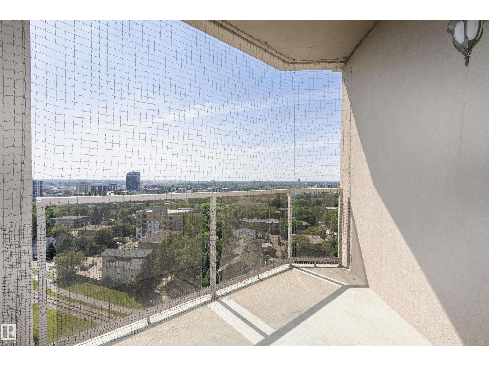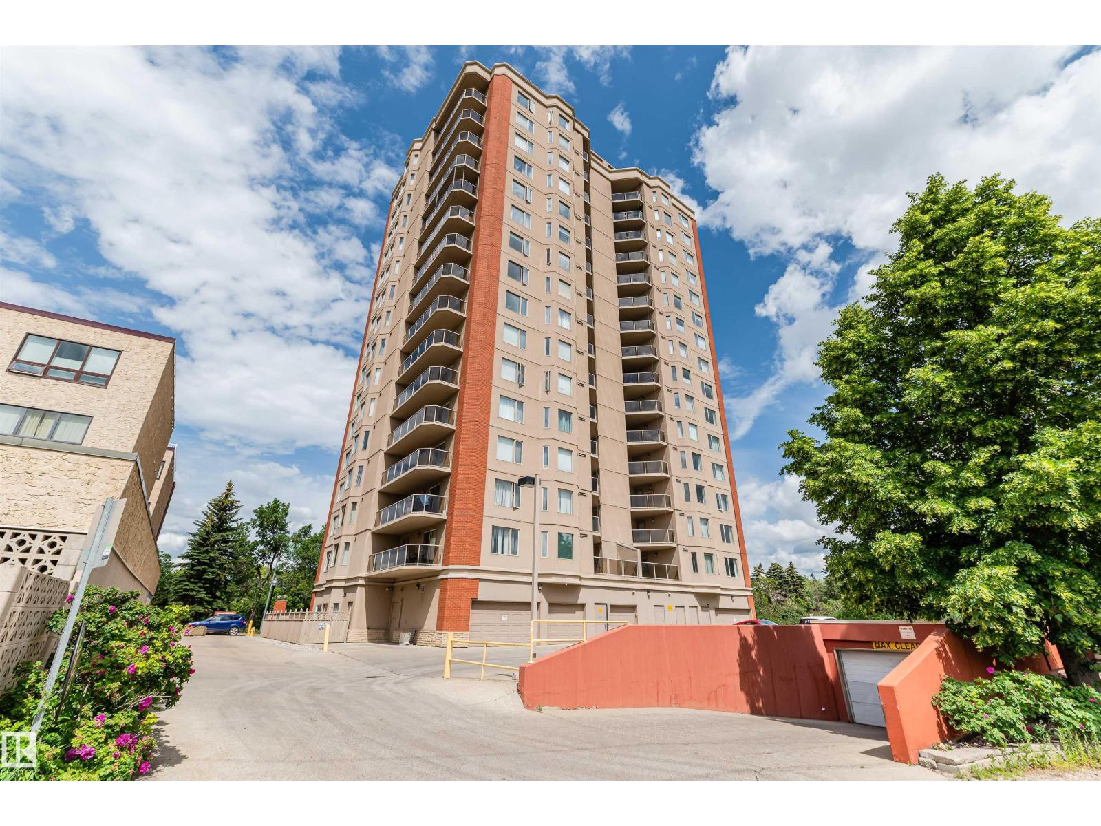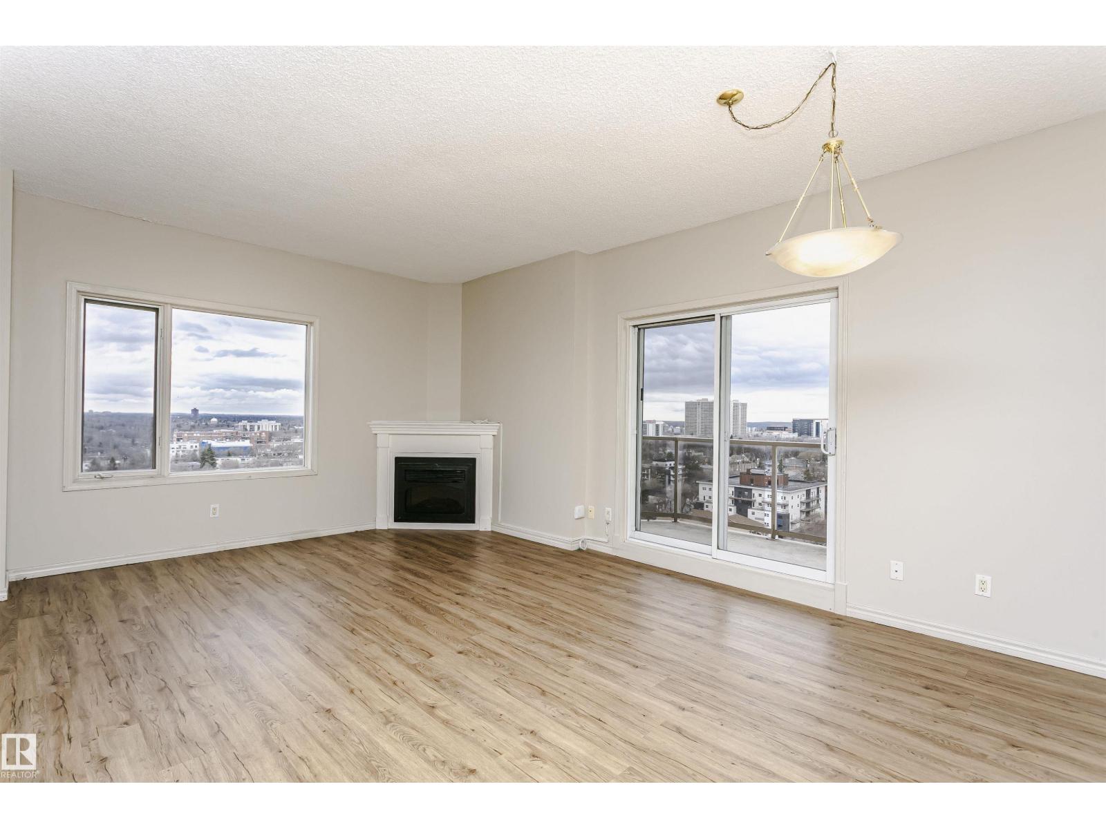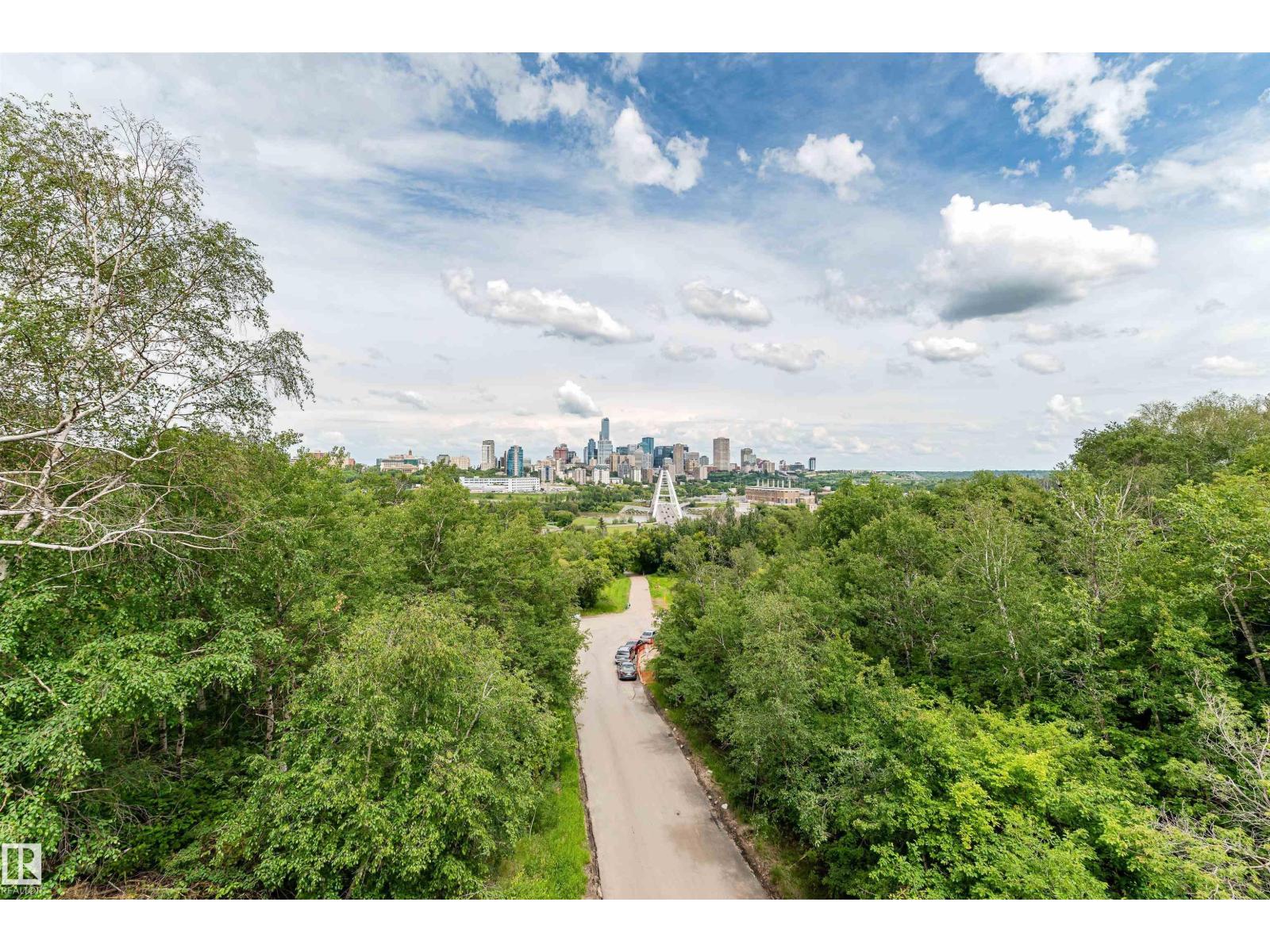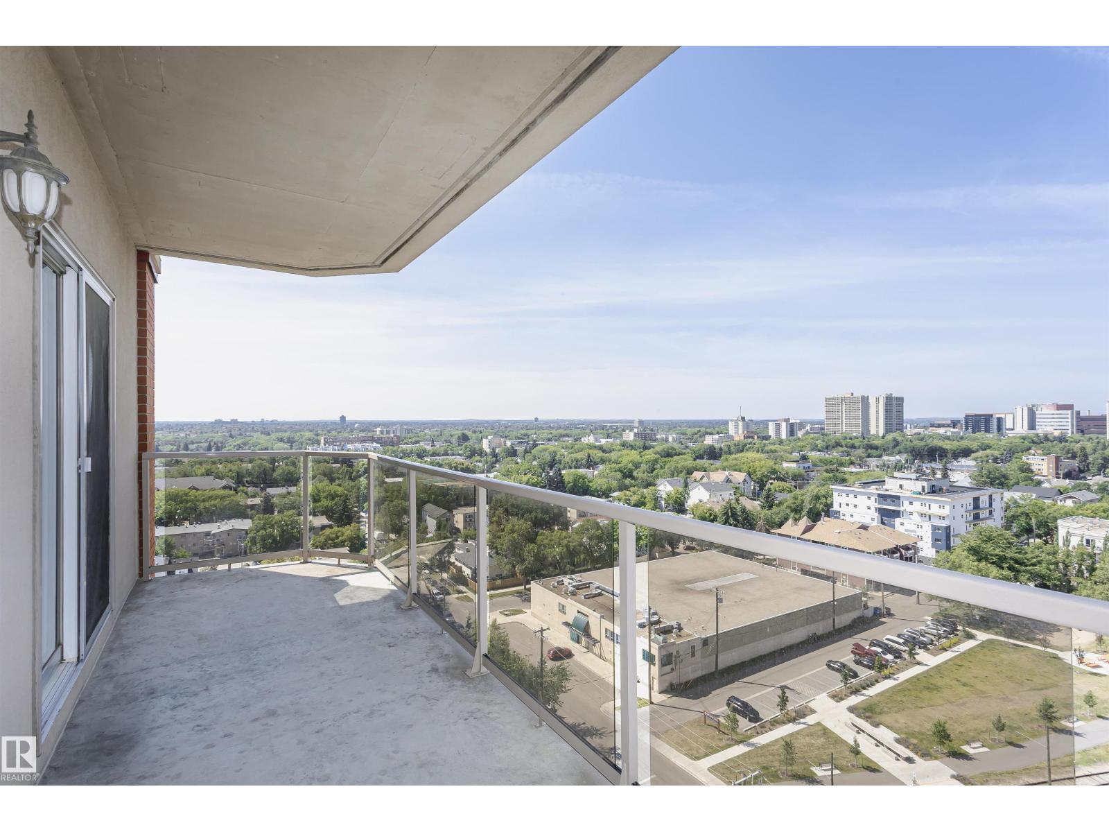 Corner penthouse suite with panoramic views of the river valley and downtown skyline, perfect for professionals working at the U of A or downtown. Sunlight floods the space from south and west-facing windows, creating a warm, inviting atmosphere. Thoughtfully designed with two spacious bedrooms on opposite sides for added privacy. The south-facing primary offers a 4-piece ensuite, double closet, and private patio with storage room. The second bedroom features a walk-in closet, and full bath. The open-concept kitchen includes a breakfast bar and flows into a bright living area with a gas fireplace and access to a second large patio with gas BBQ hookup. In-suite laundry, titled underground parking, and an on-site fitness room complete the package. A quiet, well-managed, non-smoking building with incredible potential in an unbeatable location with two patios! (id:51989)