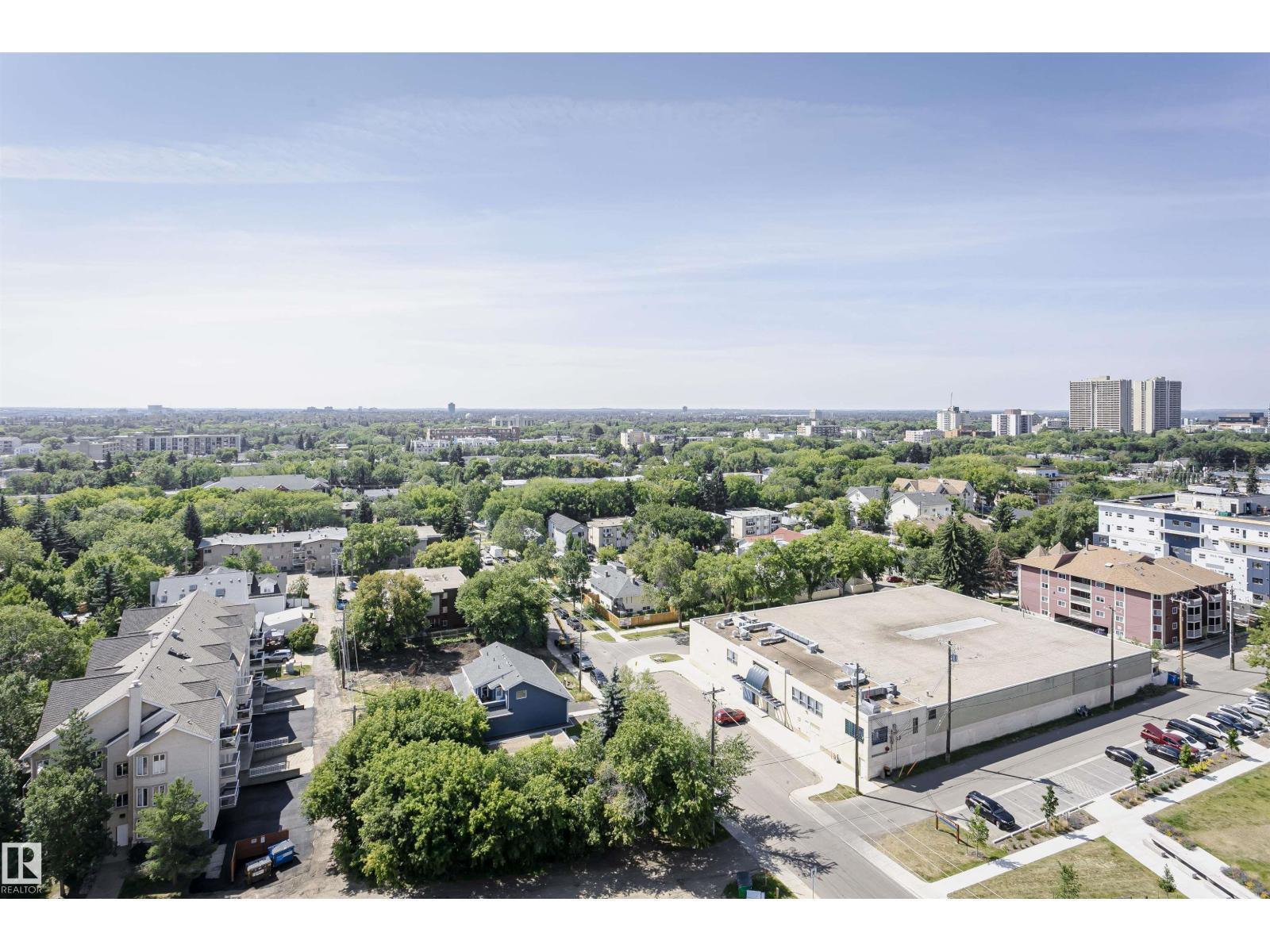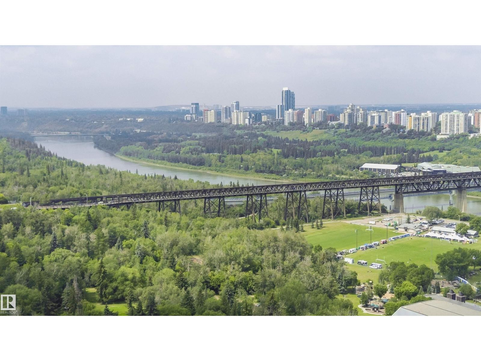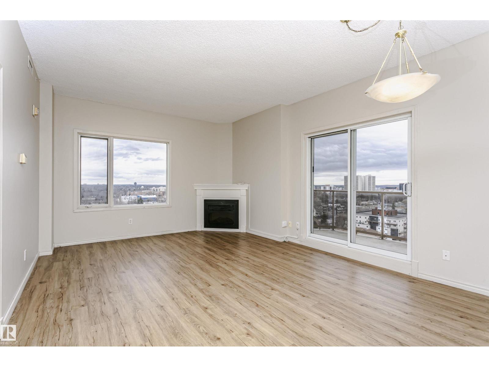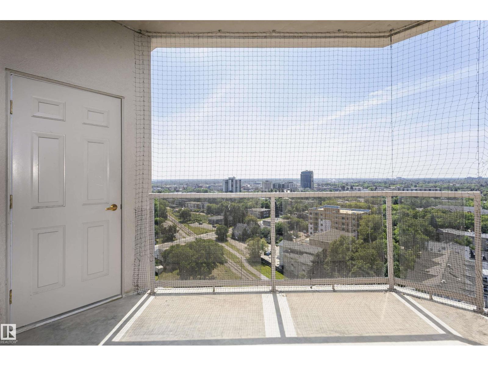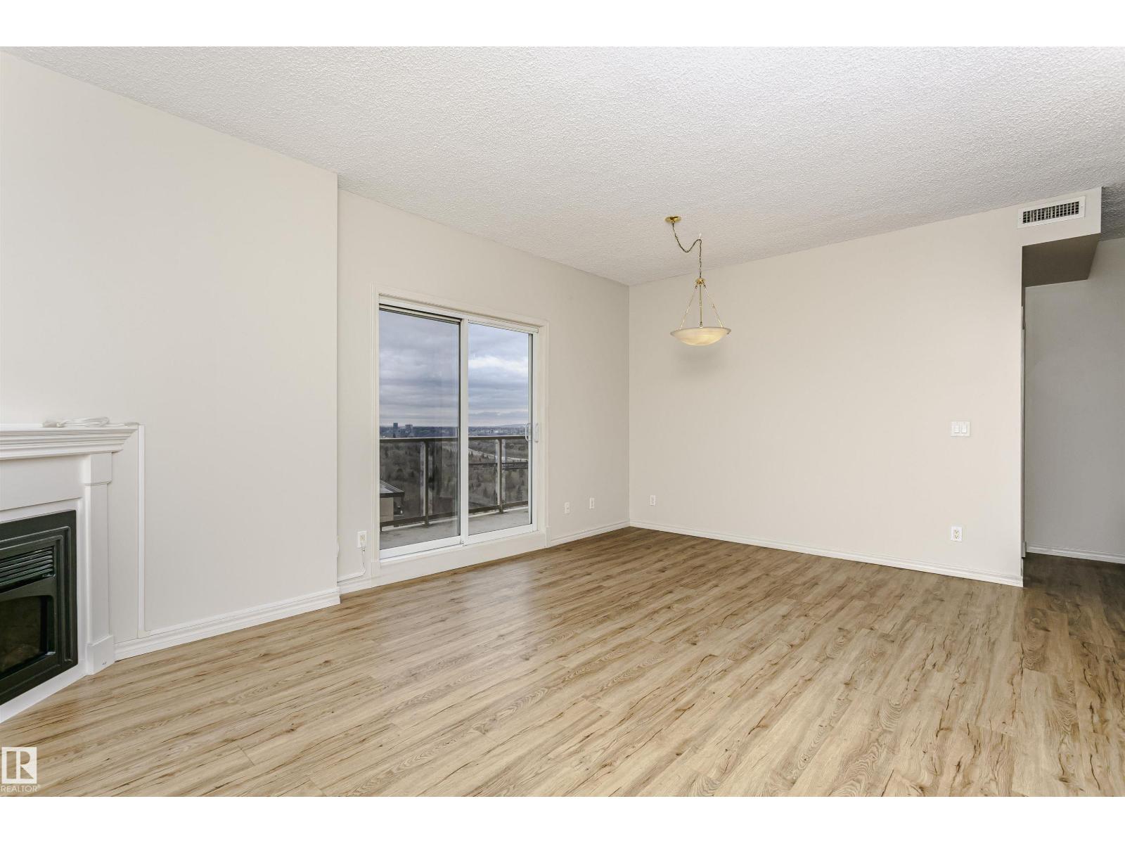 Corner penthouse suite with panoramic views of the river valley and downtown skyline, perfect for professionals working at the U of A or downtown. Sunlight floods the space from south and west-facing windows, creating a warm, inviting atmosphere. Thoughtfully designed with two spacious bedrooms on opposite sides for added privacy. The south-facing primary offers a 4-piece ensuite, double closet, and private patio with storage room. The second bedroom features a walk-in closet, and full bath. The open-concept kitchen includes a breakfast bar and flows into a bright living area with a gas fireplace and access to a second large patio with gas BBQ hookup. In-suite laundry, titled underground parking, and an on-site fitness room complete the package. A quiet, well-managed, non-smoking building with incredible potential in an unbeatable location with two patios! (id:51989)