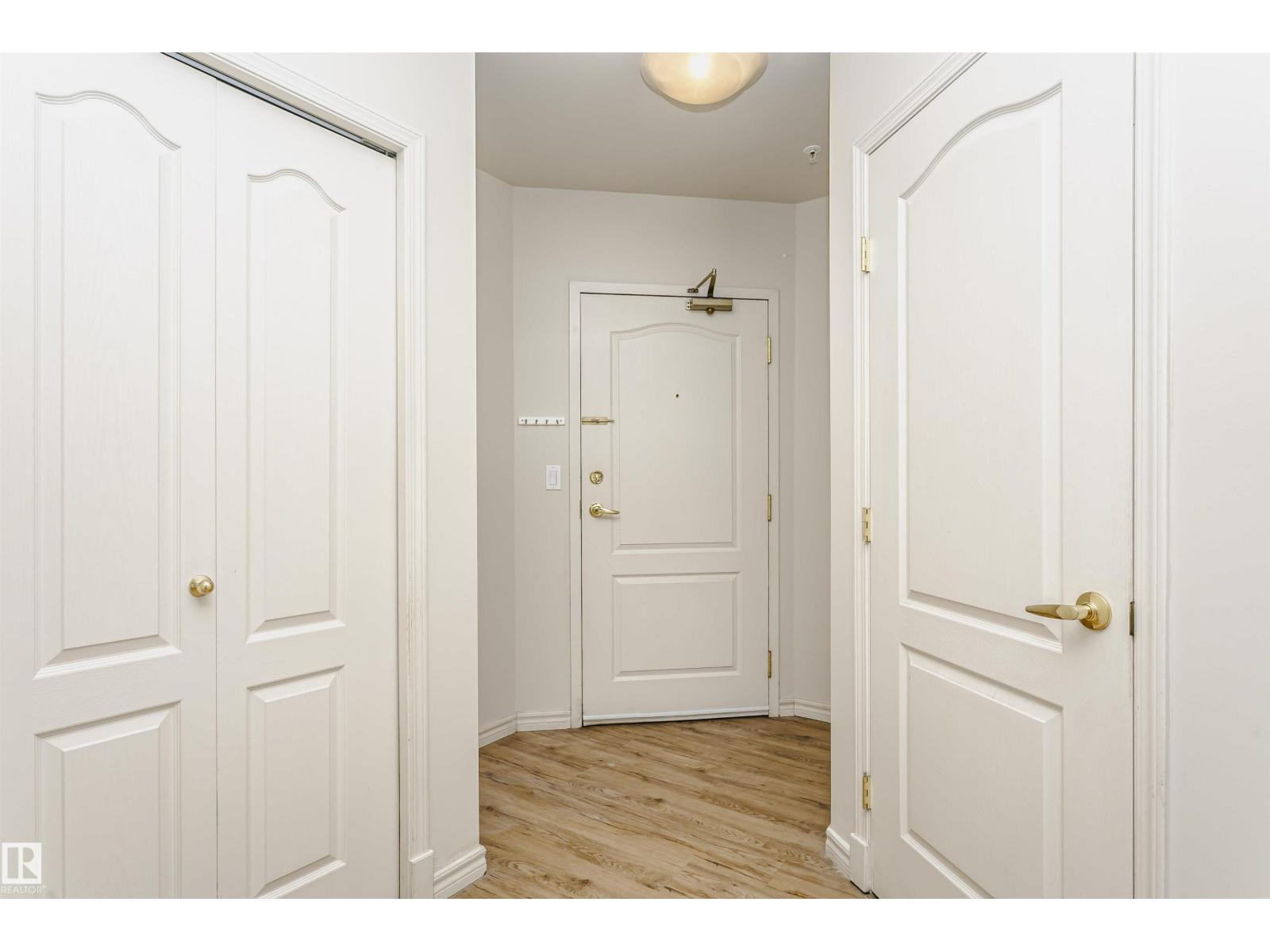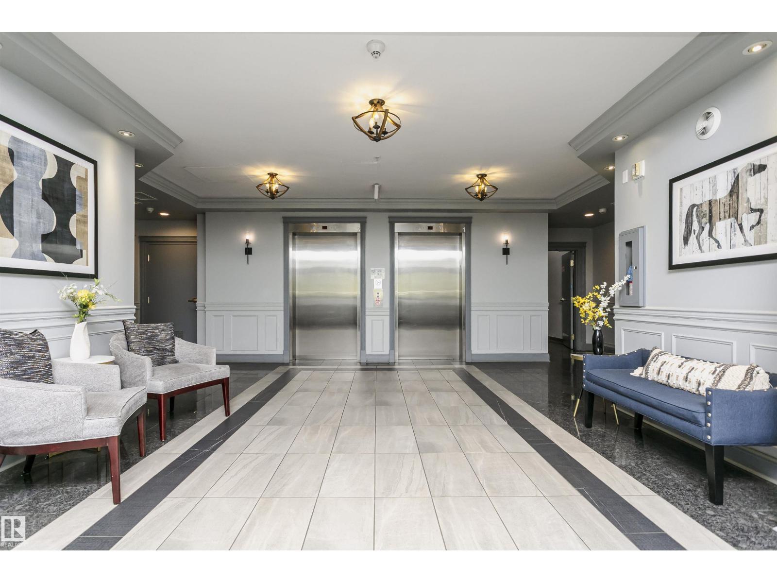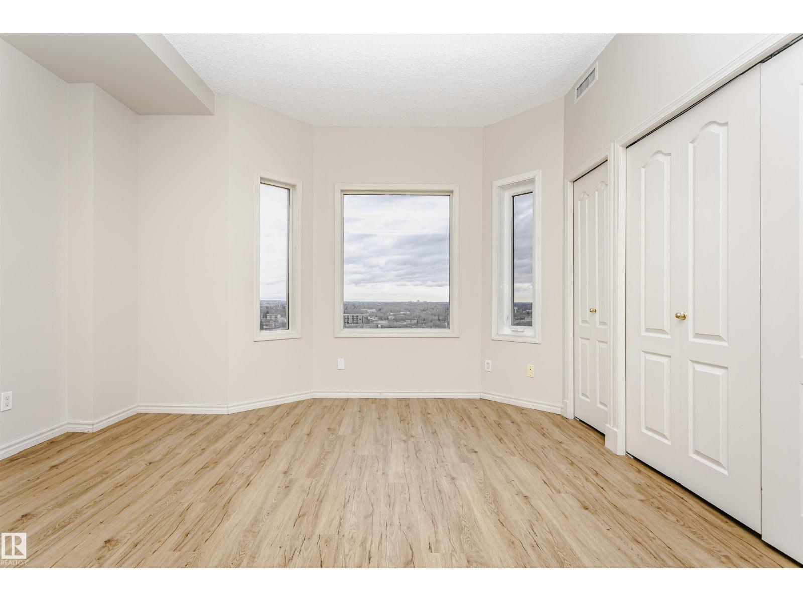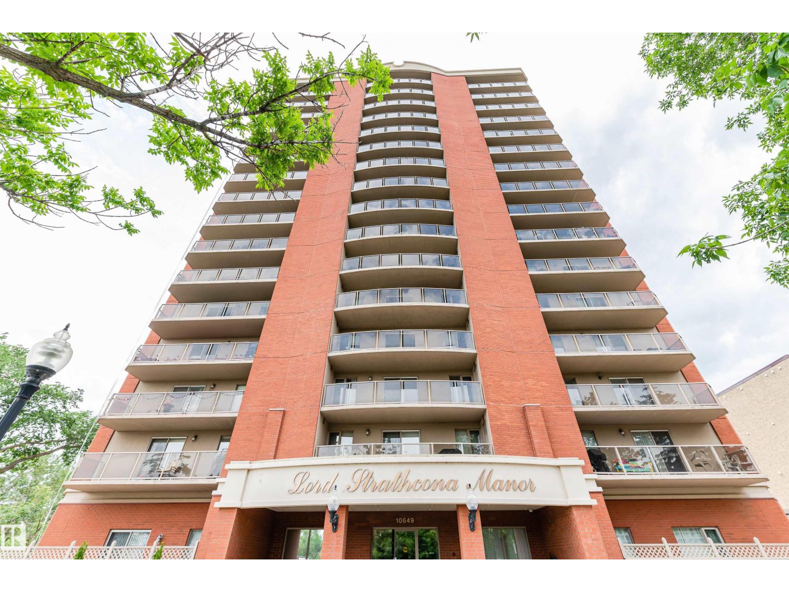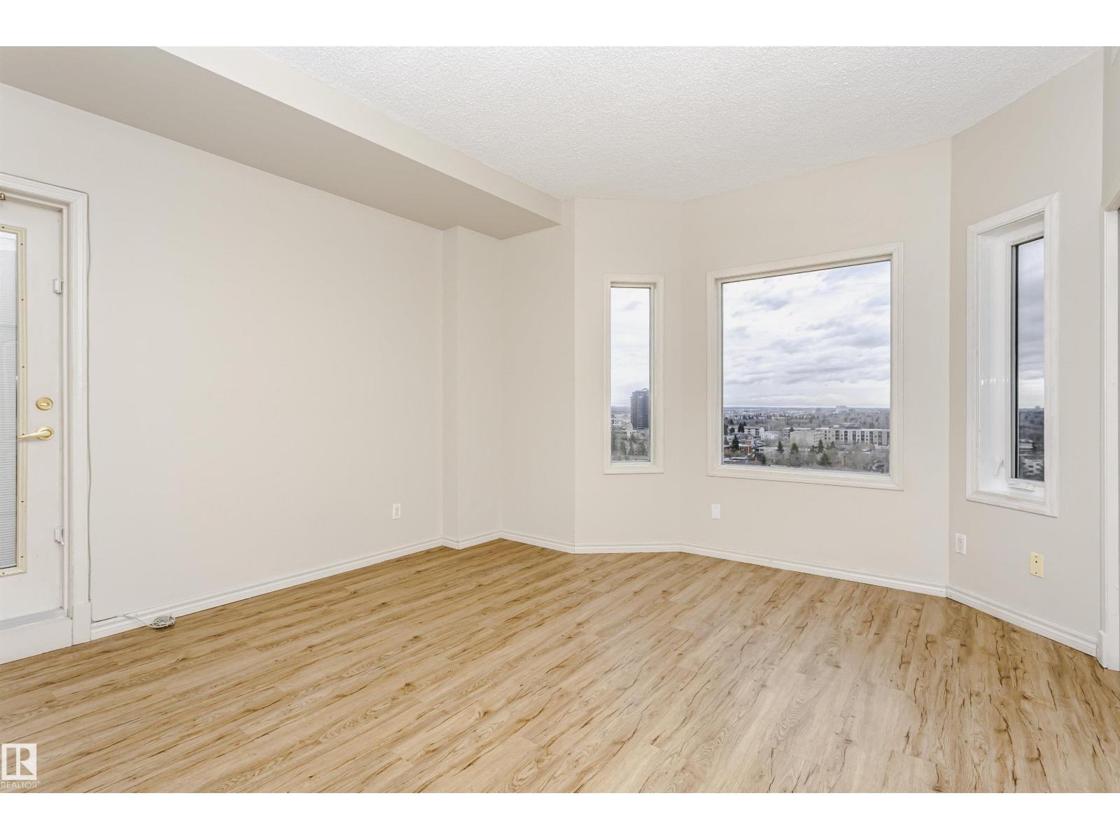 Corner penthouse suite with panoramic views of the river valley and downtown skyline, perfect for professionals working at the U of A or downtown. Sunlight floods the space from south and west-facing windows, creating a warm, inviting atmosphere. Thoughtfully designed with two spacious bedrooms on opposite sides for added privacy. The south-facing primary offers a 4-piece ensuite, double closet, and private patio with storage room. The second bedroom features a walk-in closet, and full bath. The open-concept kitchen includes a breakfast bar and flows into a bright living area with a gas fireplace and access to a second large patio with gas BBQ hookup. In-suite laundry, titled underground parking, and an on-site fitness room complete the package. A quiet, well-managed, non-smoking building with incredible potential in an unbeatable location with two patios! (id:51989)