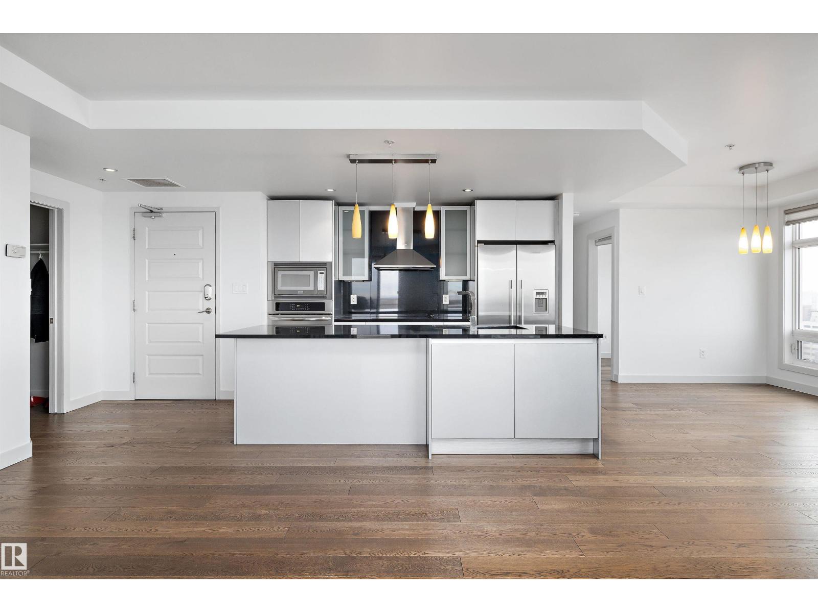Welcome to this bright and modern 2 bedroom, 2 bathroom condo offers an unbeatable lifestyle with stunning city and downtown views from the 17th floor. With over 1,010 sq ft of well-designed living space, this unit features hardwood and ceramic tile flooring, an open-concept layout, and a sleek kitchen equipped with built-in appliances and an induction cooktop—perfect for entertaining or everyday living. Enjoy the comfort of central air conditioning, in-suite laundry, and the convenience of titled underground heated parking. The building offers premium amenities including concierge service, secured entry, social/party rooms, and visitor parking. Located steps from shopping, restaurants, public transit, and downtown offices, this is the ideal property for professionals, investors, or anyone looking to live in the centre of it all. A fantastic opportunity in one of Edmonton’s most desirable high-rise communities, move-in ready and vacant for quick possession! (id:51989)
