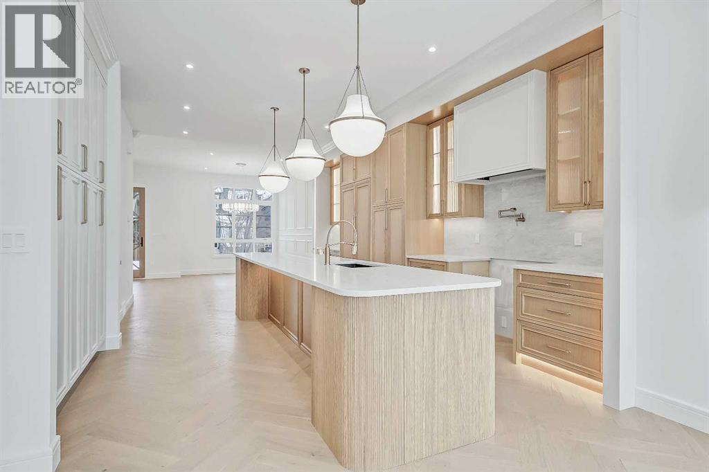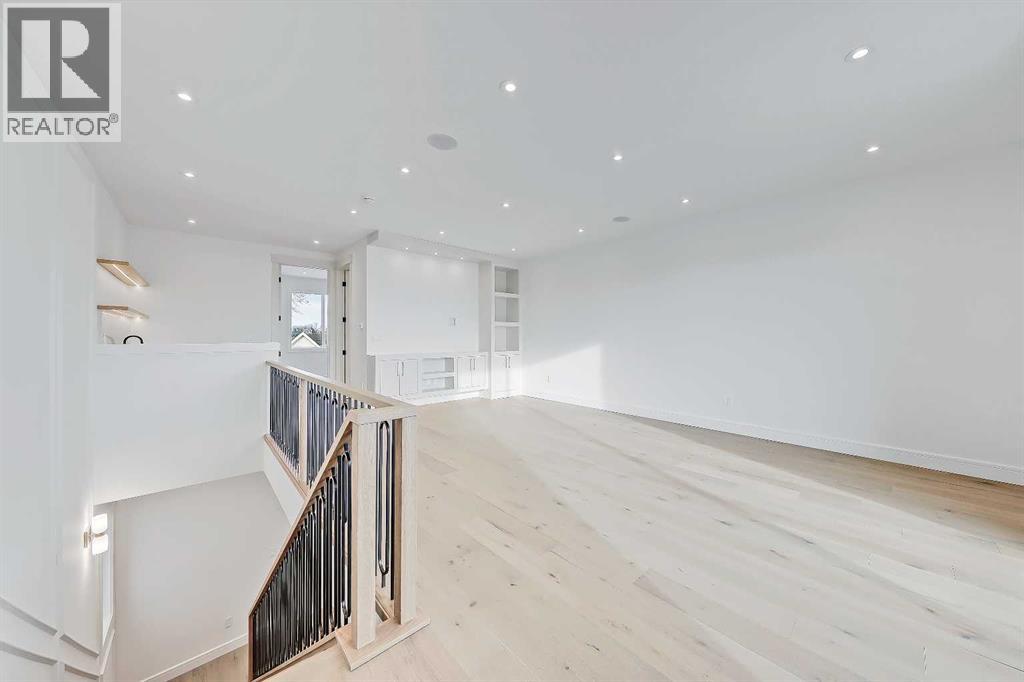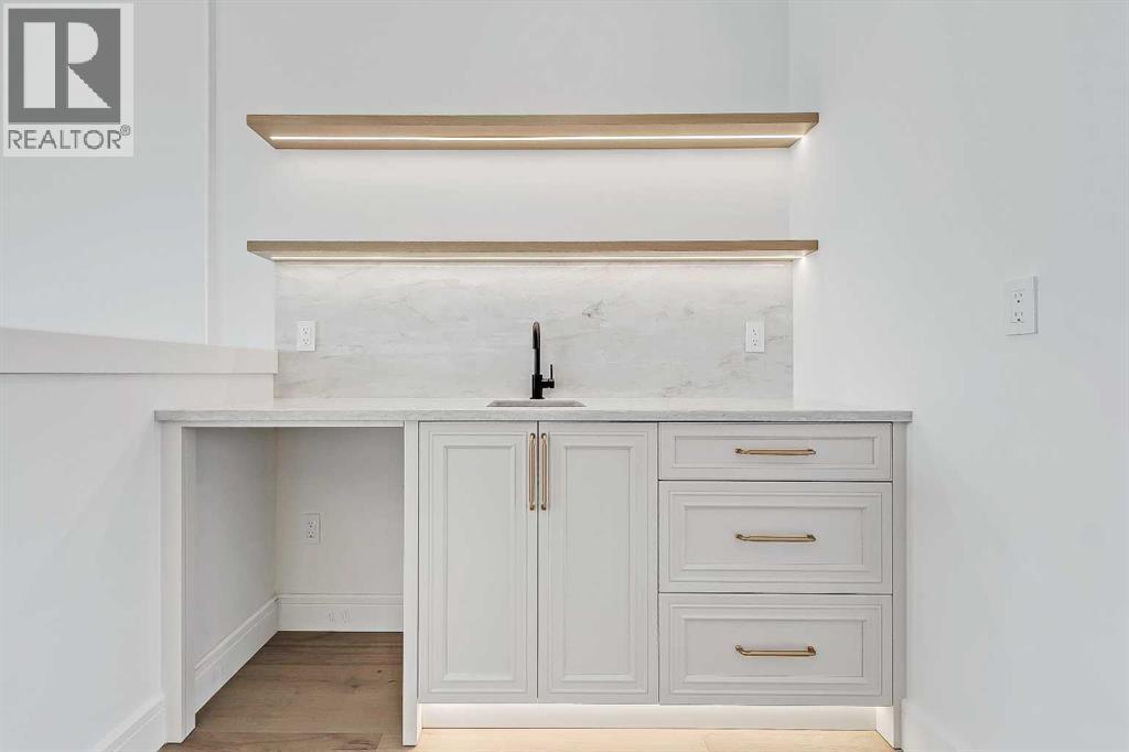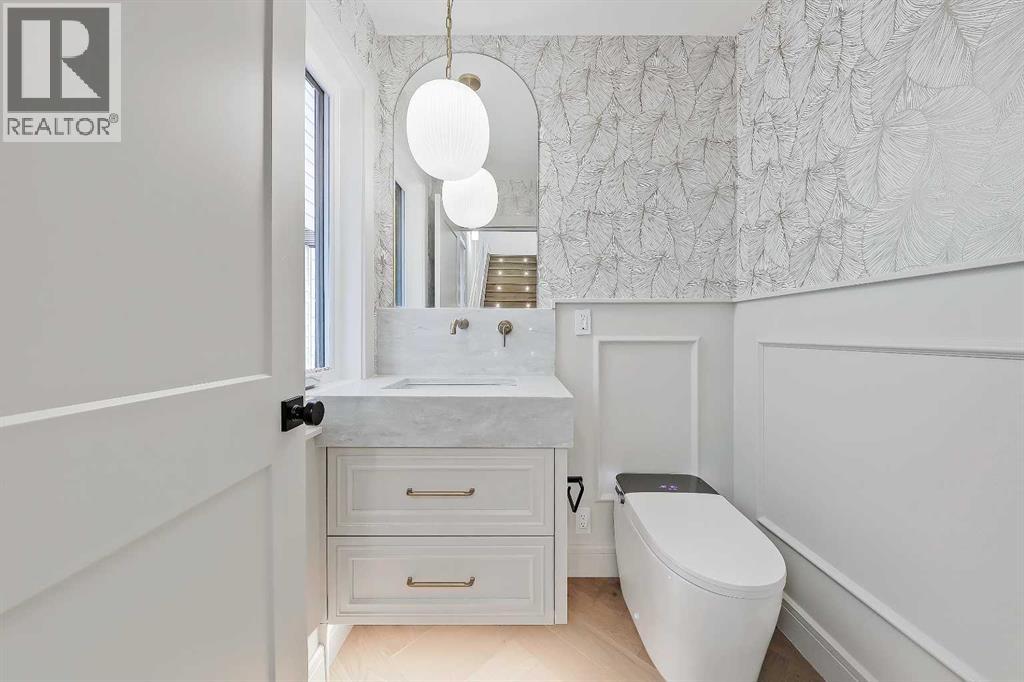 Every inch of this new luxury infill feels like a curated experience in refined design. Thoughtfully styled from the inside out, the home pairs timeless architectural details with contemporary softness—arched windows, warm wood tones, creamy stone finishes, and that quiet kind of luxury you feel the moment you step through the front door.Inside, you're greeted by a central foyer that opens into a bright, airy space with soaring ceilings and oversized windows that let in light from every angle. The dining area connects naturally to a chef-inspired kitchen past a convenient bar area with space for a beverage fridge and custom cabinetry, while the kitchen itself impresses with a full-height quartz backsplash, designer pendants, and upgraded high-end appliances, including a gas range, custom hood fan, and French door fridge/freezer. The spacious living area feels open yet cozy, grounded by a GAS FIREPLACE with built-in shelving on either side and a view of the landscaped yard, with access to the custom mudroom with built-ins, adding the kind of functional polish that makes day-to-day life feel seamless.Upstairs, you’ll find two secondary bedrooms, a bright 4-piece main bath with a fully tiled tub/shower combo and elegant finishes, and a good-sized laundry room with a quartz folding counter and an undermount sink - practical and polished. The primary suite is a true retreat, featuring DUAL WALK-IN CLOSETS for all the space, and a gorgeous ensuite with dual vanity, freestanding soaker tub, and an oversized, fully tiled WALK-IN STEAM SHOWER.The third level is where things really elevate—literally. A bonus lounge area with a WET BAR opens onto a PRIVATE SOUTH-FACING BALCONY, making it a standout space for entertaining or relaxing in the sun. Another large bedroom with a full bathroom rounds out the top floor, offering flexibility for guests, teens, or a second home office.Downstairs, a fully developed basement includes a large rec room, built-in media setup, gym spa ce, a fifth bedroom, and another full bath. There’s also ample storage and mechanicals tucked discreetly away.Located in the heart of Altadore, this home is surrounded by some of Calgary’s most sought-after schools. You're within walking distance to Altadore School (K–6) and Dr. Oakley School (Grades 3–9), with easy access to top private options like Rundle Academy and Lycée Louis Pasteur. Mount Royal University is just a 7-minute drive away, and Central Memorial High School and St. James are close by. Families will also love the proximity to River Park, Sandy Beach, and the Elbow River Pathway system. Marda Loop’s shops, cafés, fitness studios, and amenities are just a few minutes up the road, offering everything you need! (id:51989)