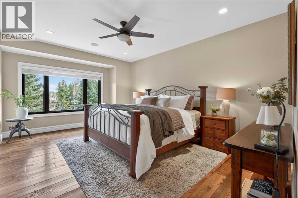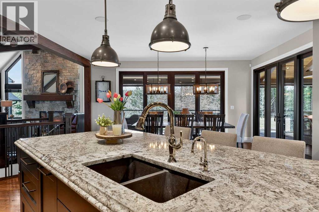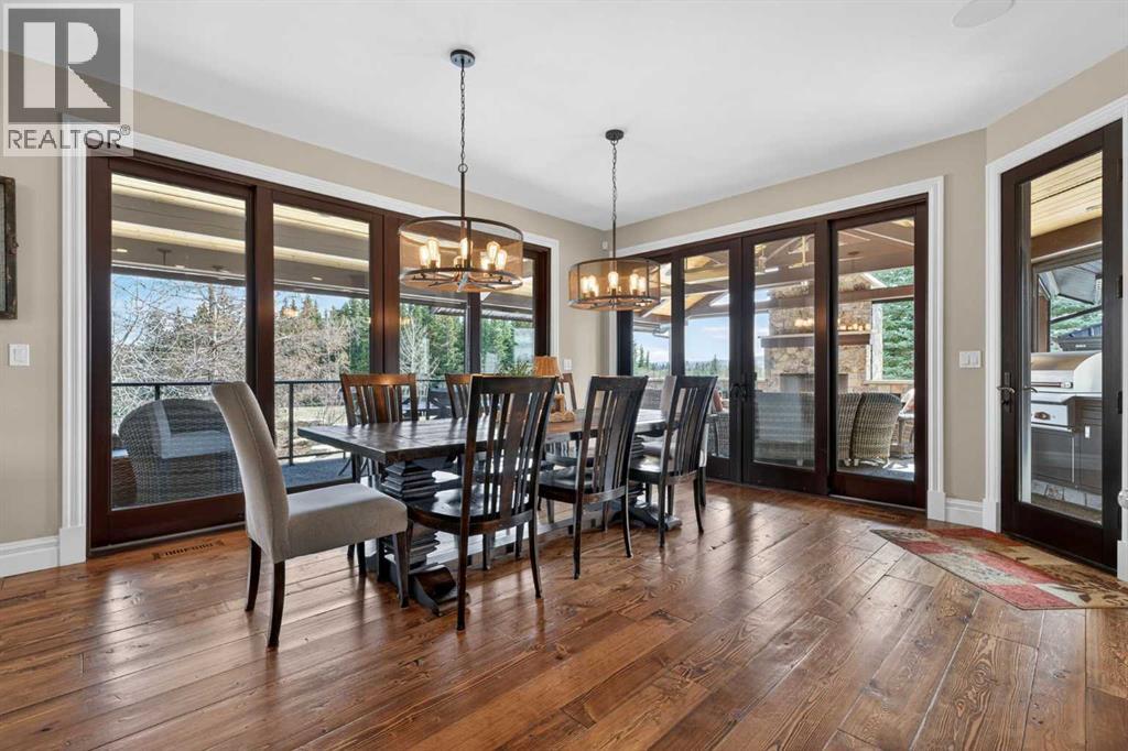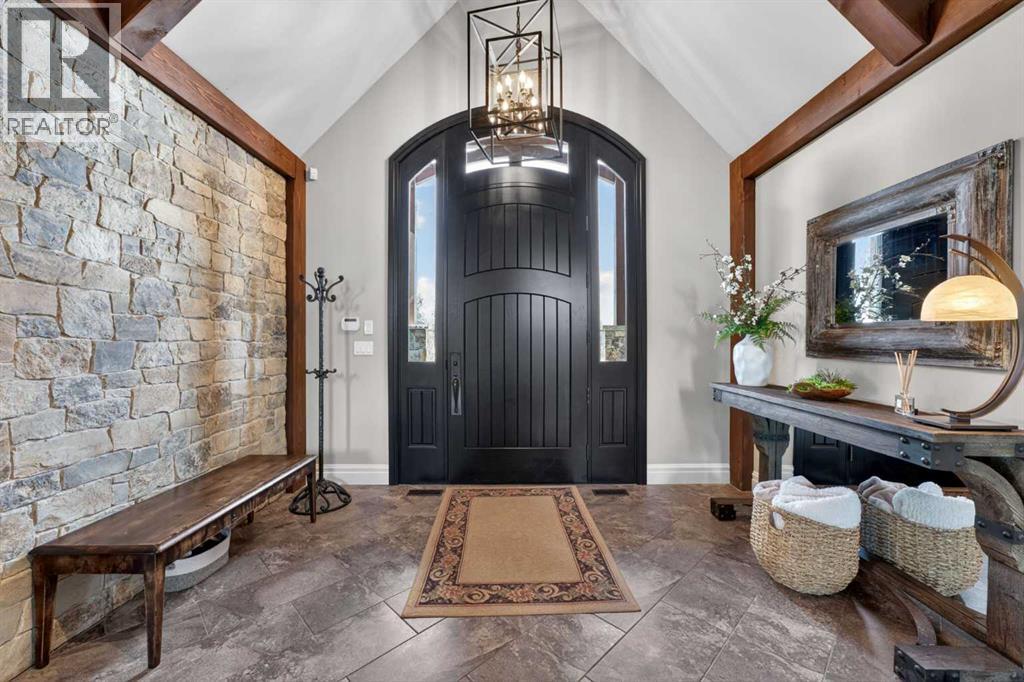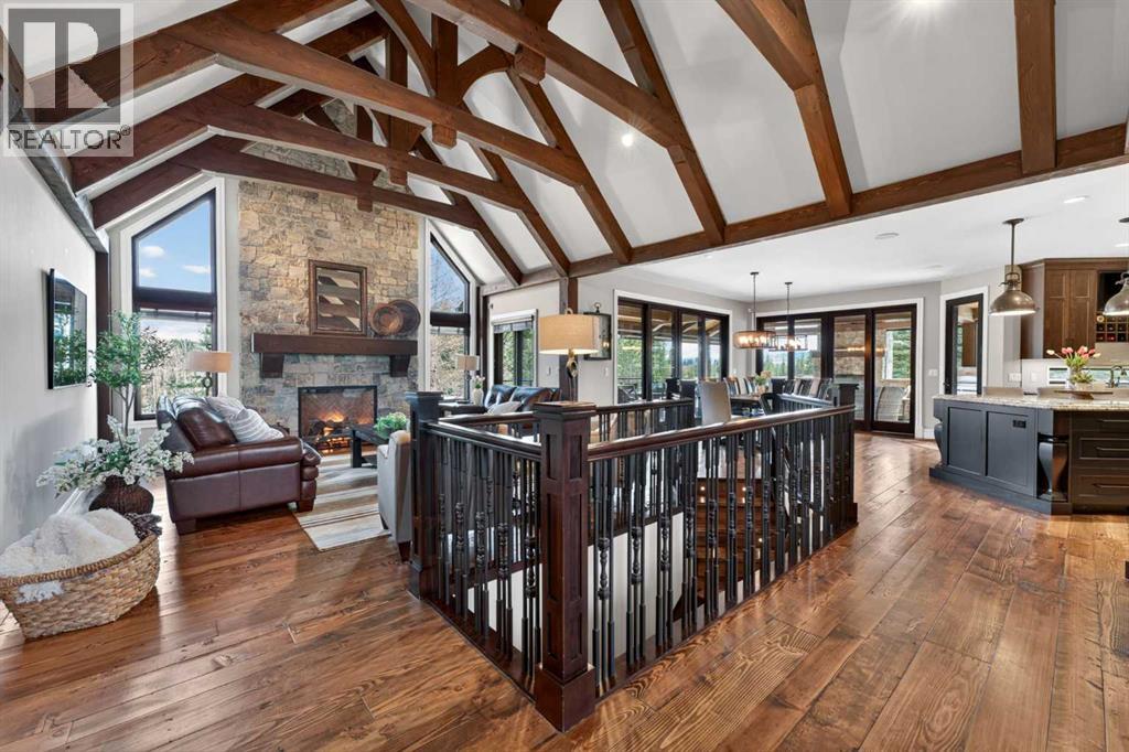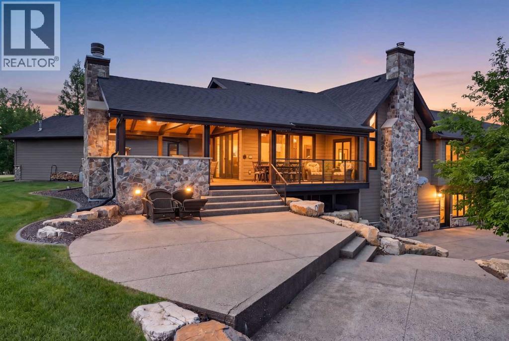Set on 2.54 acres in Priddis and backing directly onto environmental reserve, this exceptional property offers the privacy and feel of a much larger estate. Thoughtfully positioned to capture both sunrise and sunset, the home enjoys a quiet setting with views from nearly every window. Originally built in 1998 and substantially renovated in 2014, the home offers 5 large bedrooms and 5 bathrooms, including 3 bedrooms with private ensuites. The main living areas are warm and inviting, featuring reclaimed wood flooring, open beam architecture, and expansive windows that bring the outdoors in. The custom kitchen is designed for both function and entertaining, with a large granite island, ample storage, hidden pantry, and a Wolf range anchoring the space. This home is built for lifestyle. A well-equipped theatre and games room, integrated home automation for sound and TV, and a large fitness room with stunning views of the reserve create a complete in-home experience. A fully equipped attached triple garage is paired with an additional garage bay, currently transformed into an exceptional lifestyle space featuring a golf simulator, finished with high-end metal cabinetry. It’s a rare, highly versatile extension of the home, ideal for the enthusiast and easily adapted for a wide range of hobbies or a premium showcase setting. Outdoor living is equally impressive. The covered and heated deck features a wood-burning fireplace and built-in BBQ, creating a year-round space to entertain. A south-facing orientation captures mountain and valley views, while the beautifully landscaped grounds include mature trees, natural rock features, and frequent visits from local wildlife. Despite the peaceful setting, the location is highly convenient. Paved access is maintained year-round, with a 12-minute drive to Shawnessy, quick access to Stoney Trail, and nearby amenities including Costco. The community offers a strong lifestyle component with events, recreation, and access to Red Deer La ke School, including bus service from the end of the driveway. The drive home along Highway 22X, with open views of the mountains and minimal traffic, is a daily reminder of what makes this property so special. Some images have been virtually enhanced. (id:51989)