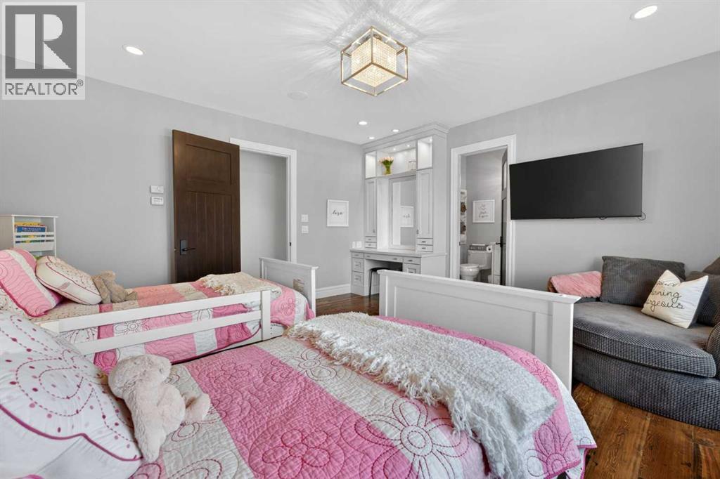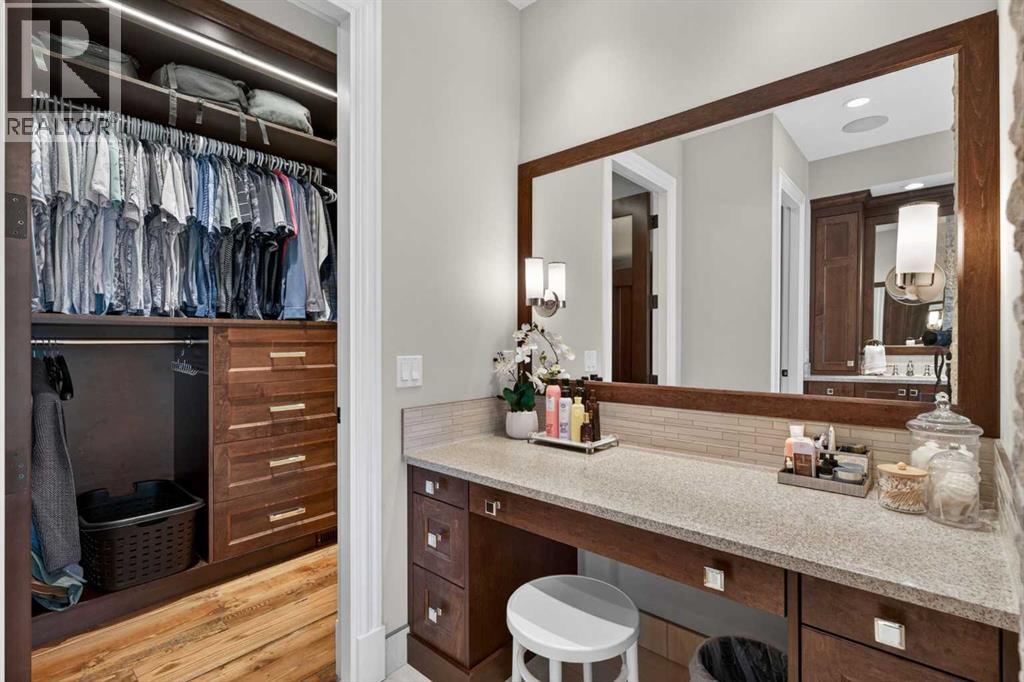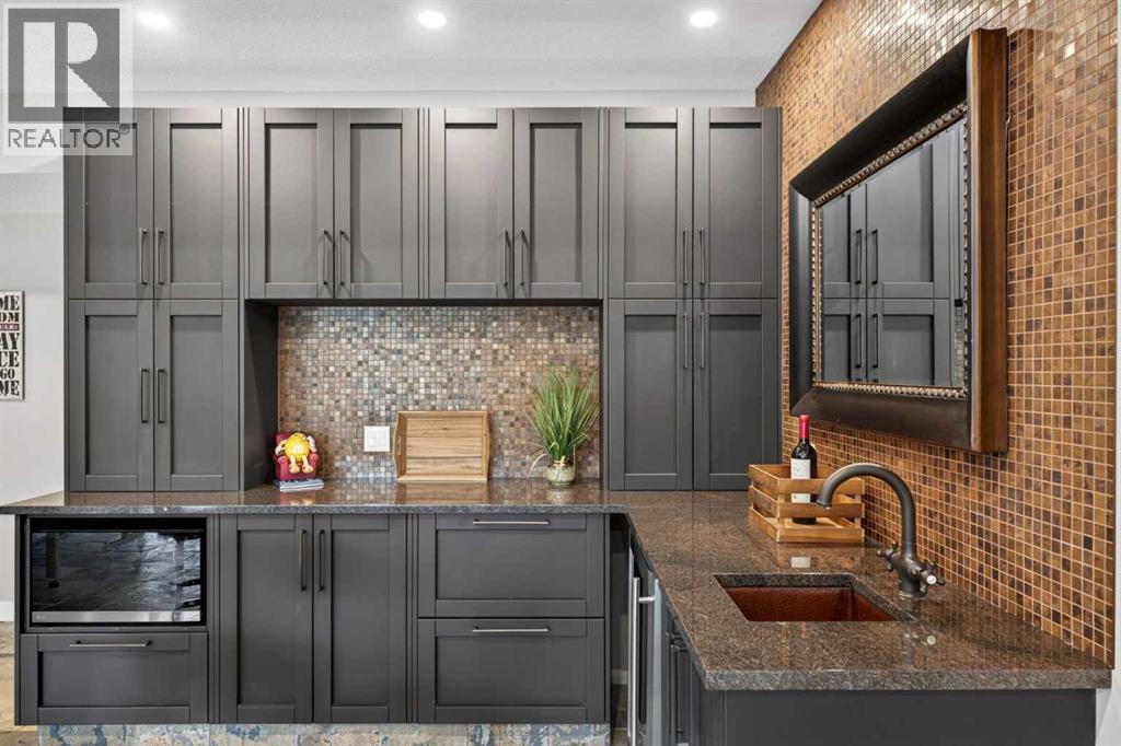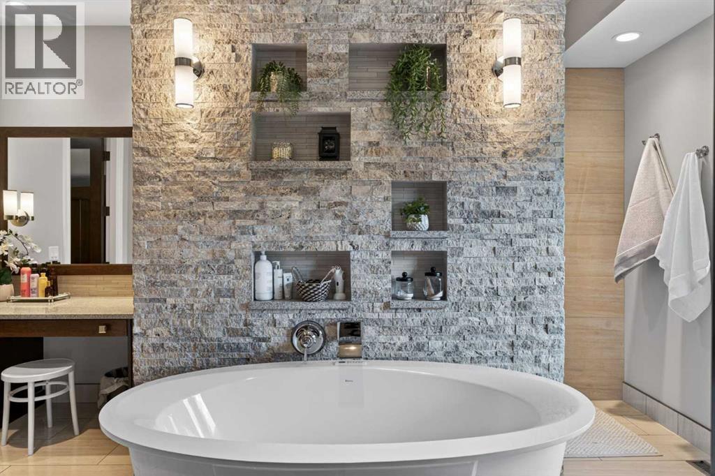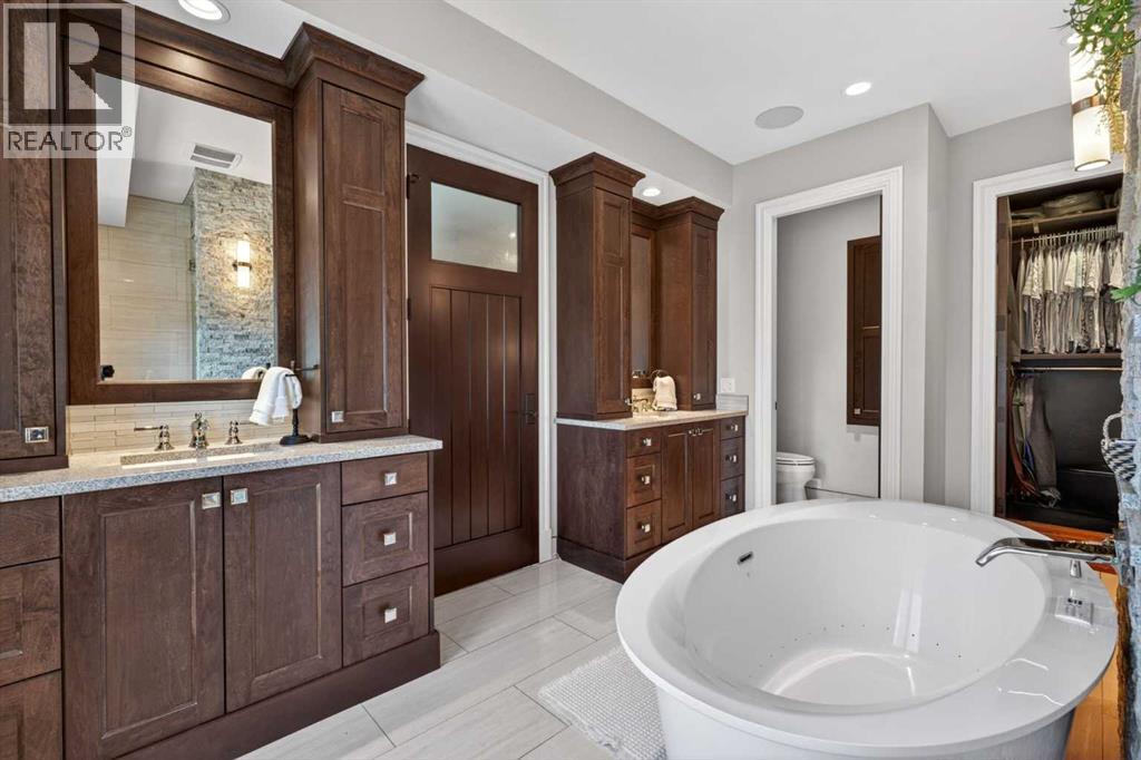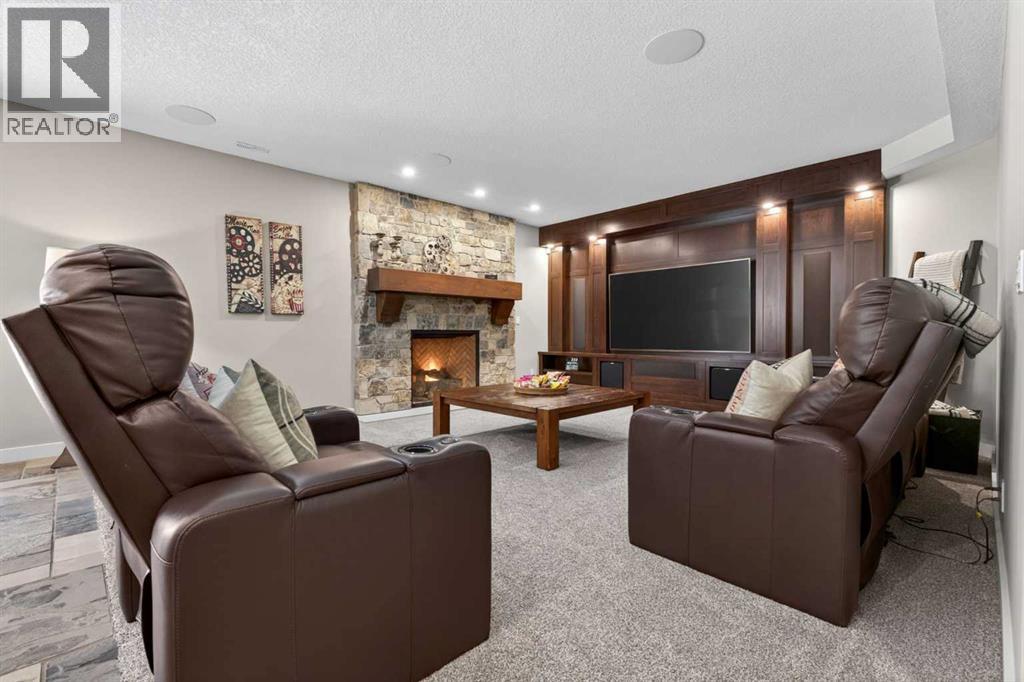 Set on 2.54 acres in Priddis and backing directly onto environmental reserve, this exceptional property offers the privacy and feel of a much larger estate. Thoughtfully positioned to capture both sunrise and sunset, the home enjoys a quiet setting with views from nearly every window. Originally built in 1998 and substantially renovated in 2014, the home offers 5 large bedrooms and 5 bathrooms, including 3 bedrooms with private ensuites. The main living areas are warm and inviting, featuring reclaimed wood flooring, open beam architecture, and expansive windows that bring the outdoors in. The custom kitchen is designed for both function and entertaining, with a large granite island, ample storage, hidden pantry, and a Wolf range anchoring the space. This home is built for lifestyle. A well-equipped theatre and games room, integrated home automation for sound and TV, and a large fitness room with stunning views of the reserve create a complete in-home experience. A fully equipped attached triple garage is paired with an additional garage bay, currently transformed into an exceptional lifestyle space featuring a golf simulator, finished with high-end metal cabinetry. It’s a rare, highly versatile extension of the home, ideal for the enthusiast and easily adapted for a wide range of hobbies or a premium showcase setting. Outdoor living is equally impressive. The covered and heated deck features a wood-burning fireplace and built-in BBQ, creating a year-round space to entertain. A south-facing orientation captures mountain and valley views, while the beautifully landscaped grounds include mature trees, natural rock features, and frequent visits from local wildlife. Despite the peaceful setting, the location is highly convenient. Paved access is maintained year-round, with a 12-minute drive to Shawnessy, quick access to Stoney Trail, and nearby amenities including Costco. The community offers a strong lifestyle component with events, recreation, and access to Red Deer La ke School, including bus service from the end of the driveway. The drive home along Highway 22X, with open views of the mountains and minimal traffic, is a daily reminder of what makes this property so special. Some images have been virtually enhanced. (id:51989)