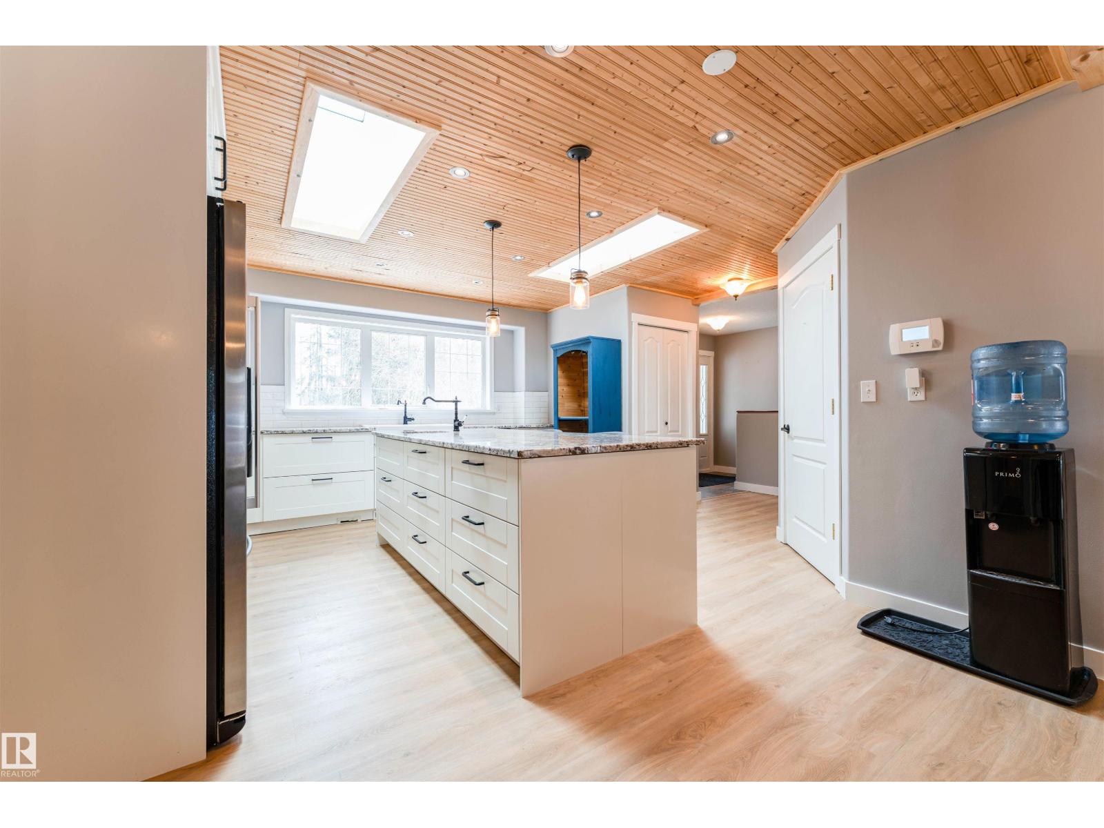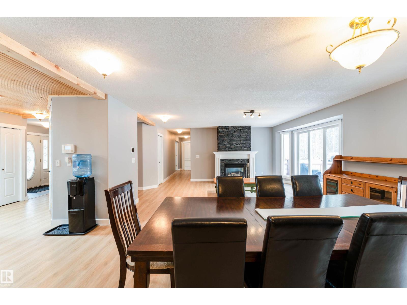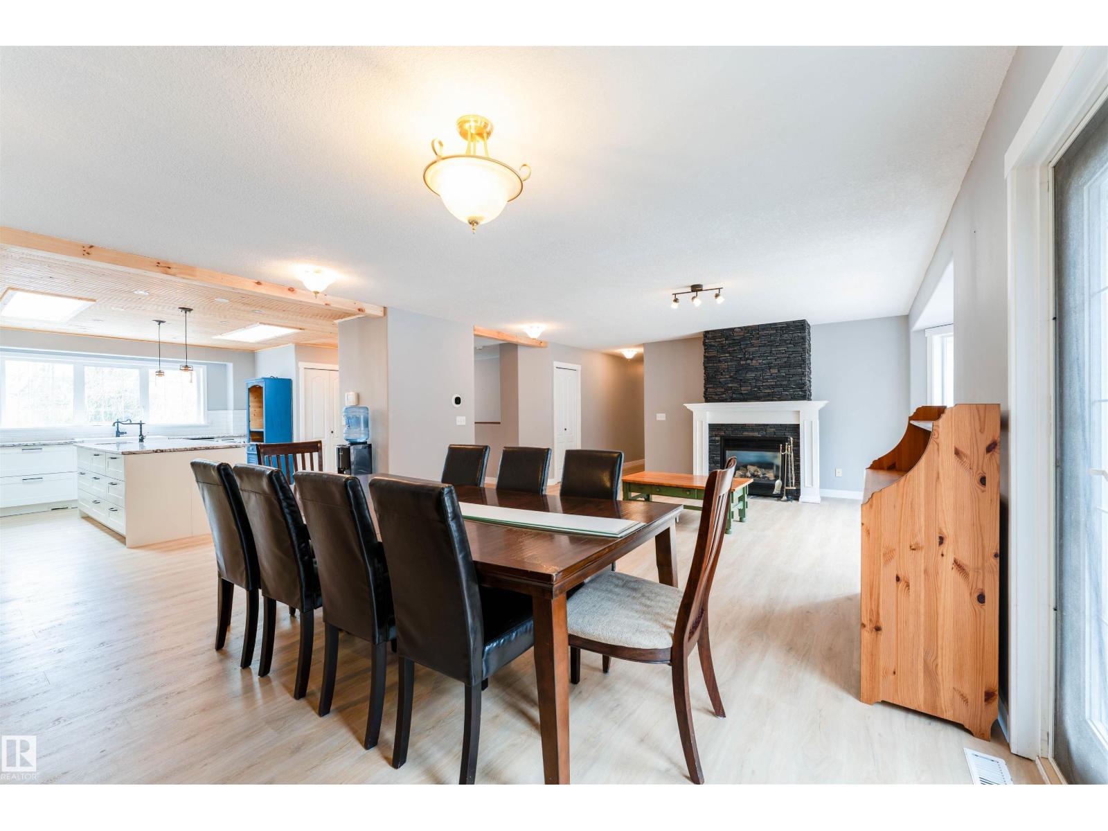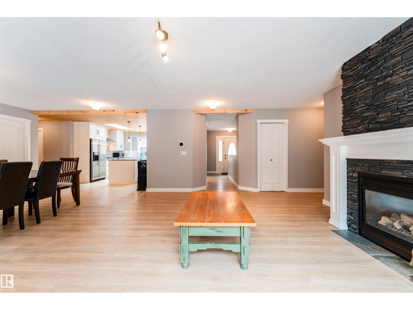 Experience modern country living in this beautifully renovated 2,047 sq ft bungalow, set on a private, treed acreage in Keephills. This spacious home offers 6 bedrooms (3 up, 3 down), including a luxurious, spa-inspired primary suite, plus a convenient Jack & Jill bathroom connecting the additional main-floor bedrooms. The open-concept kitchen and living areas create a seamless flow, complemented by a dedicated main-floor office. The bright main level features new vinyl plank flooring, a functional layout, and a cozy gas fireplace. The fully developed basement includes in-floor heating, additional bedrooms, and versatile living space. With 3.5 bathrooms, main-floor laundry, new windows and shingles, a heated double attached garage, and RV parking, this home delivers both comfort and practicality. Enjoy peaceful acreage living with outdoor amenities including a firepit and hot tub, all within walking distance to local conveniences such as the library and outdoor rink. (id:51989)