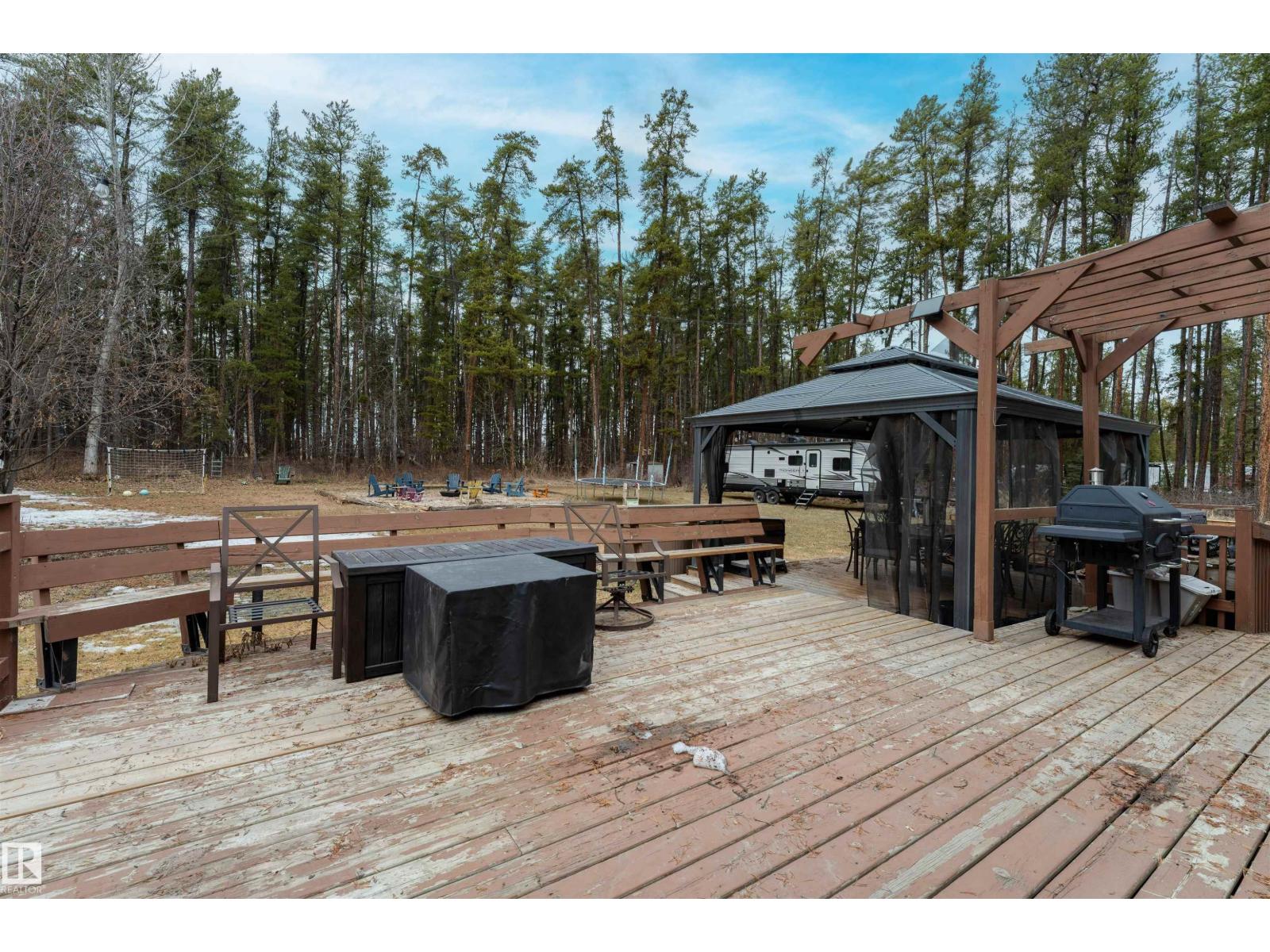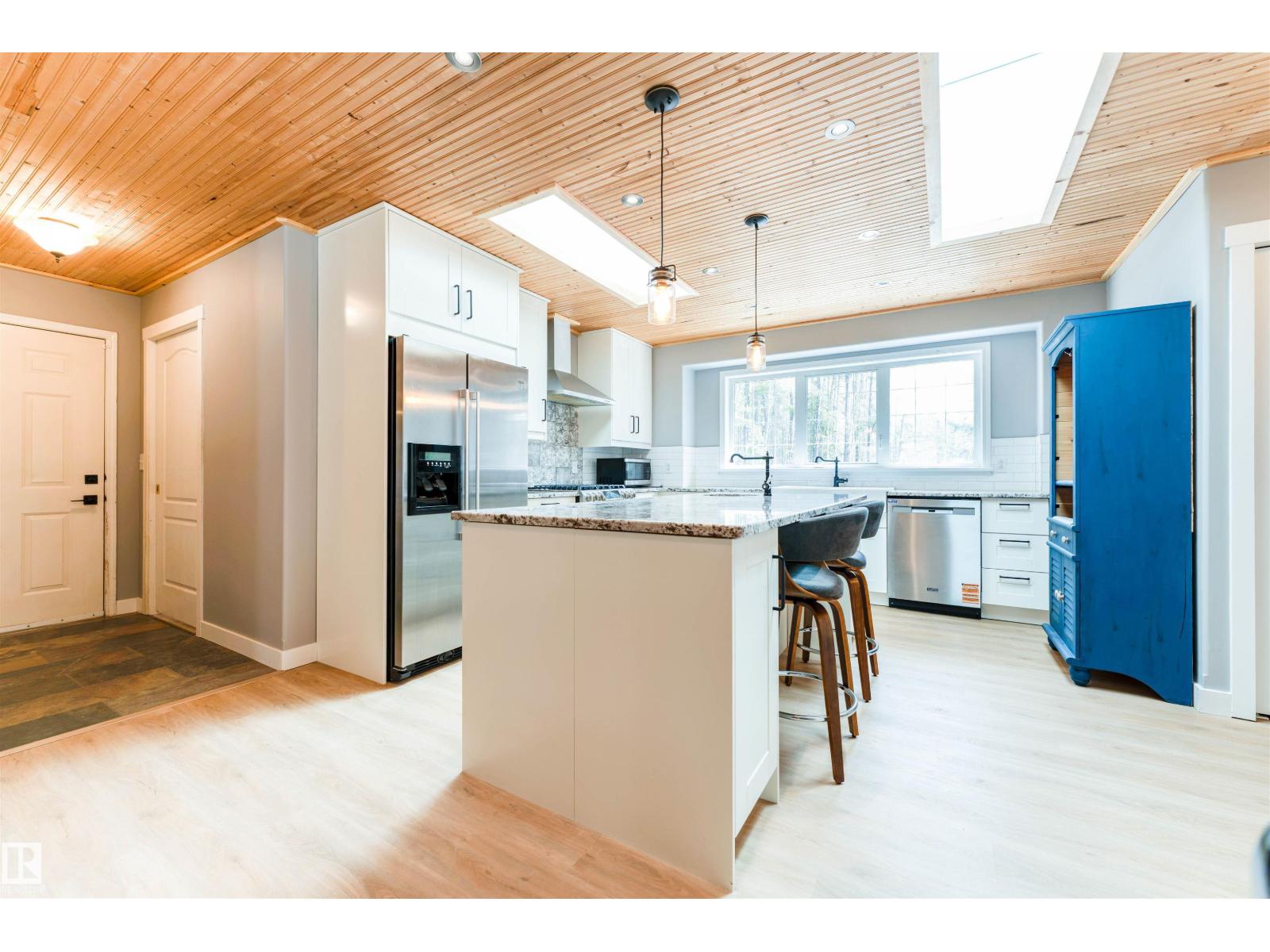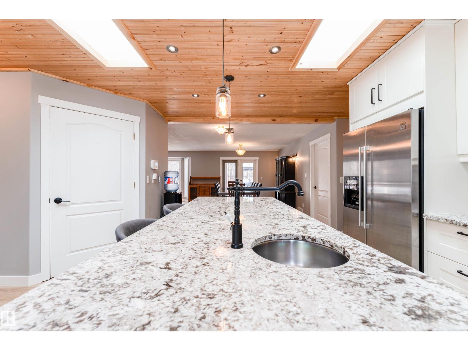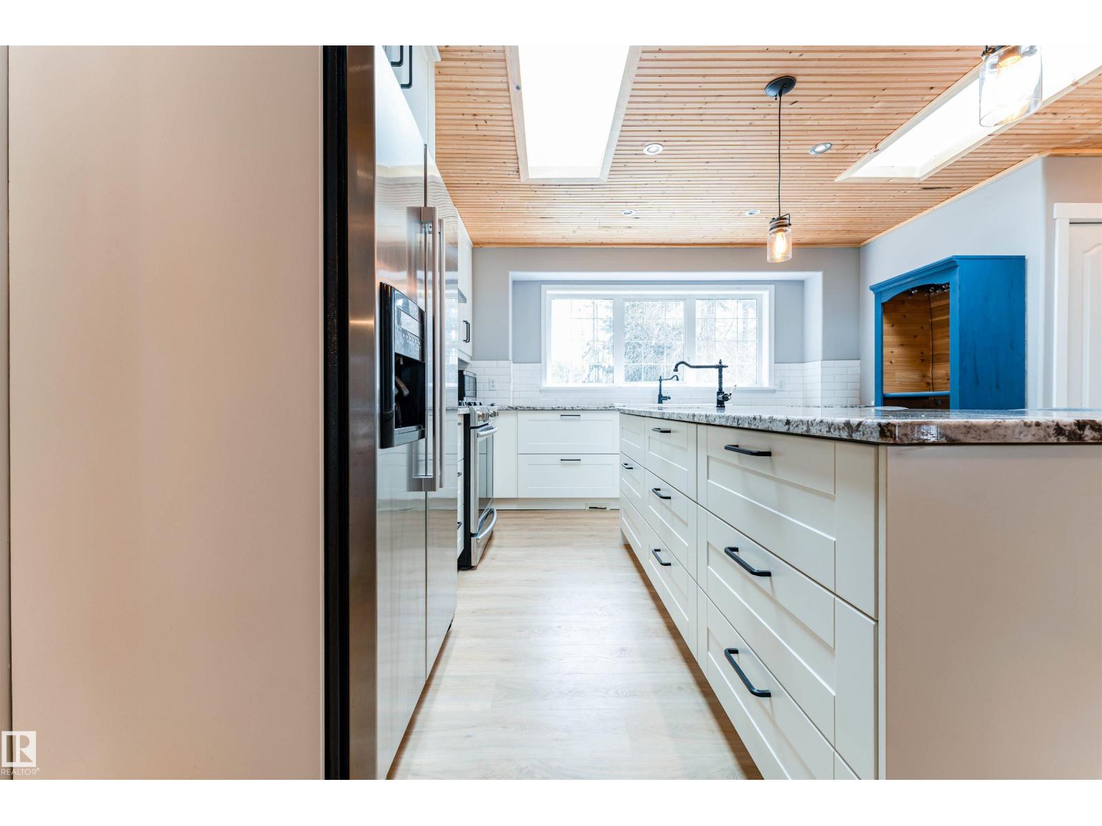 Experience modern country living in this beautifully renovated 2,047 sq ft bungalow, set on a private, treed acreage in Keephills. This spacious home offers 6 bedrooms (3 up, 3 down), including a luxurious, spa-inspired primary suite, plus a convenient Jack & Jill bathroom connecting the additional main-floor bedrooms. The open-concept kitchen and living areas create a seamless flow, complemented by a dedicated main-floor office. The bright main level features new vinyl plank flooring, a functional layout, and a cozy gas fireplace. The fully developed basement includes in-floor heating, additional bedrooms, and versatile living space. With 3.5 bathrooms, main-floor laundry, new windows and shingles, a heated double attached garage, and RV parking, this home delivers both comfort and practicality. Enjoy peaceful acreage living with outdoor amenities including a firepit and hot tub, all within walking distance to local conveniences such as the library and outdoor rink. (id:51989)