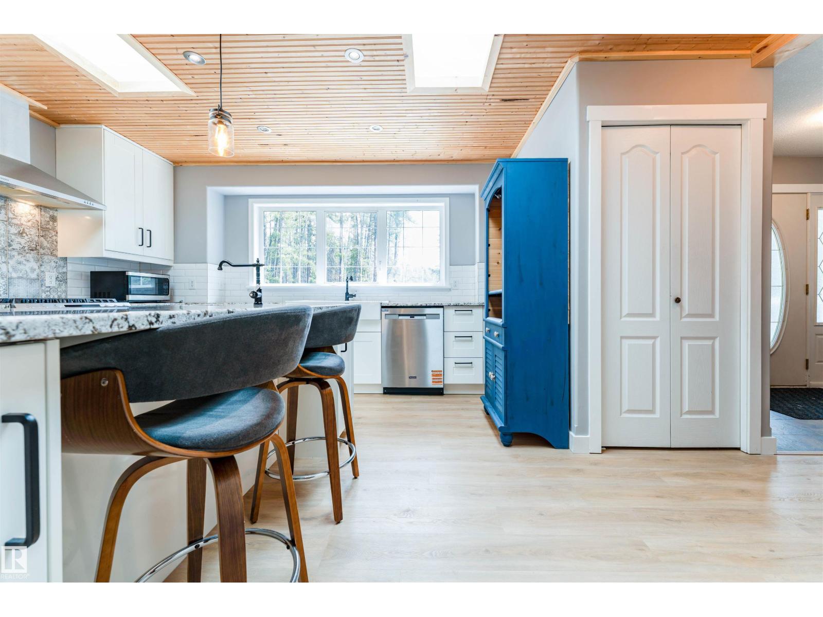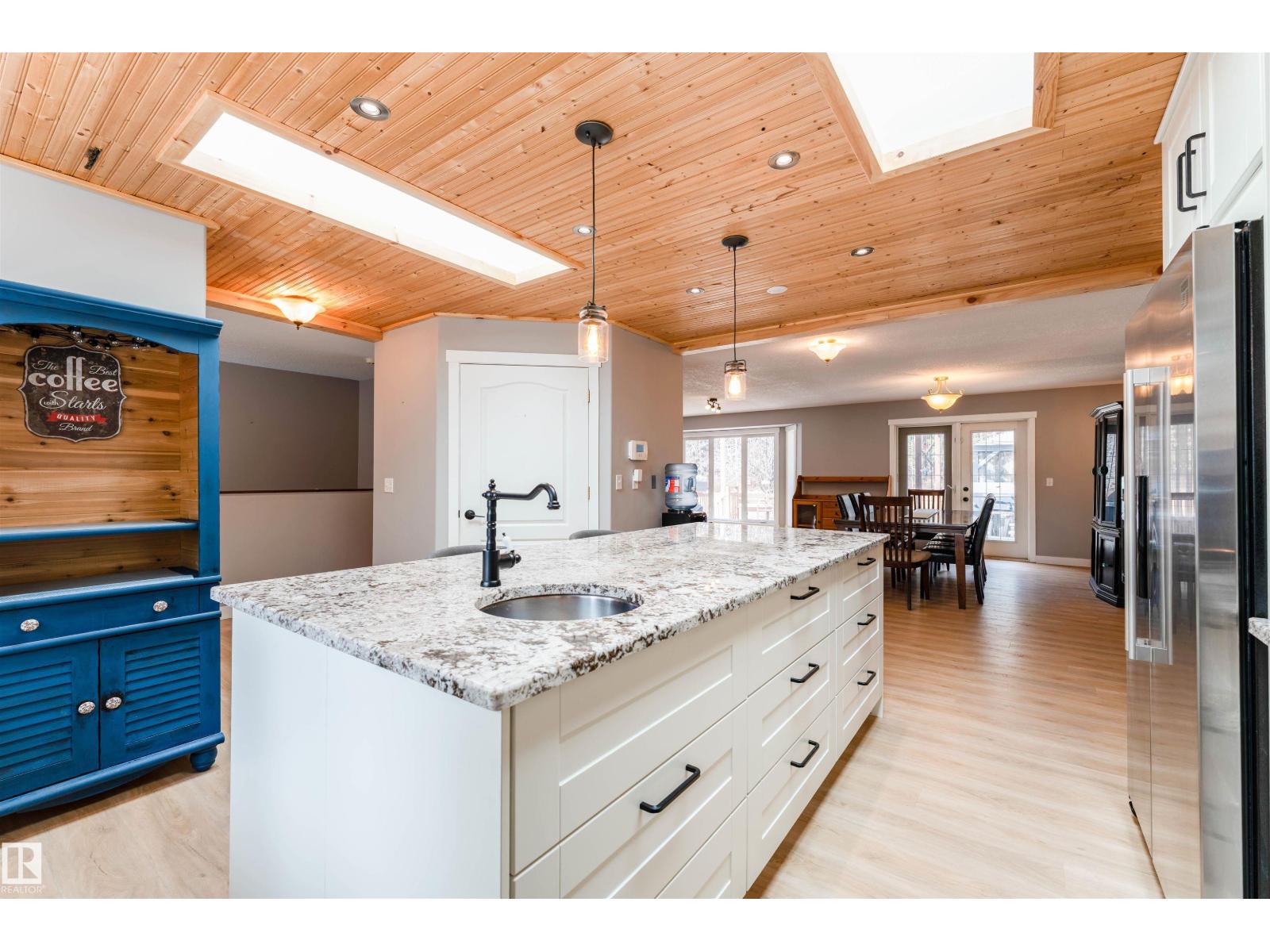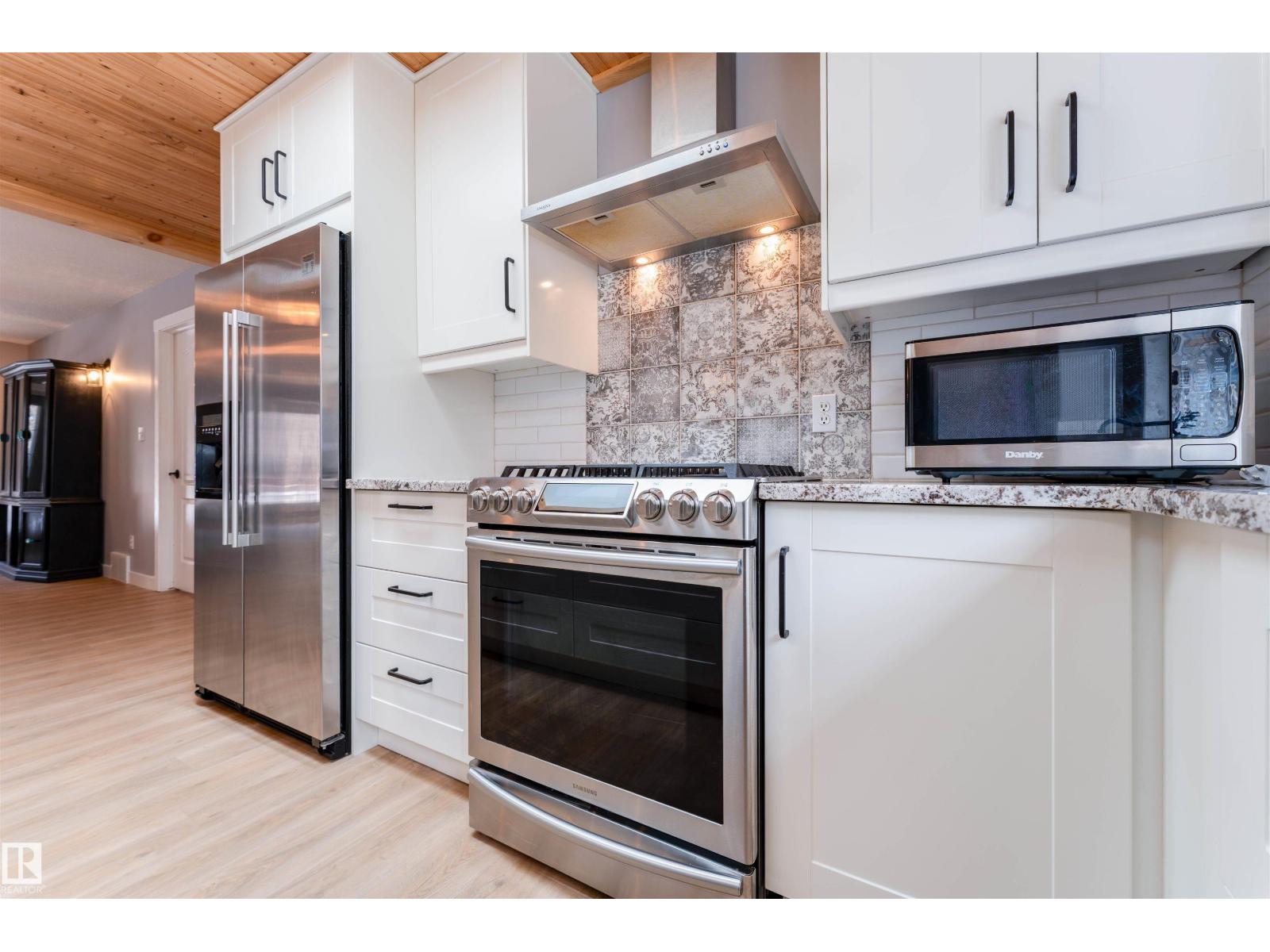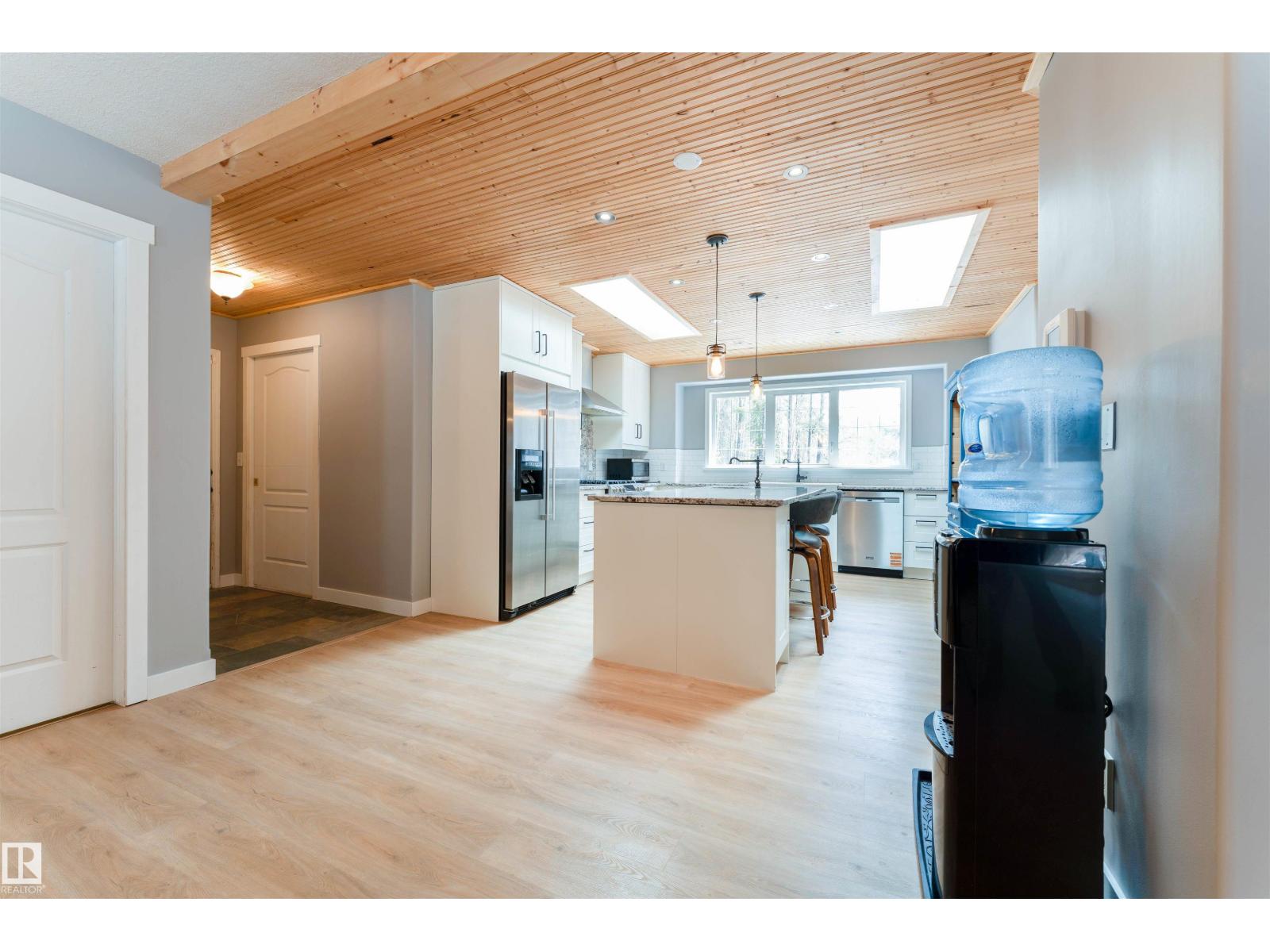 Experience modern country living in this beautifully renovated 2,047 sq ft bungalow, set on a private, treed acreage in Keephills. This spacious home offers 6 bedrooms (3 up, 3 down), including a luxurious, spa-inspired primary suite, plus a convenient Jack & Jill bathroom connecting the additional main-floor bedrooms. The open-concept kitchen and living areas create a seamless flow, complemented by a dedicated main-floor office. The bright main level features new vinyl plank flooring, a functional layout, and a cozy gas fireplace. The fully developed basement includes in-floor heating, additional bedrooms, and versatile living space. With 3.5 bathrooms, main-floor laundry, new windows and shingles, a heated double attached garage, and RV parking, this home delivers both comfort and practicality. Enjoy peaceful acreage living with outdoor amenities including a firepit and hot tub, all within walking distance to local conveniences such as the library and outdoor rink. (id:51989)
