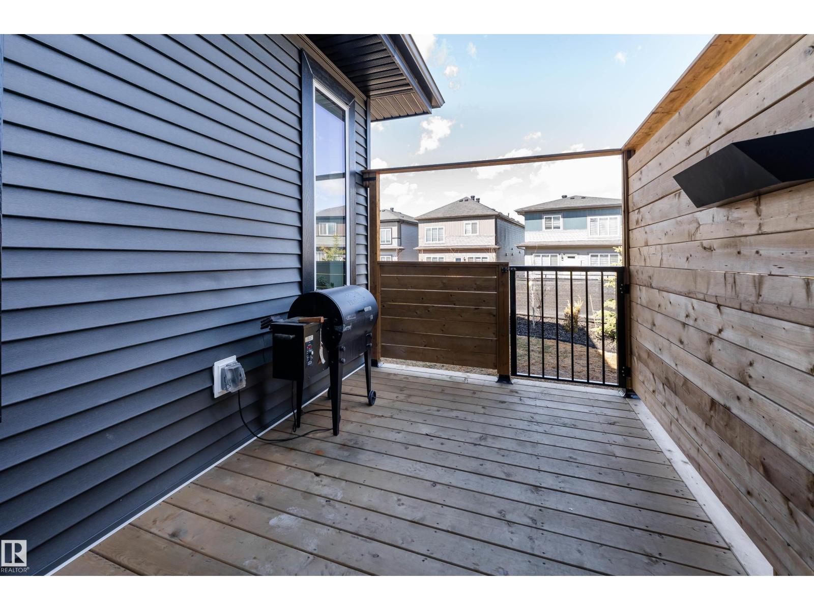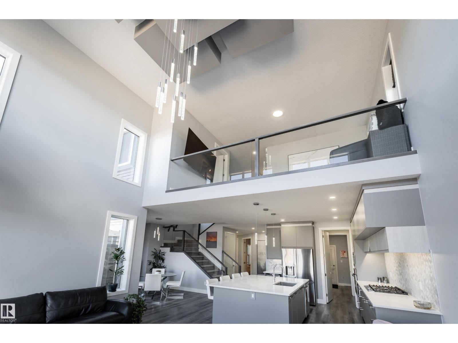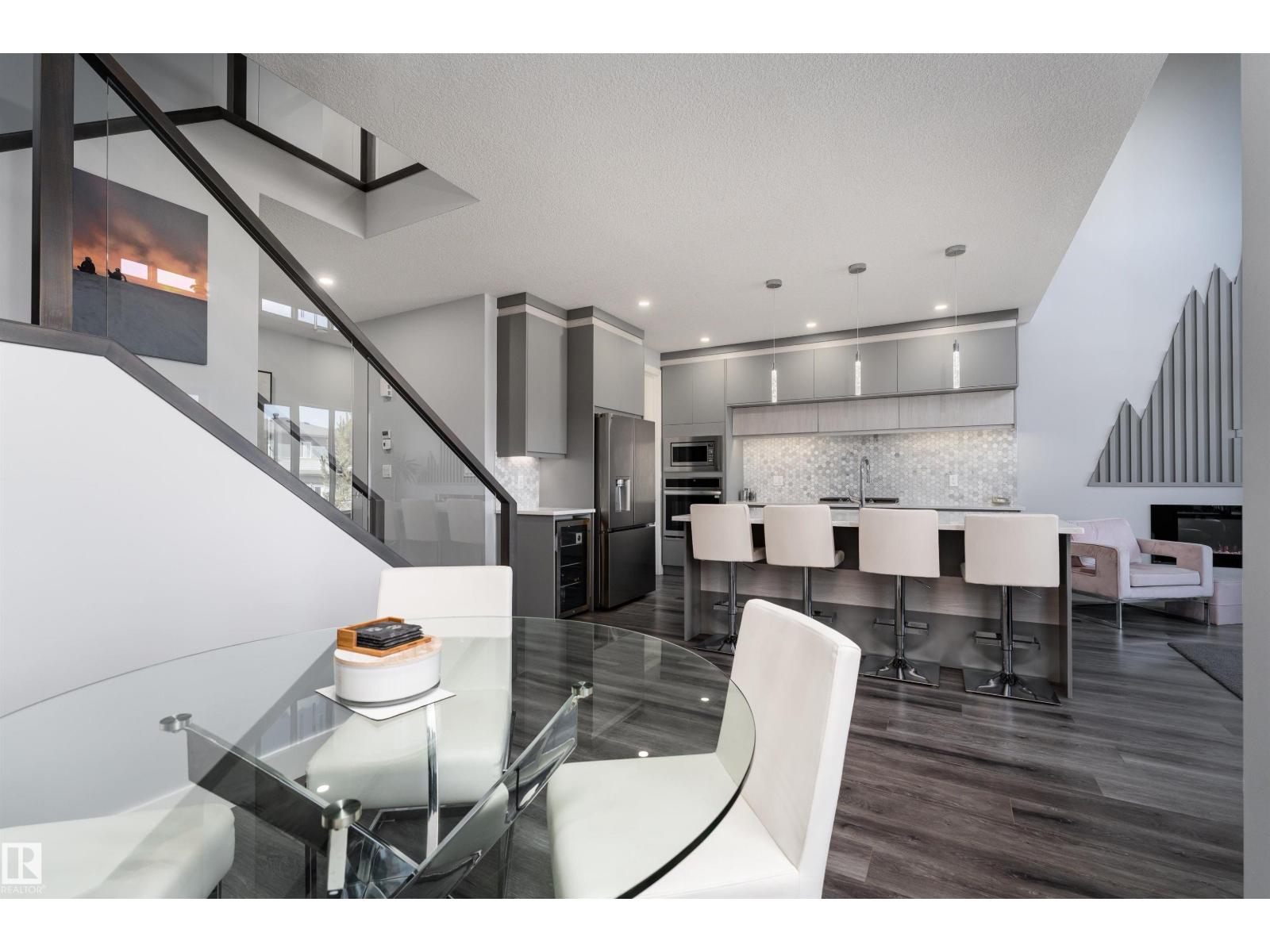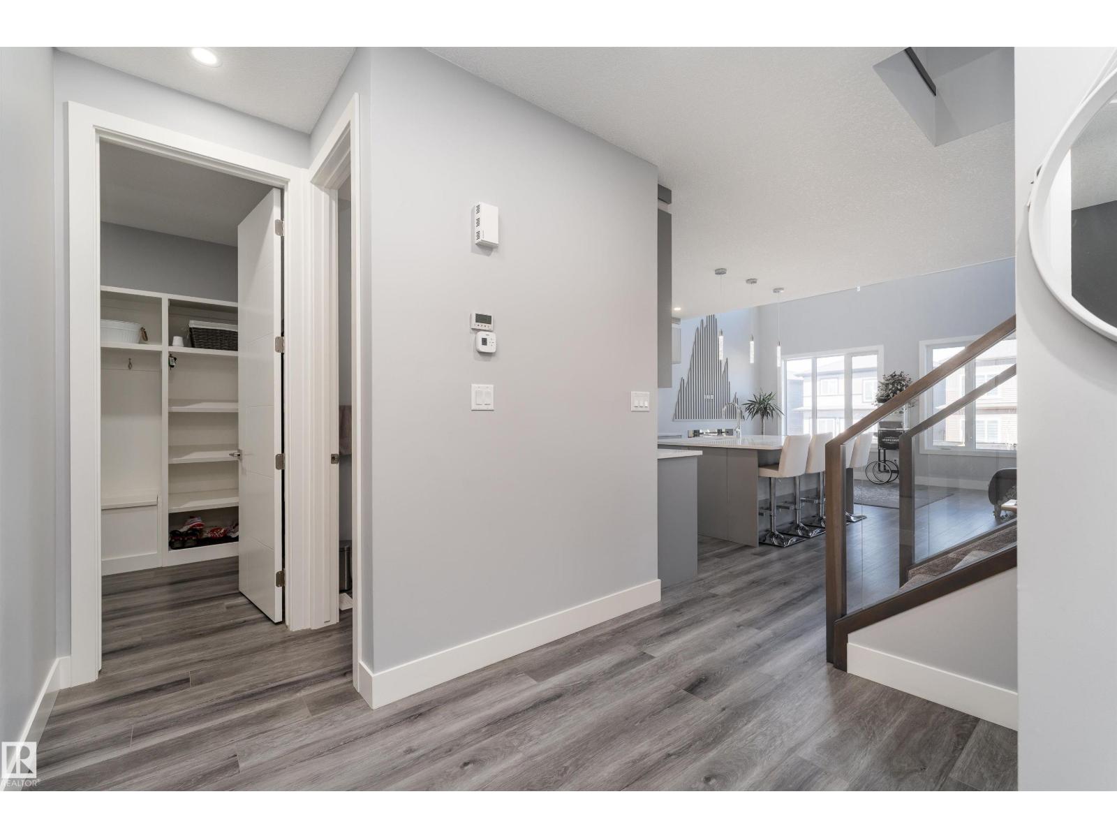 Exceptional customized home located in the up-and-coming community of Fenwyck, backing onto a walking trail. Move-in ready with a fully fenced and landscaped backyard. The main floor features a versatile bedroom currently used as an office, along with 9 ft ceilings and open-to-above design filled with natural light from large windows. The chef-inspired kitchen boasts a gas cooktop, built-in oven, walk-through pantry, and a massive quartz island with matching countertops and modern finishes. Upstairs, you’ll find three additional bedrooms including a spacious primary retreat with a spa-like ensuite. High-end finishes and hardware are showcased throughout, complemented by glass railings, triple-pane windows, closet organizers. Built with 2x6 exterior walls, this home offers improved insulation and long-term durability. A separate side entrance provides future suite potential. This is a gem of a home that shows 10/10, with a bright, airy feel throughout and outstanding craftsmanship evident in every detail. (id:51989)