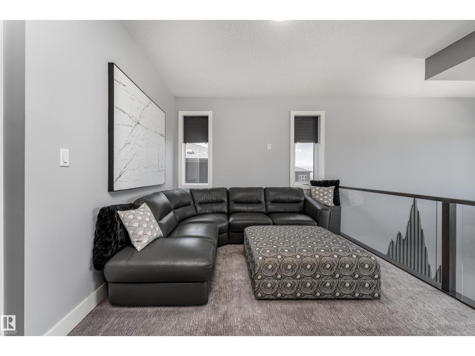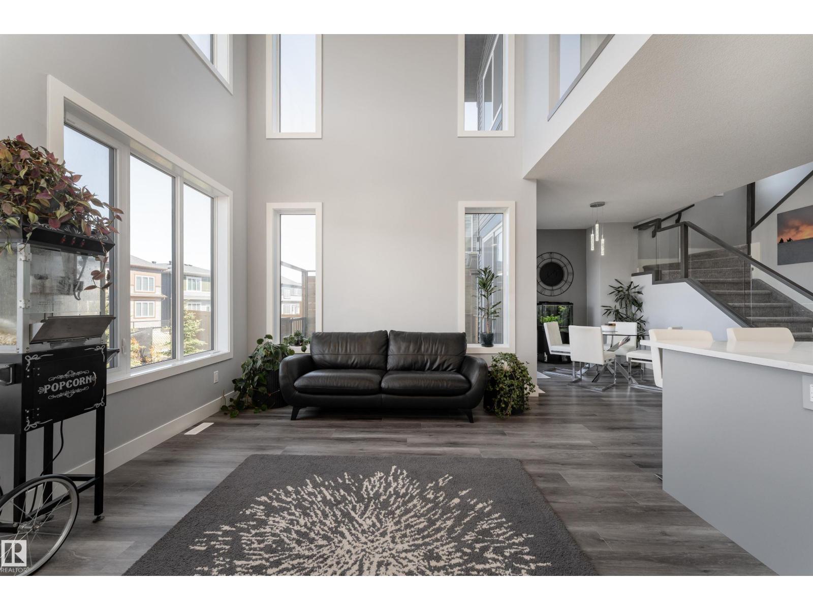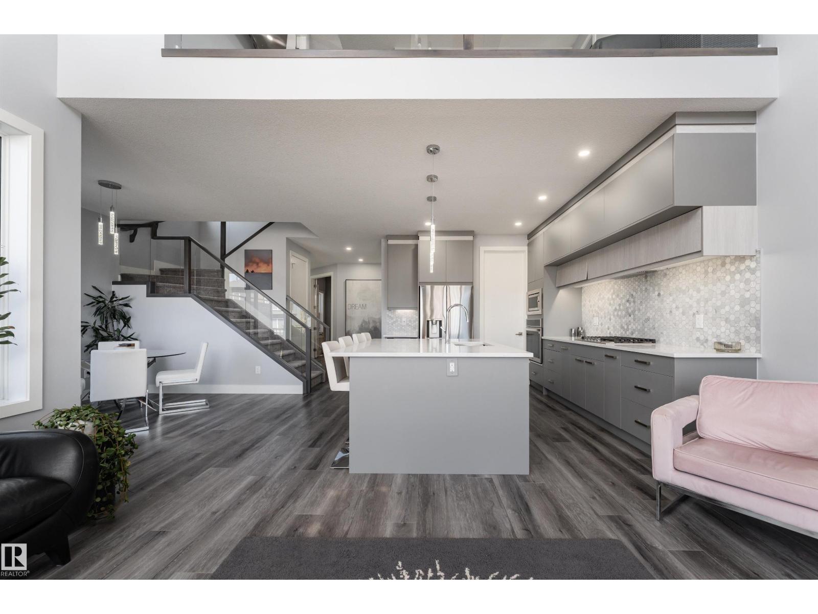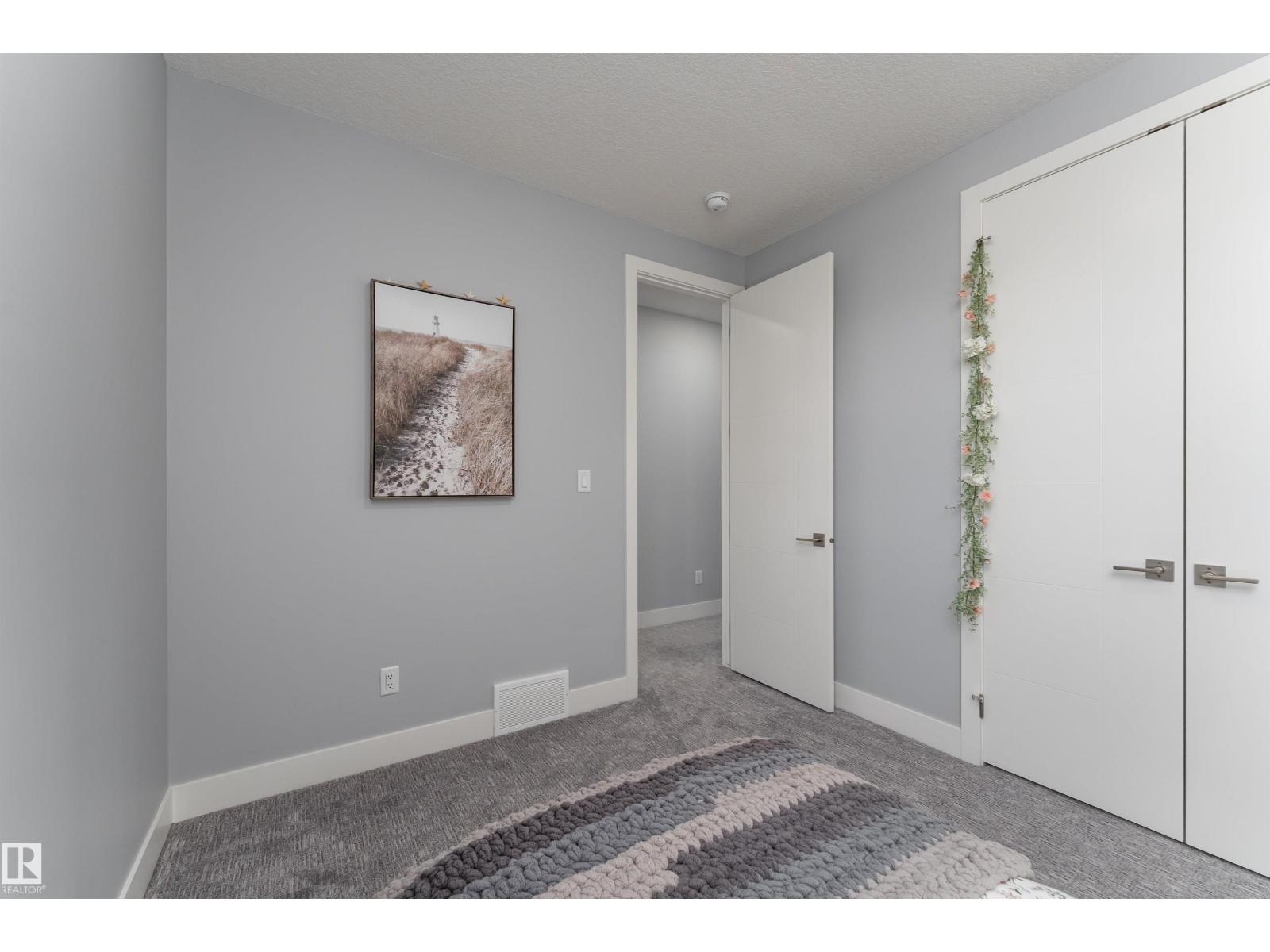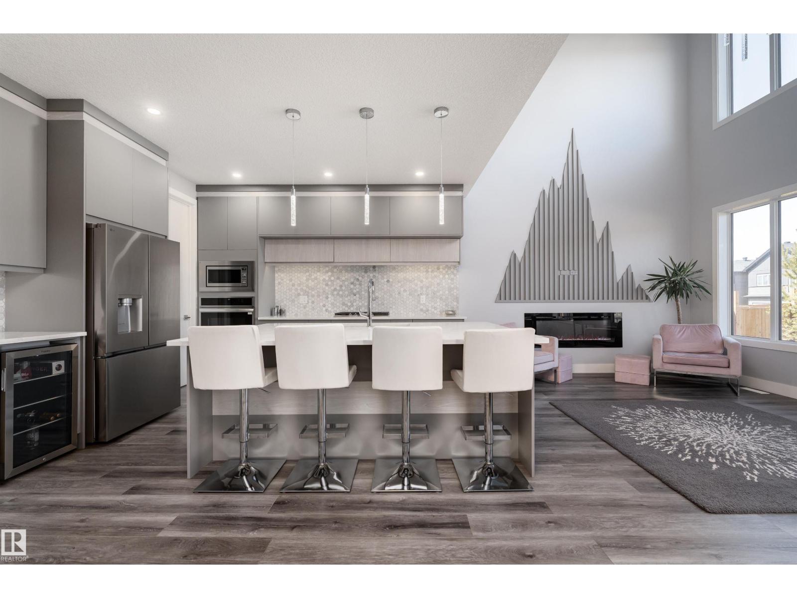 Exceptional customized home located in the up-and-coming community of Fenwyck, backing onto a walking trail. Move-in ready with a fully fenced and landscaped backyard. The main floor features a versatile bedroom currently used as an office, along with 9 ft ceilings and open-to-above design filled with natural light from large windows. The chef-inspired kitchen boasts a gas cooktop, built-in oven, walk-through pantry, and a massive quartz island with matching countertops and modern finishes. Upstairs, you’ll find three additional bedrooms including a spacious primary retreat with a spa-like ensuite. High-end finishes and hardware are showcased throughout, complemented by glass railings, triple-pane windows, closet organizers. Built with 2x6 exterior walls, this home offers improved insulation and long-term durability. A separate side entrance provides future suite potential. This is a gem of a home that shows 10/10, with a bright, airy feel throughout and outstanding craftsmanship evident in every detail. (id:51989)