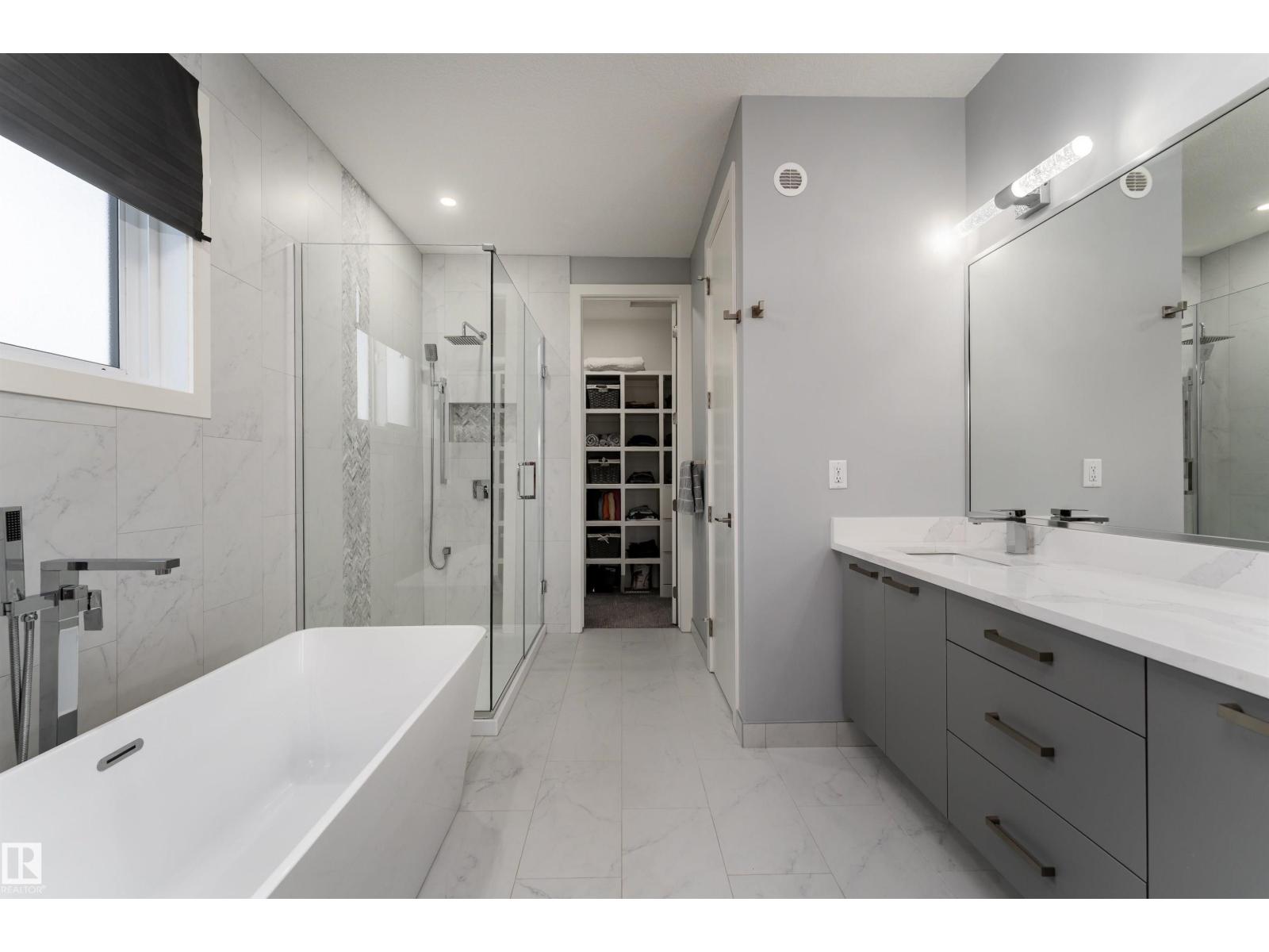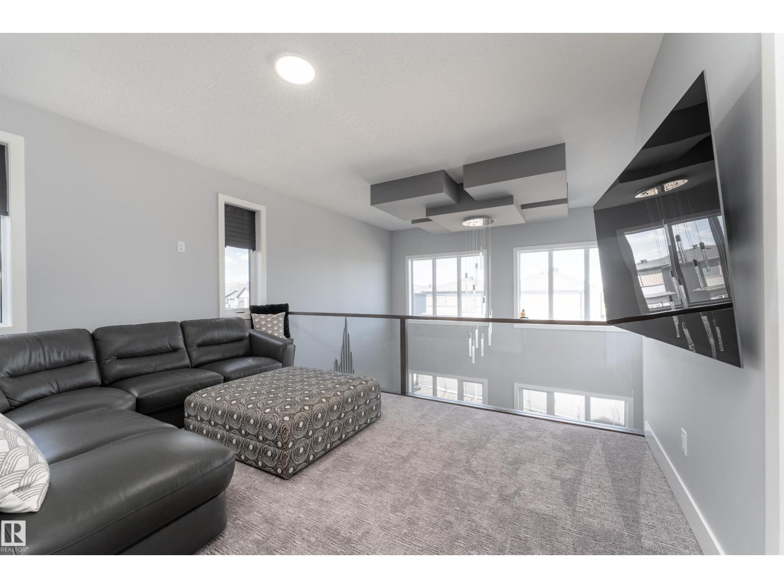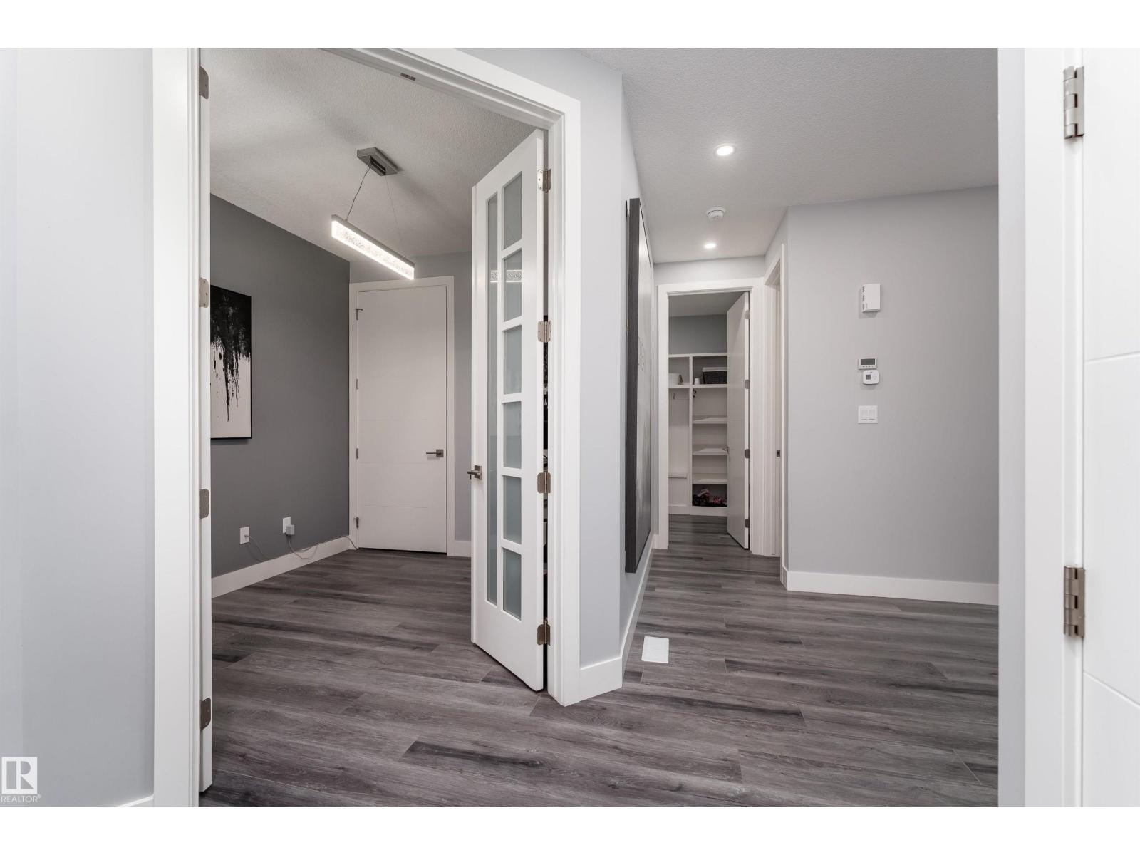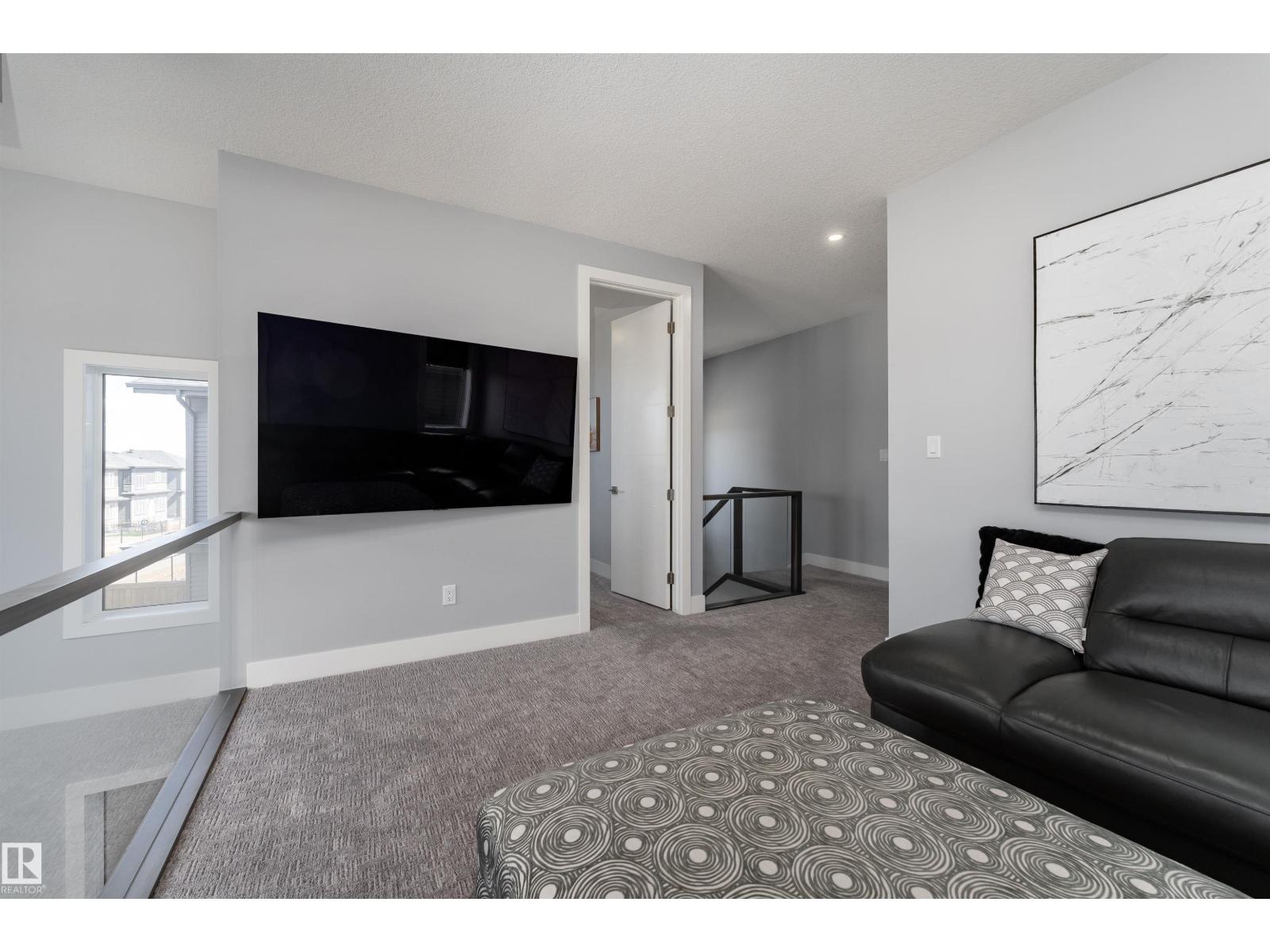 Exceptional customized home located in the up-and-coming community of Fenwyck, backing onto a walking trail. Move-in ready with a fully fenced and landscaped backyard. The main floor features a versatile bedroom currently used as an office, along with 9 ft ceilings and open-to-above design filled with natural light from large windows. The chef-inspired kitchen boasts a gas cooktop, built-in oven, walk-through pantry, and a massive quartz island with matching countertops and modern finishes. Upstairs, you’ll find three additional bedrooms including a spacious primary retreat with a spa-like ensuite. High-end finishes and hardware are showcased throughout, complemented by glass railings, triple-pane windows, closet organizers. Built with 2x6 exterior walls, this home offers improved insulation and long-term durability. A separate side entrance provides future suite potential. This is a gem of a home that shows 10/10, with a bright, airy feel throughout and outstanding craftsmanship evident in every detail. (id:51989)