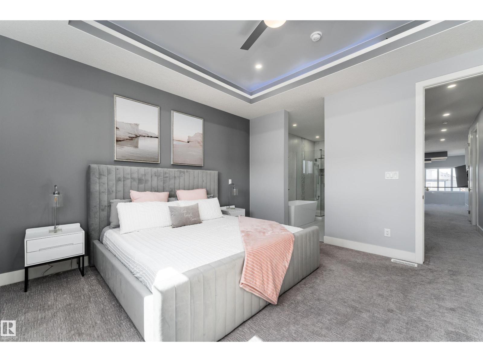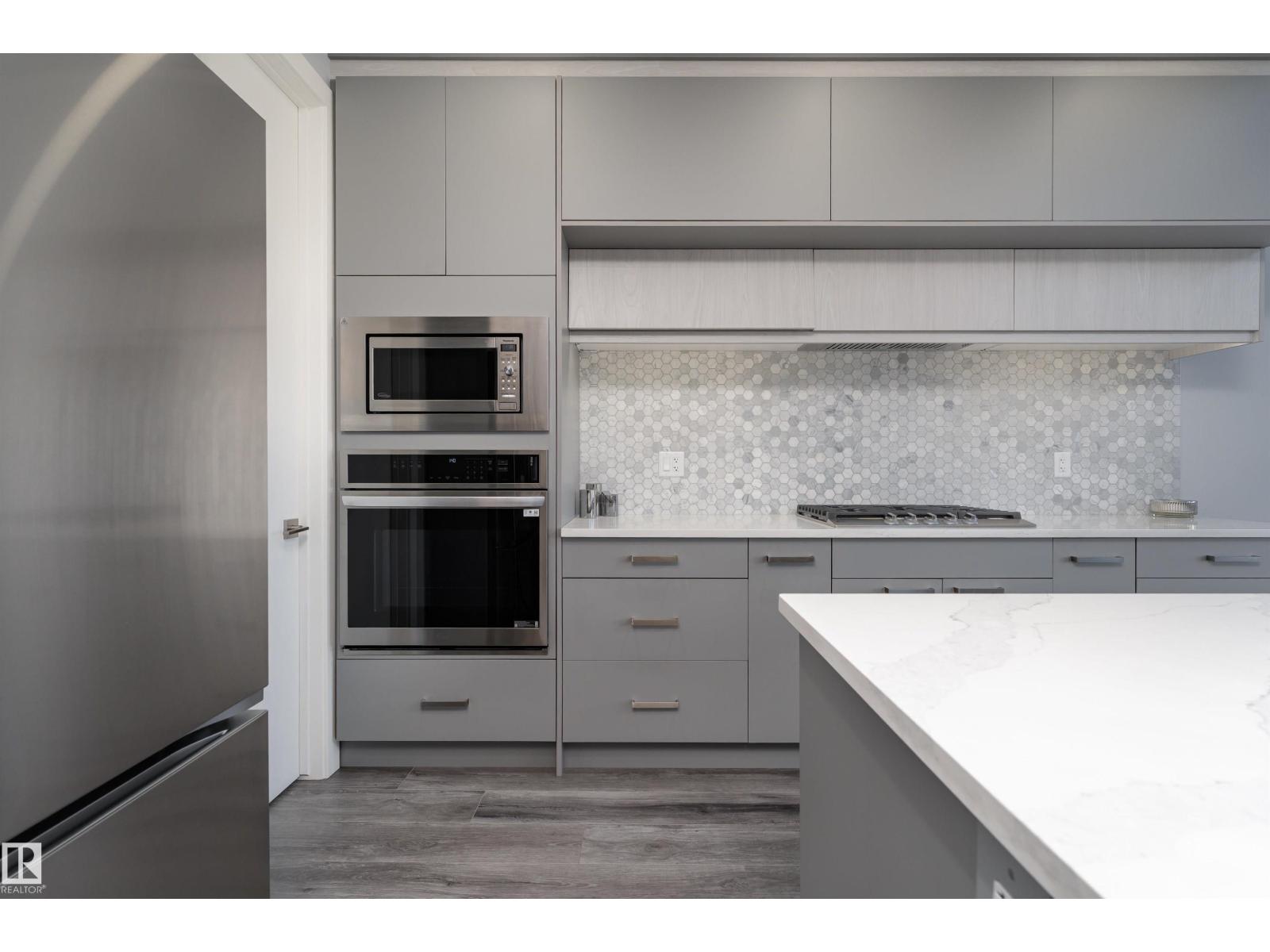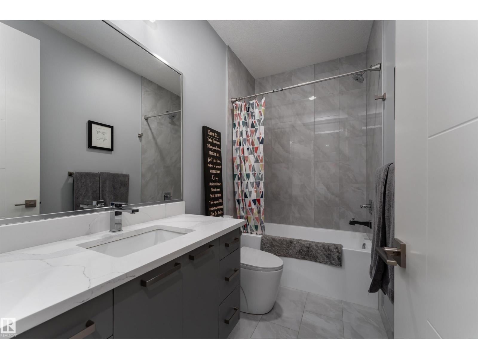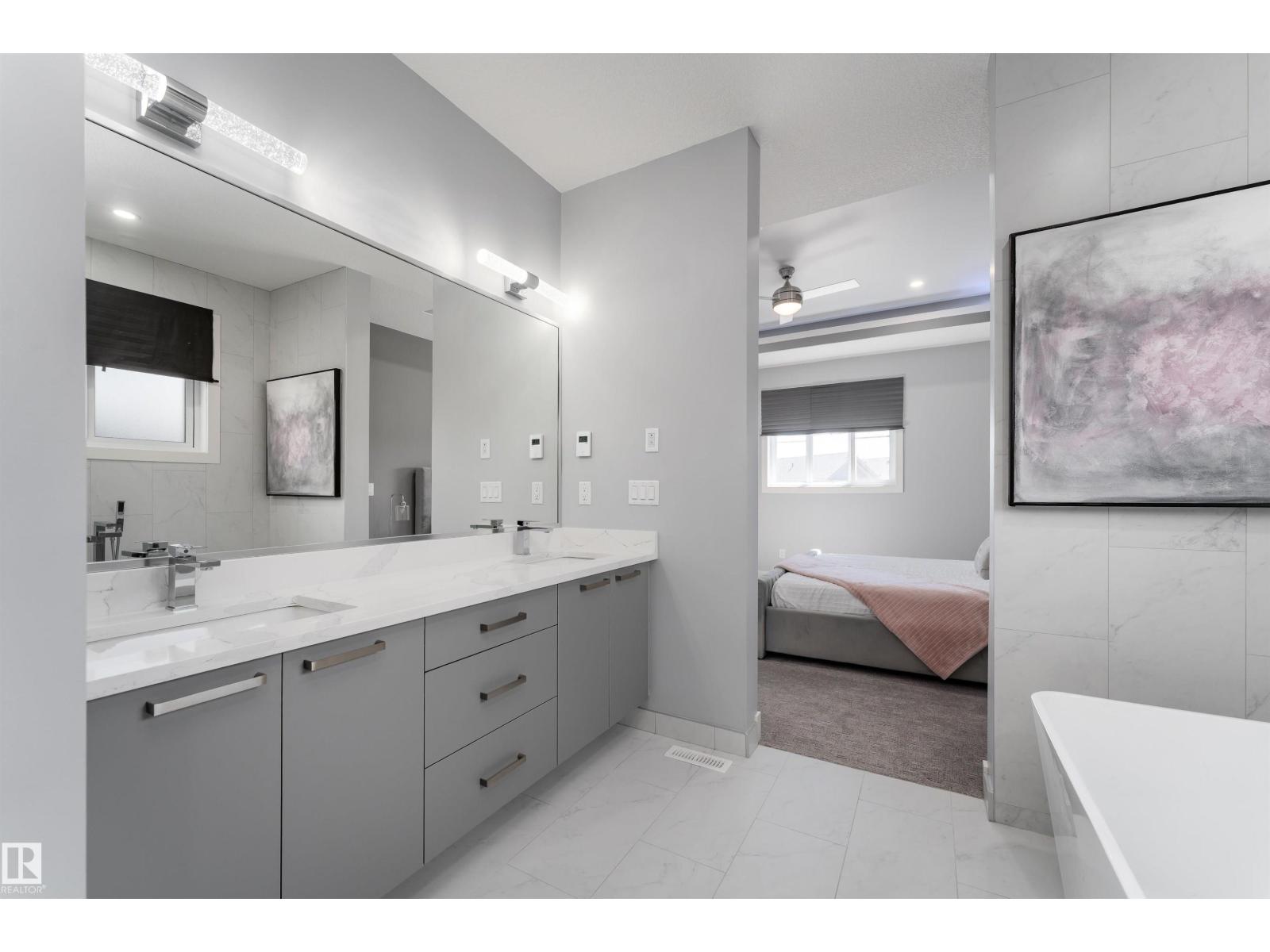 Exceptional customized home located in the up-and-coming community of Fenwyck, backing onto a walking trail. Move-in ready with a fully fenced and landscaped backyard. The main floor features a versatile bedroom currently used as an office, along with 9 ft ceilings and open-to-above design filled with natural light from large windows. The chef-inspired kitchen boasts a gas cooktop, built-in oven, walk-through pantry, and a massive quartz island with matching countertops and modern finishes. Upstairs, you’ll find three additional bedrooms including a spacious primary retreat with a spa-like ensuite. High-end finishes and hardware are showcased throughout, complemented by glass railings, triple-pane windows, closet organizers. Built with 2x6 exterior walls, this home offers improved insulation and long-term durability. A separate side entrance provides future suite potential. This is a gem of a home that shows 10/10, with a bright, airy feel throughout and outstanding craftsmanship evident in every detail. (id:51989)