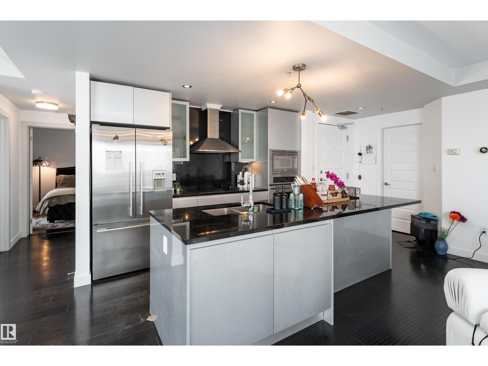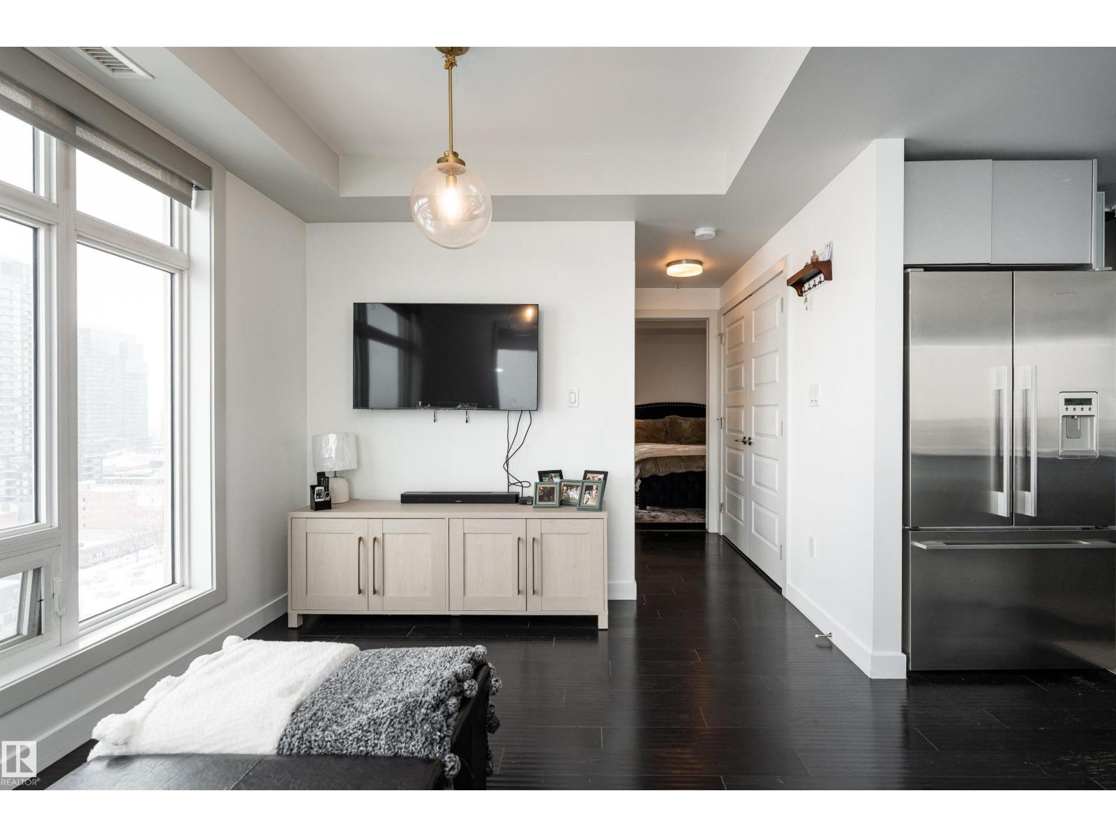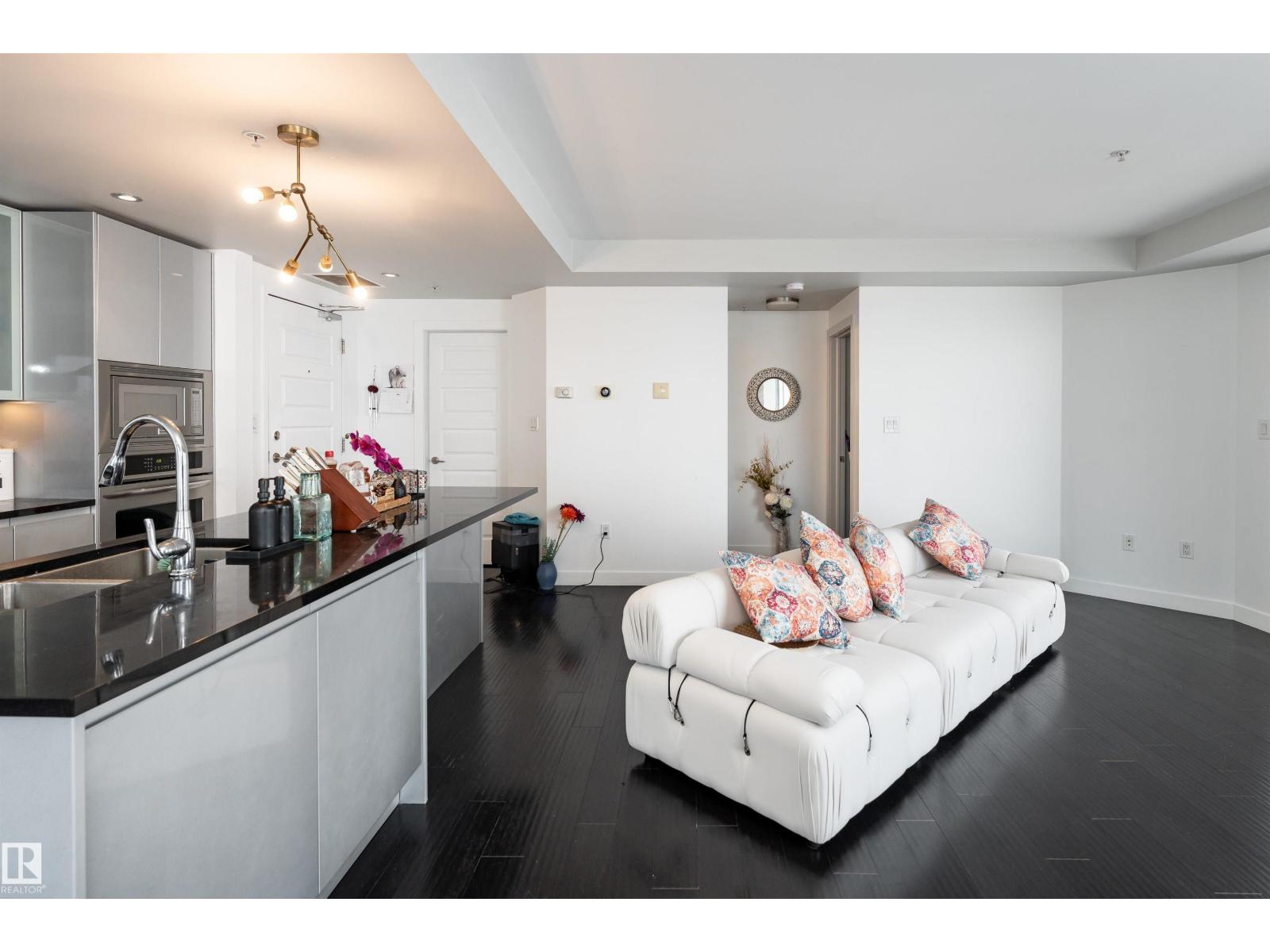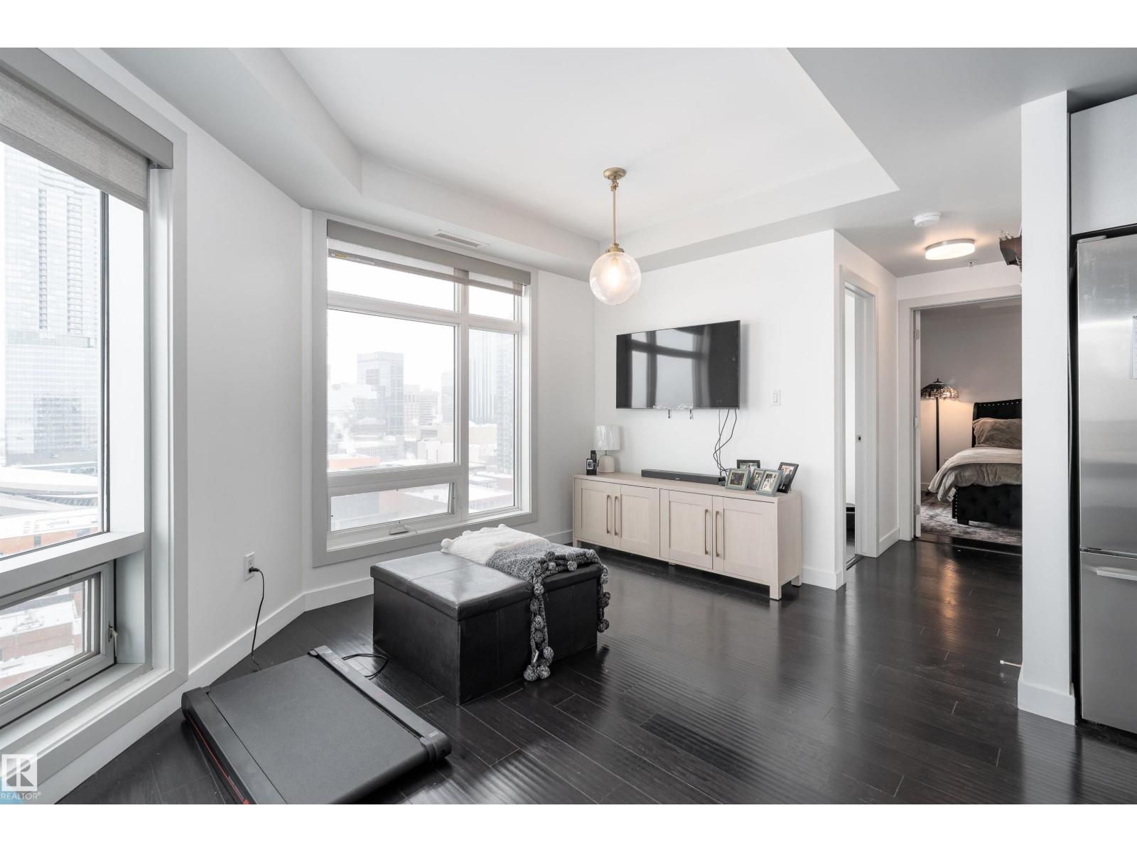 ABOVE IT ALL, RIGHT AT HOME, RIGHT WHERE YOU BELONG. Wake up to soft morning light over the downtown and unwind with sunset skies from your balcony as skyline glows around you. This SUB-PENTHOUSE offers a refined retreat in the heart of the bustling capital city, elevating everyday living. Step inside to a sophisticated black and white motif with crisp, clean lines, sleek cabinetry, stainless steel appliances, rich engineered hardwood flooring, A/C, and a central fireplace that blends modern efficiency with welcoming comfort. Expansive windows frame the skyline and flood the living area with natural light. Discover this 2 bedroom, 1000+ sq ft home, each bedroom featuring its own 4-piece bath, walk-in closet, and balcony, plus a versatile extra room perfect for a home office or gym. PERFECTLY POSITIONED for premier dining, elite shopping, HOCKEY, and entertainment, just minutes from the River Valley walking trails, this is downtown living at its most polished. Come see what your heart already calls home! (id:51989)