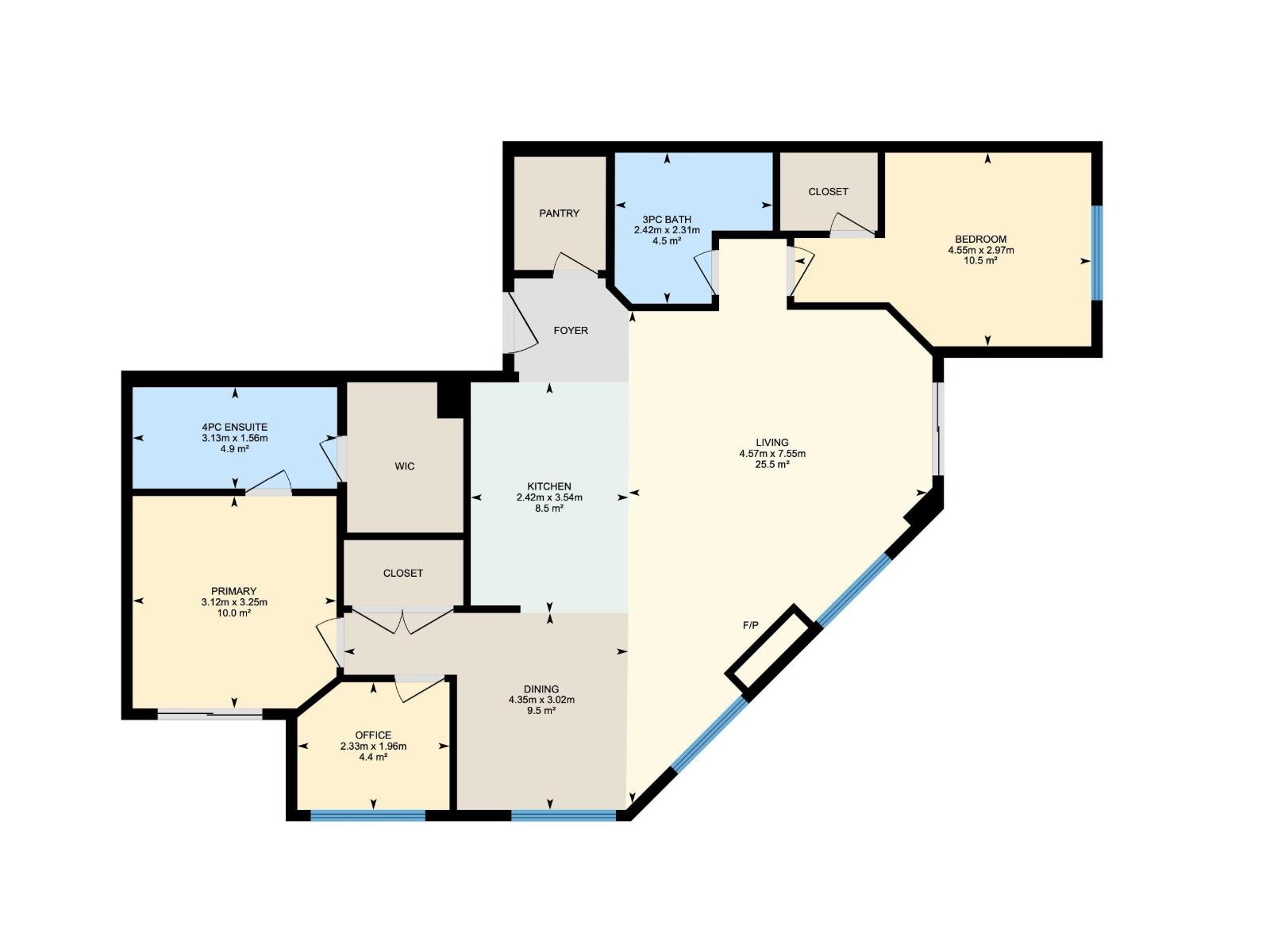 | Main Level | Primary Bedroom | 3.25 m | 3.12 m | 3.25 m x 3.12 m |