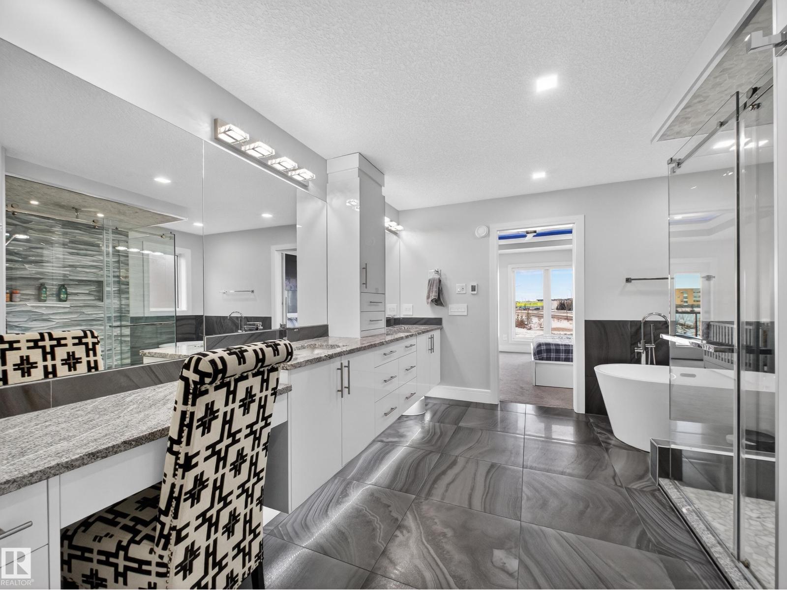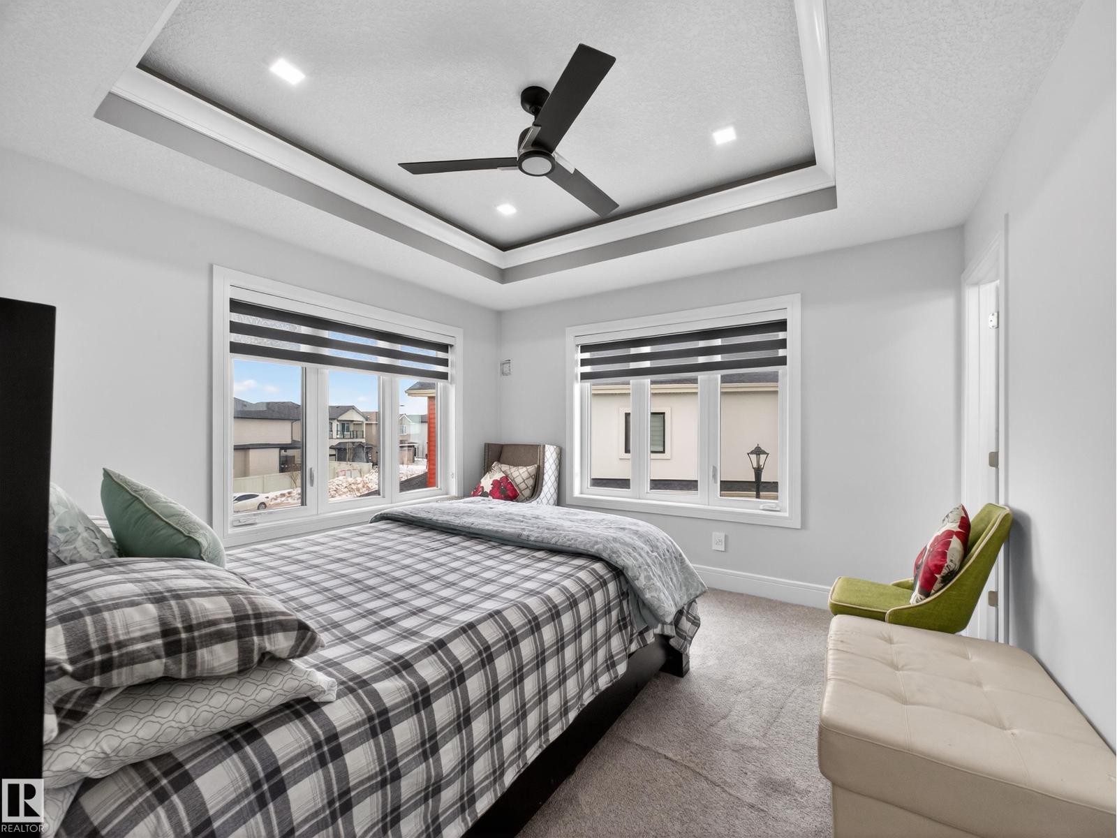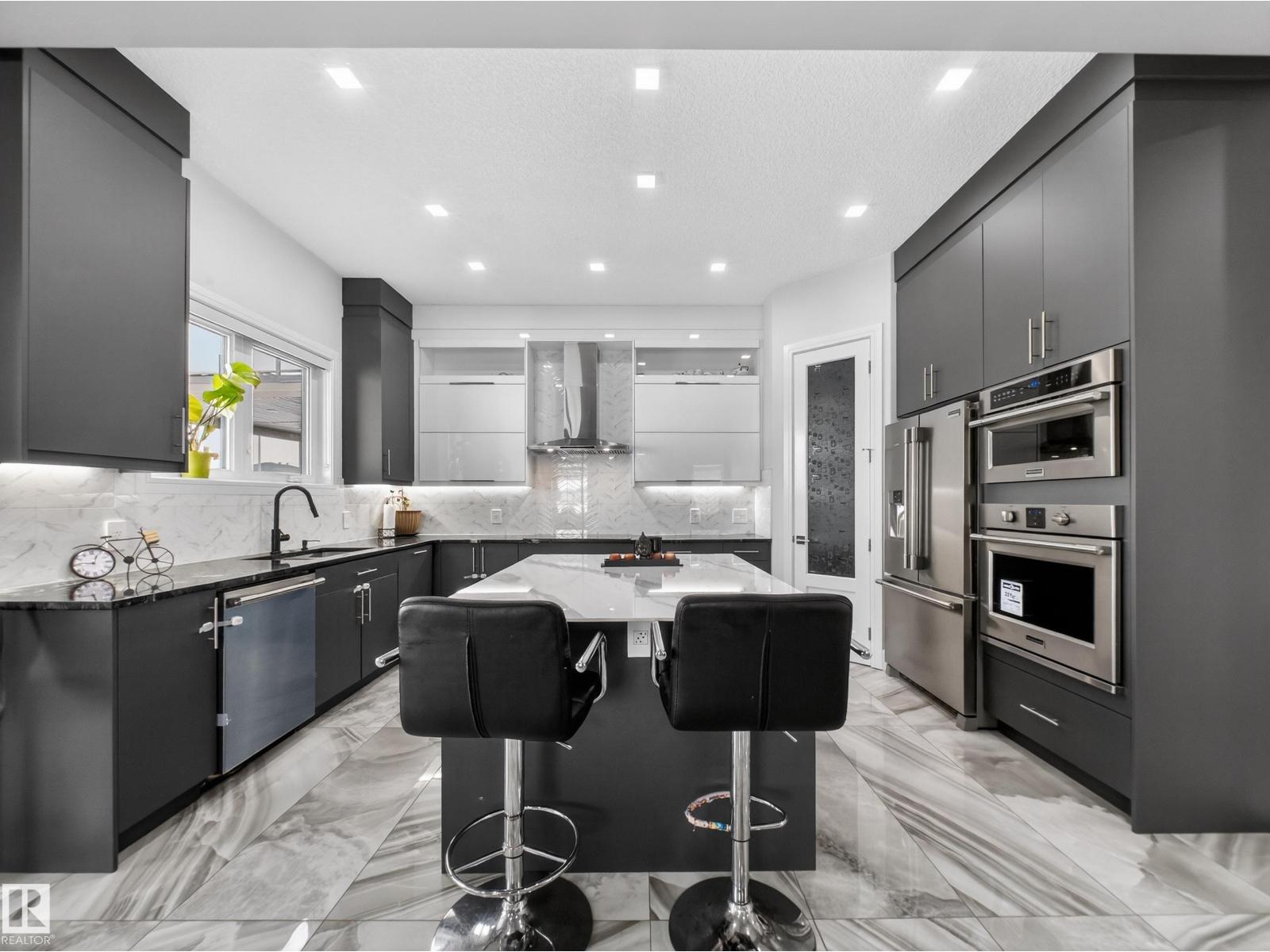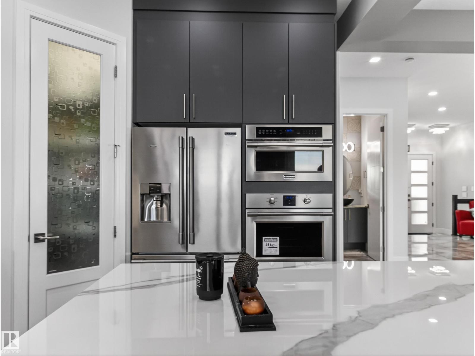 THIS IS A DREAM!...HUGE YARD BACKING PARK/POND...LEGAL BASEMENT SUITE w/SEPARATE ENTRANCE...6 BED/5.5 BATHS...HIGH END FINISHES...DREAM KITCHEN...CLOSE TO EVERYTHING!... ~!WELCOME HOME !~ This home has details that you need to come see for yourself! 10 FT CEILINGS/COFFERED CEILINGS everywhere, with tons of accent lighting throughout home. CHEF KITCHEN, featuring stone countertops, induction cooktop, wall oven, modern custom cabinetry. Primary suite has amazing private balcony, walk-in closet/builtins & spa-like ensuite. Two more bedrooms up, one having an ensuite also! INFLOOR HEAT in ensuites too! Enjoy the INCOME of the legal basement suite, or use as in-law suite. Other bonuses - partially covered deck, oversized double garage, HUGE BACKYARD backing onto a pond and walking trail. ++ pot lights throughout, solar panel & central vac rough-ins. Close to schools, shopping, parks, walking trails, Whitemud & Anthony Henday. What more could you want?!! (id:51989)
