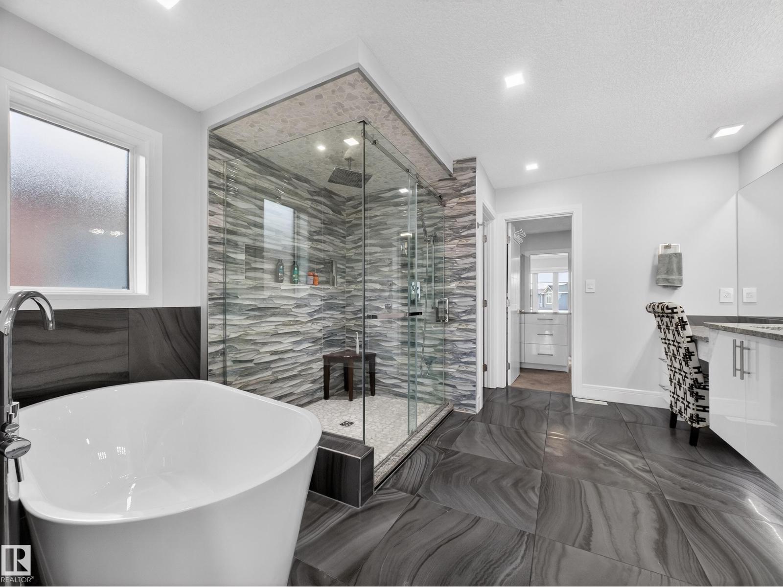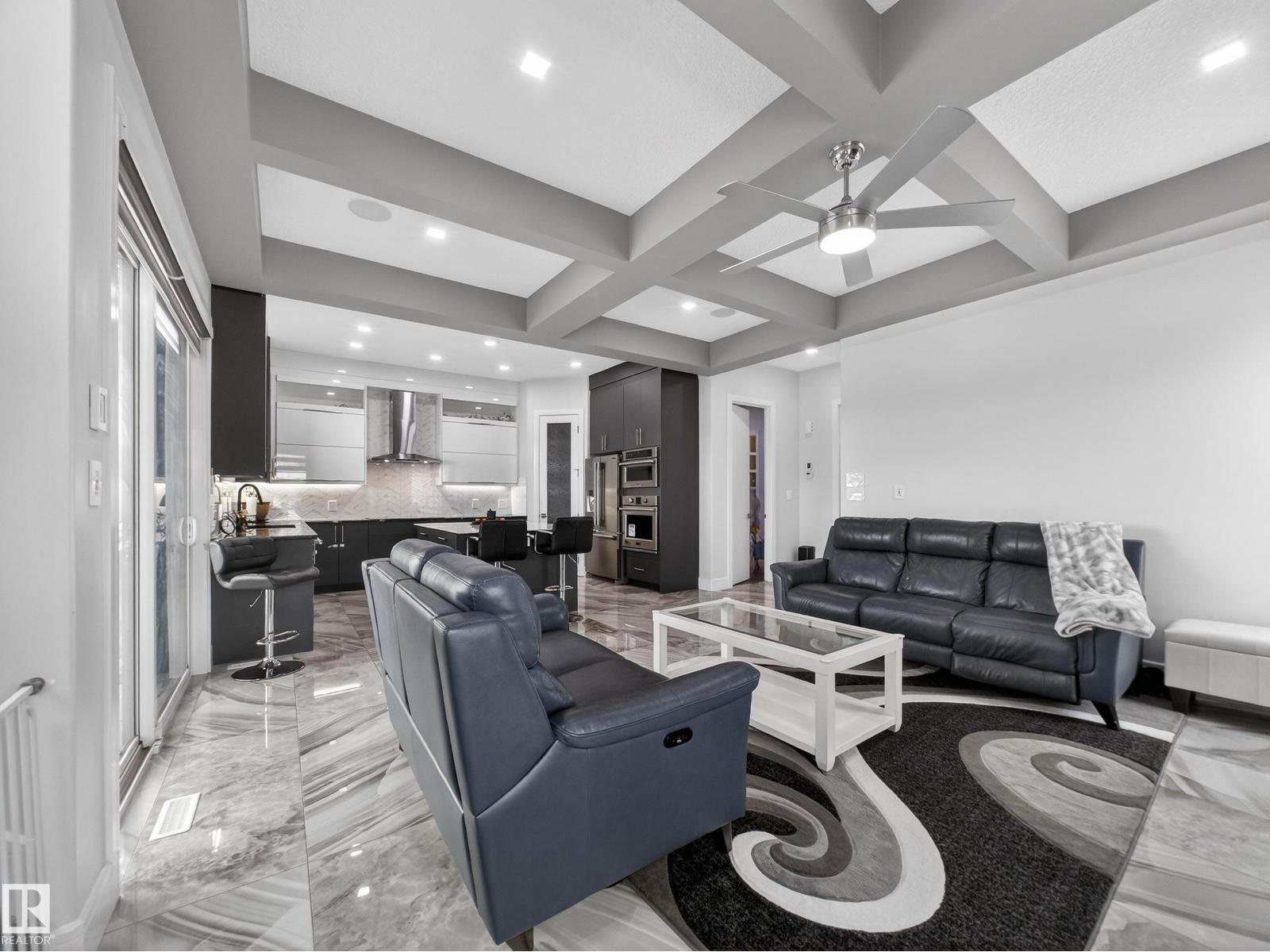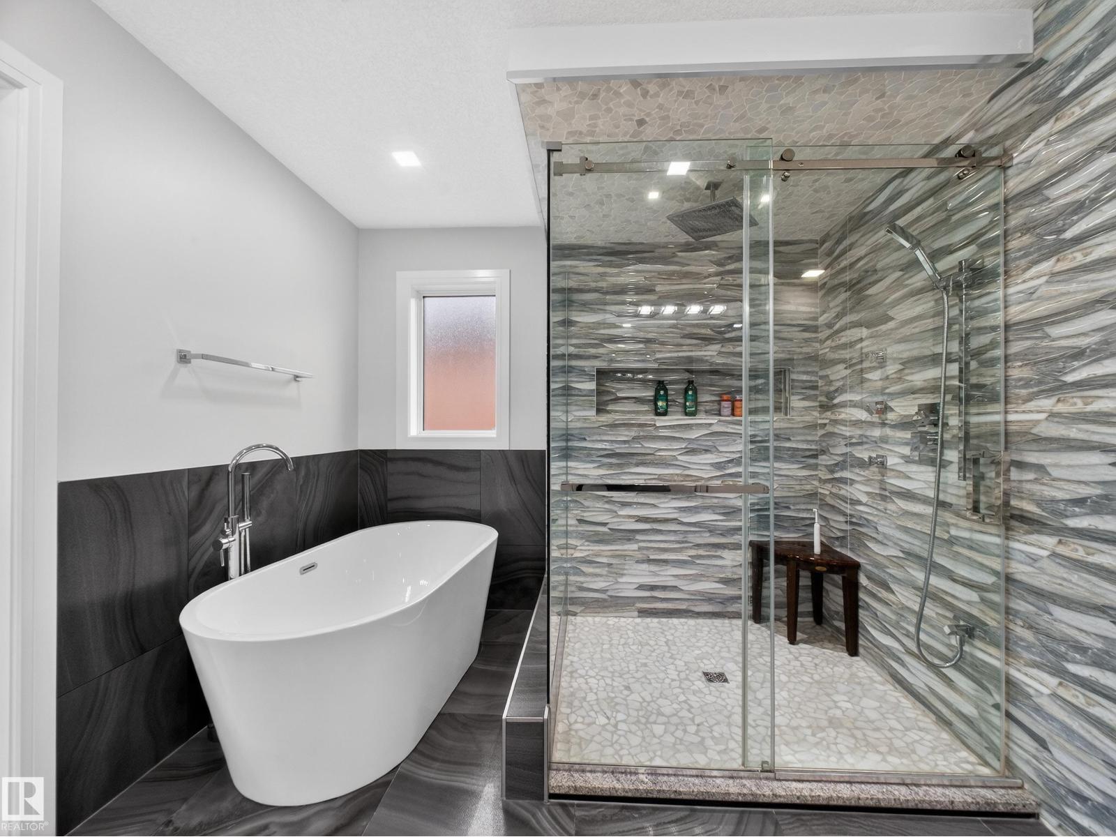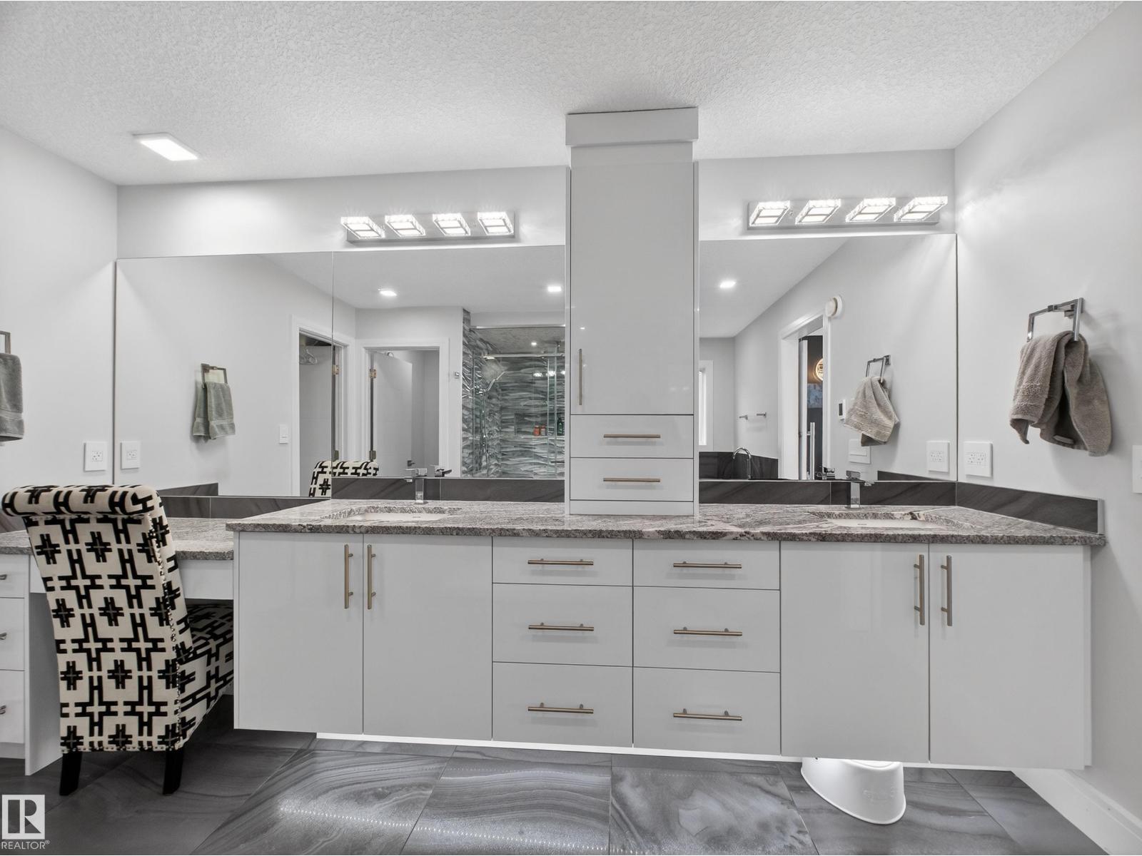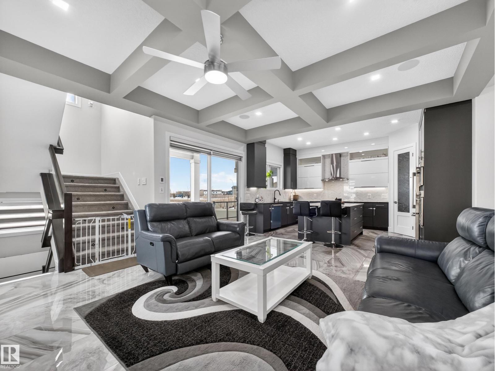 THIS IS A DREAM!...HUGE YARD BACKING PARK/POND...LEGAL BASEMENT SUITE w/SEPARATE ENTRANCE...6 BED/5.5 BATHS...HIGH END FINISHES...DREAM KITCHEN...CLOSE TO EVERYTHING!... ~!WELCOME HOME !~ This home has details that you need to come see for yourself! 10 FT CEILINGS/COFFERED CEILINGS everywhere, with tons of accent lighting throughout home. CHEF KITCHEN, featuring stone countertops, induction cooktop, wall oven, modern custom cabinetry. Primary suite has amazing private balcony, walk-in closet/builtins & spa-like ensuite. Two more bedrooms up, one having an ensuite also! INFLOOR HEAT in ensuites too! Enjoy the INCOME of the legal basement suite, or use as in-law suite. Other bonuses - partially covered deck, oversized double garage, HUGE BACKYARD backing onto a pond and walking trail. ++ pot lights throughout, solar panel & central vac rough-ins. Close to schools, shopping, parks, walking trails, Whitemud & Anthony Henday. What more could you want?!! (id:51989)