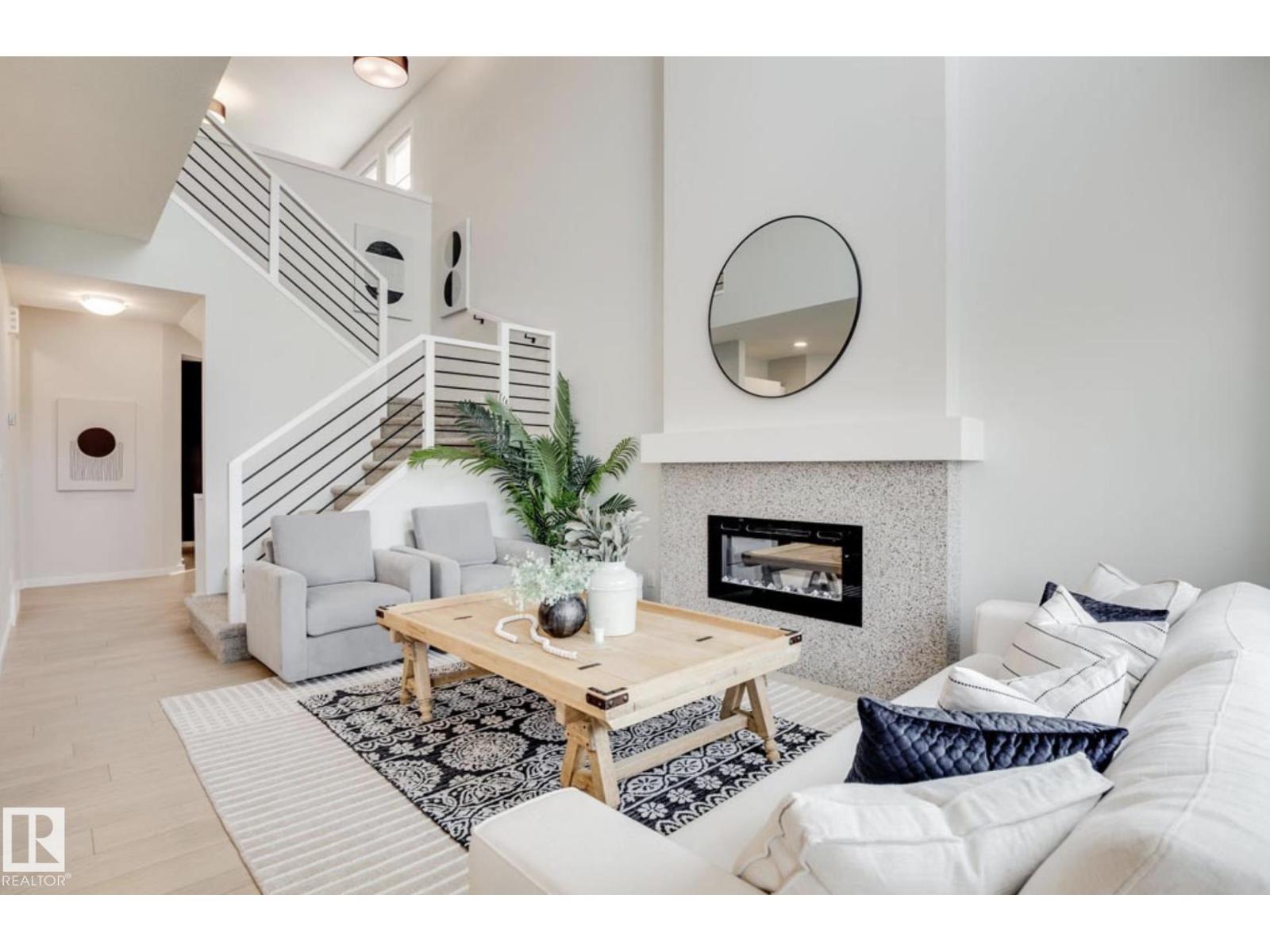 Introducing the “Halladay” by MasterCraft builder, Homes By Avi. Luxury 2-storey home nestled in the family-friendly community of Southfork Leduc. School, parks & trails are just a hop away. Home design is OUTSTANDING boasting SEPARATE SIDE ENTRANCE, desired neutral palette, 3 spacious bedrooms all w/WIC’s, 2.5 baths, front flex room (perfect for home office/4th bedroom), upper-level family room & convenient laundry room. Welcoming 9ft foyer transitions to open- to-below w/soaring 2-storey oversized windows in GREAT ROOM. Showcases upscale lighting, luxury vinyl plank flooring & built-in electric fireplace. Chef's kitchen is complimented by abundance of soft close cabinetry, quartz countertops, eat-on centre island w/under-mount sink, walk-thru pantry to mud room, divine dinette & generous appliance allowance. Owners’ suite has spa-inspired deluxe 5-pc ensuite w/dual sinks, soaker tub & glass shower. Generous junior rooms & 4 pc bath. Full landscaping included! PHOTOS OF SIMILAR MODEL FOR ILLUSTRATION (id:51989)