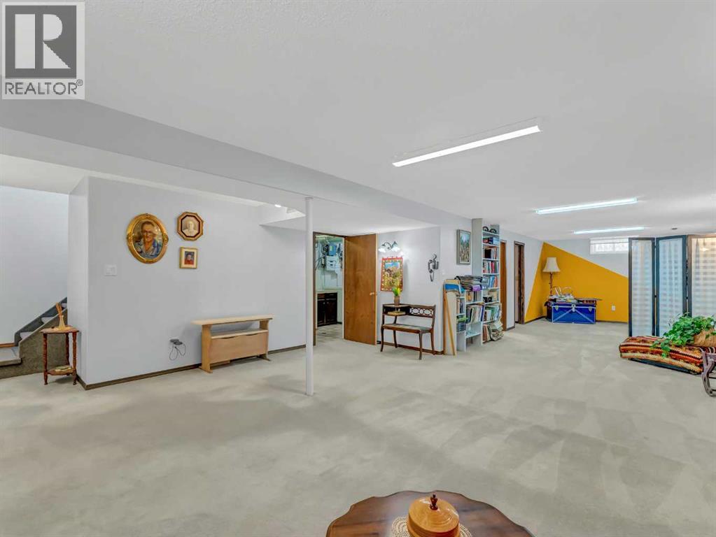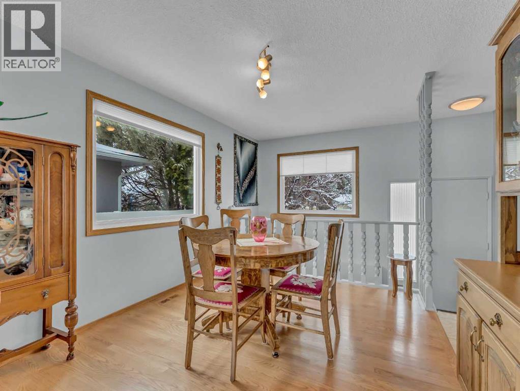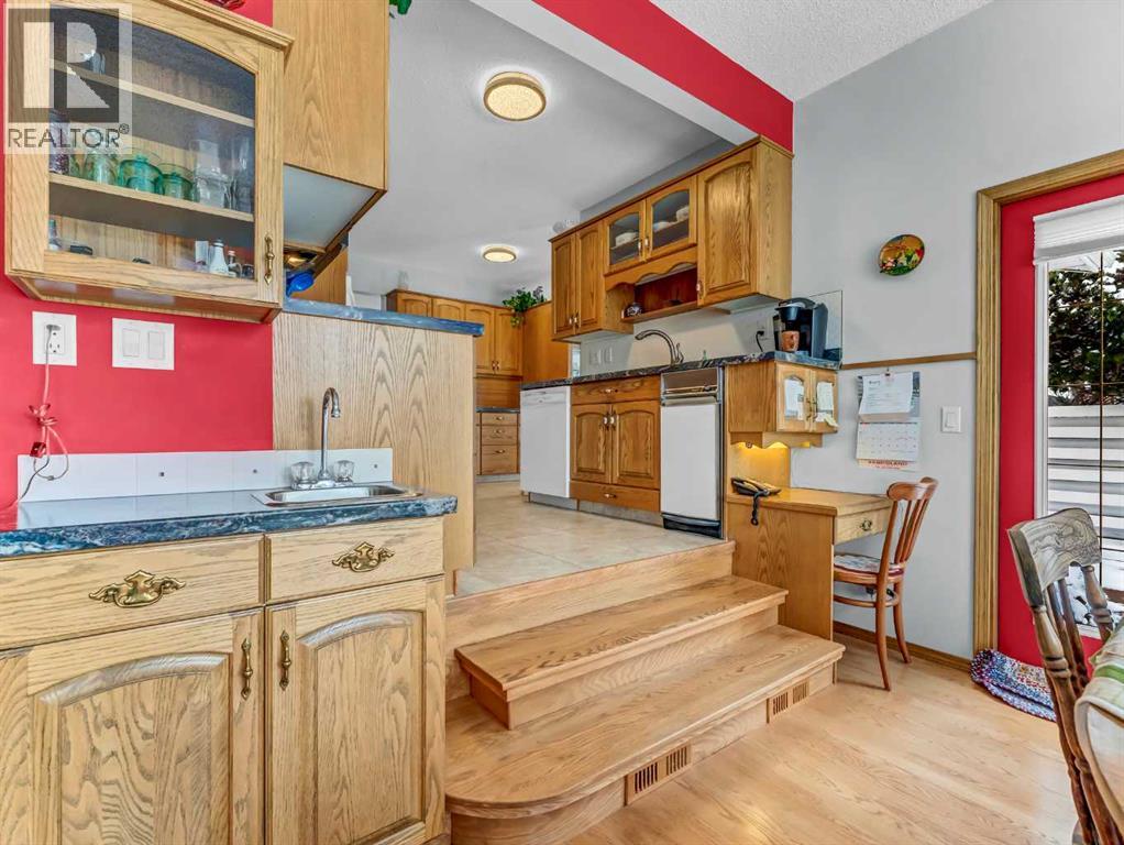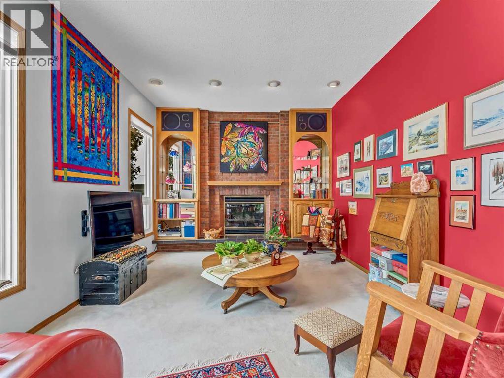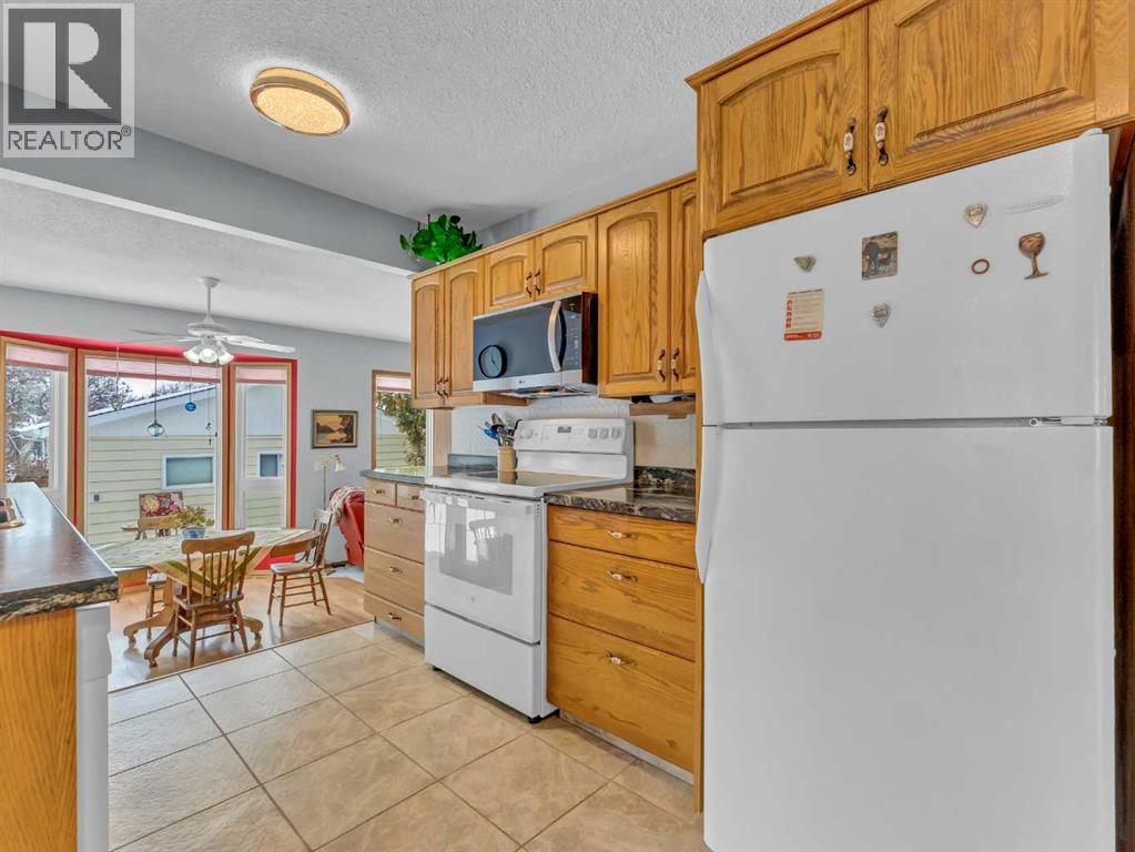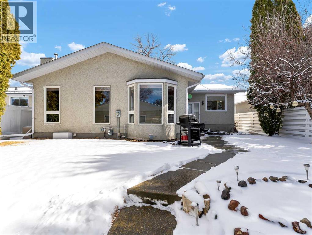 Spacious, updated, and perfectly located! This impressive 1,517 sq. ft. bungalow in Crestwood sits directly across from the Stampede Grounds and coulees, offering fantastic views and a location that’s hard to beat. The bright main floor is filled with natural light and features updated vinyl windows throughout. A generous living room flows into the dining area and kitchen, where you’ll find newer appliances and updated countertops. Just off the kitchen is a large, versatile family room with space for formal dining, highlighted by a cozy gas fireplace, built-in shelving, and a beautiful brick feature wall—perfect for relaxing or entertaining.The main level includes three bedrooms, including a primary suite with a 2-piece ensuite, along with a 3-piece main bathroom. Downstairs offers even more space with a large rec room, laundry and utility area with plenty of storage, plus an additional room with a closet that works perfectly as a den, office, or hobby space. Outside, enjoy the lovely backyard and the convenience of a spacious double detached garage. A well-kept, nicely updated home in a prime location—this Crestwood bungalow offers space, comfort, and value all in one! (id:51989)