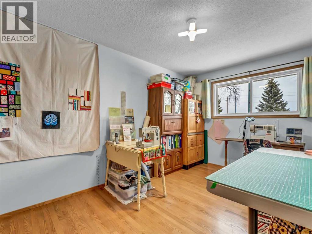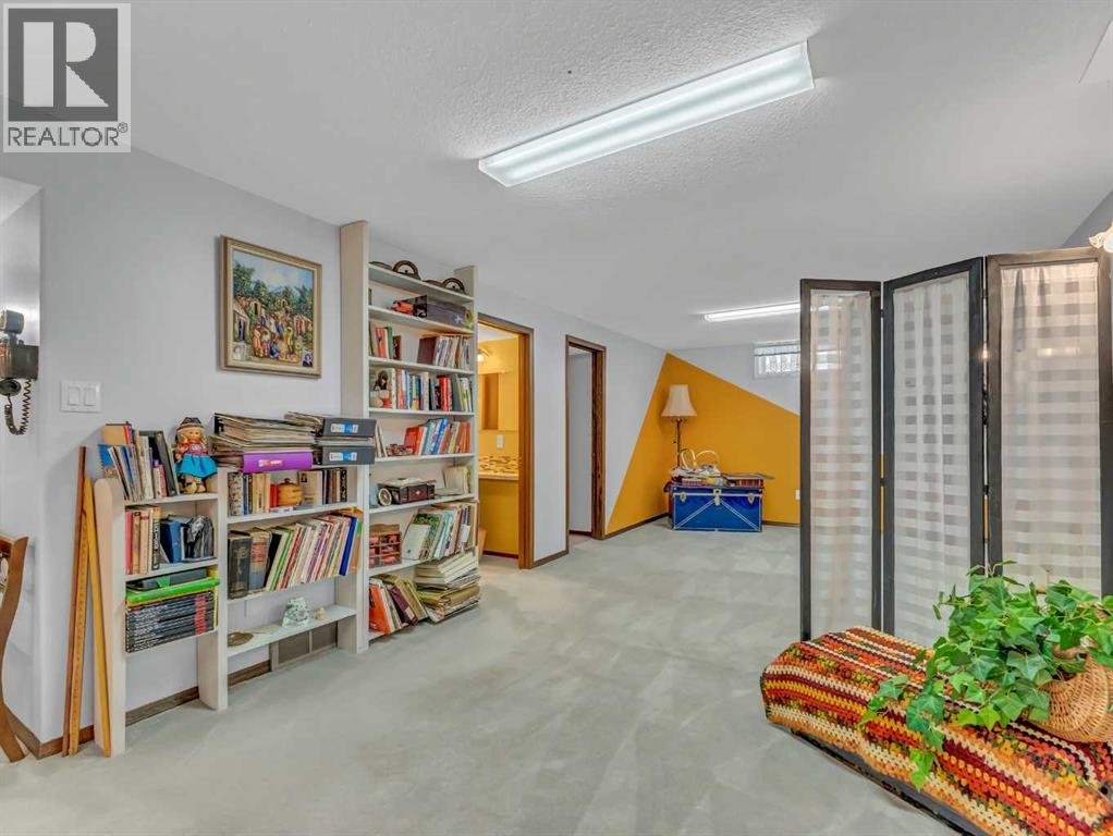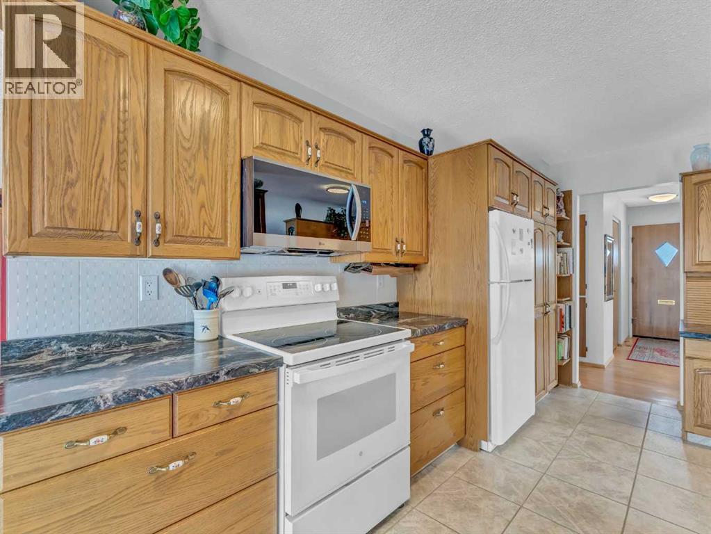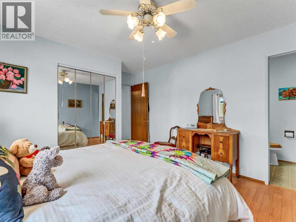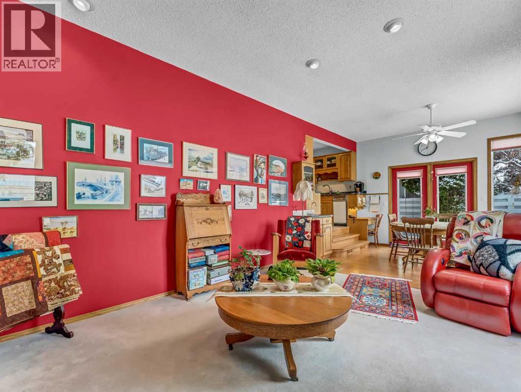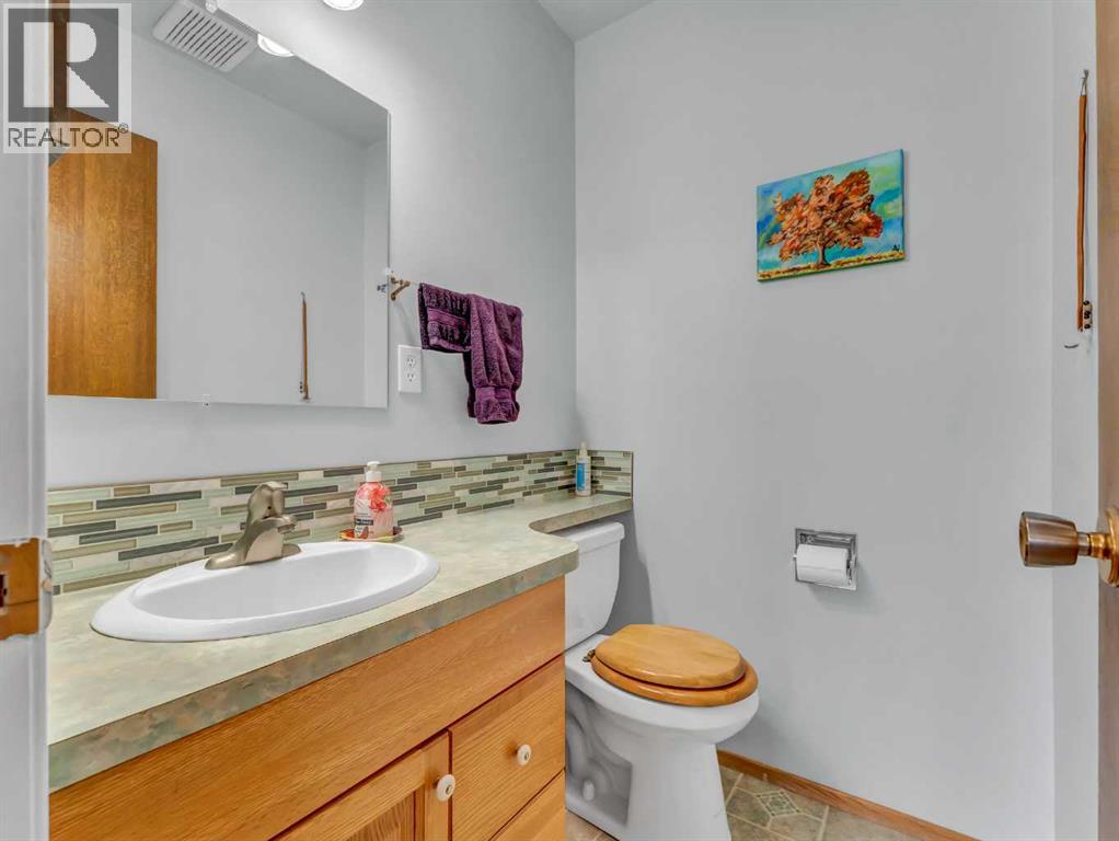 Spacious, updated, and perfectly located! This impressive 1,517 sq. ft. bungalow in Crestwood sits directly across from the Stampede Grounds and coulees, offering fantastic views and a location that’s hard to beat. The bright main floor is filled with natural light and features updated vinyl windows throughout. A generous living room flows into the dining area and kitchen, where you’ll find newer appliances and updated countertops. Just off the kitchen is a large, versatile family room with space for formal dining, highlighted by a cozy gas fireplace, built-in shelving, and a beautiful brick feature wall—perfect for relaxing or entertaining.The main level includes three bedrooms, including a primary suite with a 2-piece ensuite, along with a 3-piece main bathroom. Downstairs offers even more space with a large rec room, laundry and utility area with plenty of storage, plus an additional room with a closet that works perfectly as a den, office, or hobby space. Outside, enjoy the lovely backyard and the convenience of a spacious double detached garage. A well-kept, nicely updated home in a prime location—this Crestwood bungalow offers space, comfort, and value all in one! (id:51989)