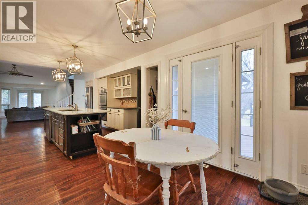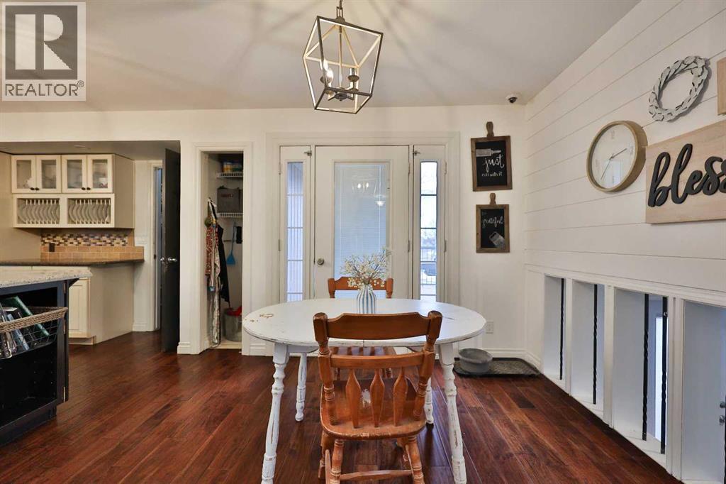 Tucked away on an extremely quiet street in the heart of Magrath, this massive family home offers an incredible blend of space, privacy, and charm, all while being located in a beautiful area close to rolling hills, green space, a creek, and so much beautiful nature that give it a peaceful, acreage-like feel! Sitting on over a third of an acre and surrounded by amazing neighbours, this property boasts stunning curb appeal with its timeless brick exterior, cedar shake roof, spacious yard, and mature trees, along with the convenience of a double attached garage. Inside, you’ll find numerous updates throughout the years including beautiful hardwood floors across the main living areas, granite countertops, fresh paint throughout, and several newer appliances including a brand new dishwasher, PLUS a massive laundry room featuring two sets of new washers and dryers to accommodate a busy household. The chef’s dream kitchen offers an abundance of cabinetry, expansive counter space, a huge island perfect for gathering, and a good-sized pantry, while both an eat-in dining area and a formal dining space provide flexibility for everyday living and entertaining! With seven bedrooms and four and a half bathrooms, including a massive ensuite with a jetted tub in the primary, this home is ideal for large families or those looking to accommodate in-laws or multigenerational living. The primary suite is truly an oasis - situated in its own private wing with space for a king-sized bed, a huge walk-in closet, and a cozy natural gas fireplace. Additional character shines throughout with shiplap accents, crown moulding, and wooden indoor shutters instead of traditional window blinds. Four separate family/living rooms with 2 having wood-burning fireplaces and even an exterior wood-burning fireplace ensure there is space for everyone to relax and unwind during the cold winter months. The fully developed walk-out basement and three decks expand your living space outdoors, making it easy to enjoy the serene setting and mature surroundings! With its prime location, incredible square footage, thoughtful updates, and rare combination of privacy and proximity to nature, this one-of-a-kind property truly has it all — call your REALTOR® today and get your showing booked right away! (id:51989)