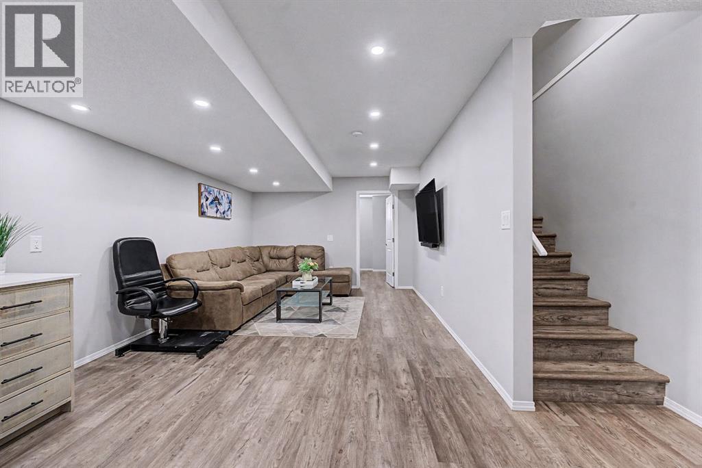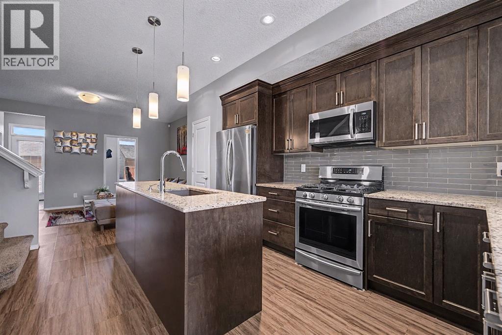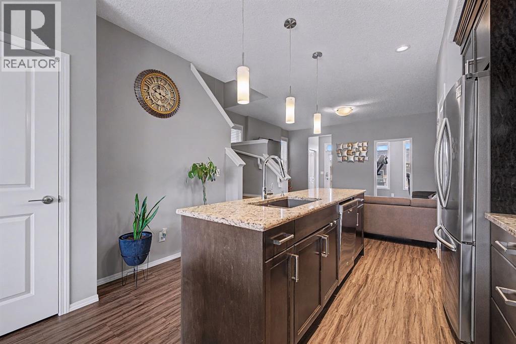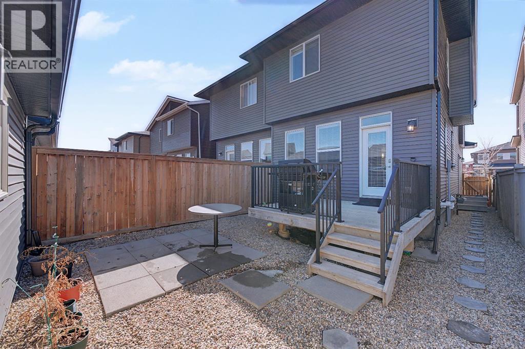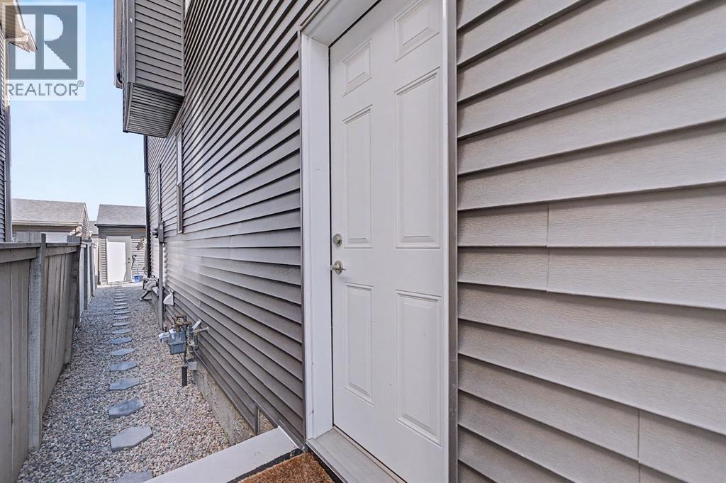 OPEN HOUSE | Sat & Sun (April 25 & 26) | 1pm - 4pm | Welcome to this beautifully designed 2-storey half duplex built by Morrison Homes in 2017, located in the growing and vibrant community of Cornerstone in NE Calgary. This home offers a perfect blend of modern finishes, functional layout, and added versatility—ideal for families or investors alike.Step inside to an inviting open-concept main floor, greeted by a welcoming foyer and a bright dining area framed by three large windows that flood the space with natural sunlight. The main level is finished with luxury vinyl plank flooring, adding both durability and a modern touch throughout. The kitchen is both stylish and practical, featuring a large island, breakfast bar, granite countertops, stainless steel appliances, a gas stove/oven, and rich mocha-coloured cabinetry that beautifully complements the space. The main floor also offers a spacious living area with an electric fireplace, a home office, a 2-piece bathroom, and a mudroom for added convenience.Upstairs, you’ll find a thoughtfully designed layout with three bedrooms and a dedicated laundry room. The primary bedroom, located on the south end of the home, is a bright and spacious retreat complete with large windows, a walk-in closet, and a 5-piece ensuite featuring dual sinks. Down the hall, a versatile nook area provides the perfect space for a home office, study, or flex area to suit your needs. Two additional bedrooms are complemented by a 4-piece bathroom with shared access, making it functional for families.The fully developed basement (approximately 638 sq. ft.) offers incredible additional living space and income potential, featuring a separate entrance, a stylish wet bar with quartz countertops and white backsplash, a 4-piece bathroom, a bedroom, storage, and a recreation area ideal for family entertainment or movie nights.Step outside to your private fenced backyard, designed for low maintenance and enjoyment. The space includes a 10x10 deck, pe rfect for summer barbecues, morning coffee, or relaxing evenings, along with a double detached garage with convenient alleyway access.Located in the amenity-rich community of Cornerstone, residents enjoy close proximity to Highstreet (Chalo! FreshCo, Shoppers Drug Mart), parks, playgrounds, and a new Regional Park. You’re also just 5–10 minutes from major destinations including CrossIron Mills, Costco, SkyPointe Landing, Cardel Rec Centre, and YYC Airport, with quick access to Stoney Trail and Country Hills Blvd for easy commuting. Future community growth includes a planned Major Activity Centre (MAC), multiple school sites, and new transit stations, making this an excellent opportunity in a rapidly developing area.This is a fantastic opportunity to own a modern, move-in-ready home with income potential in one of Calgary’s fastest-growing communities. (id:51989)