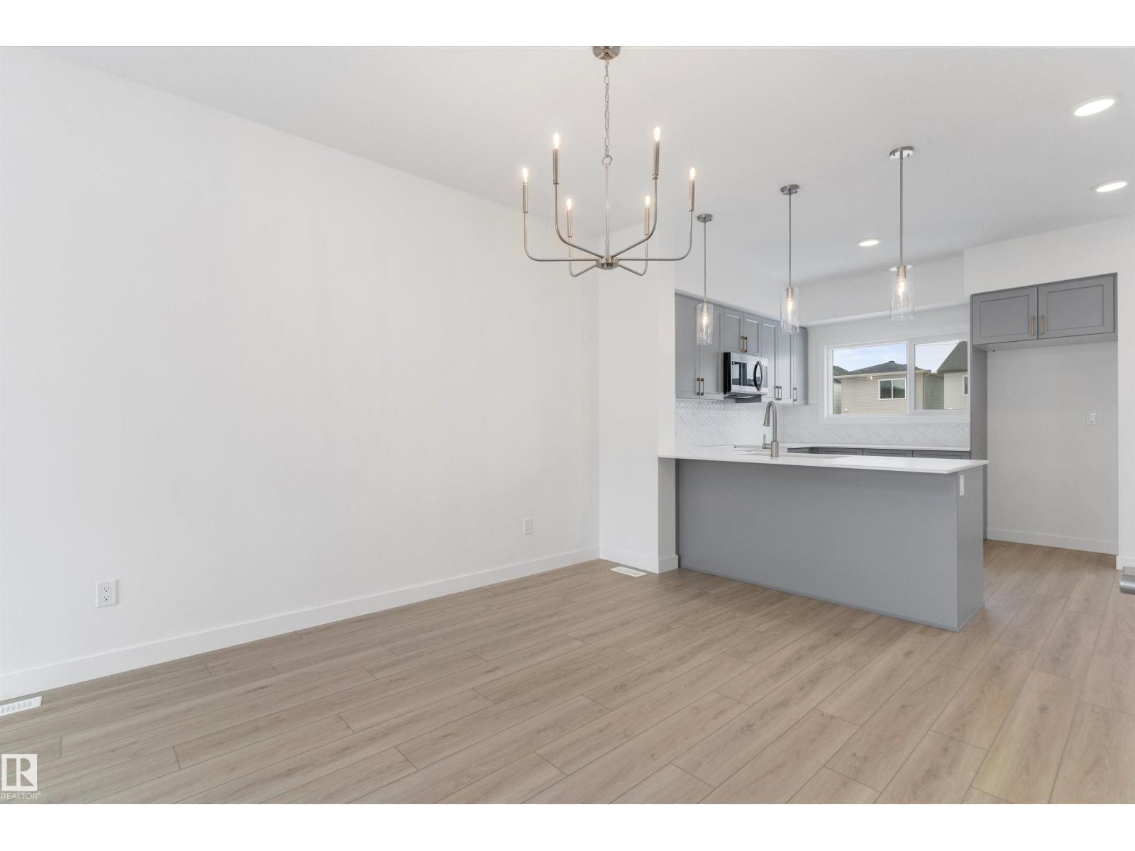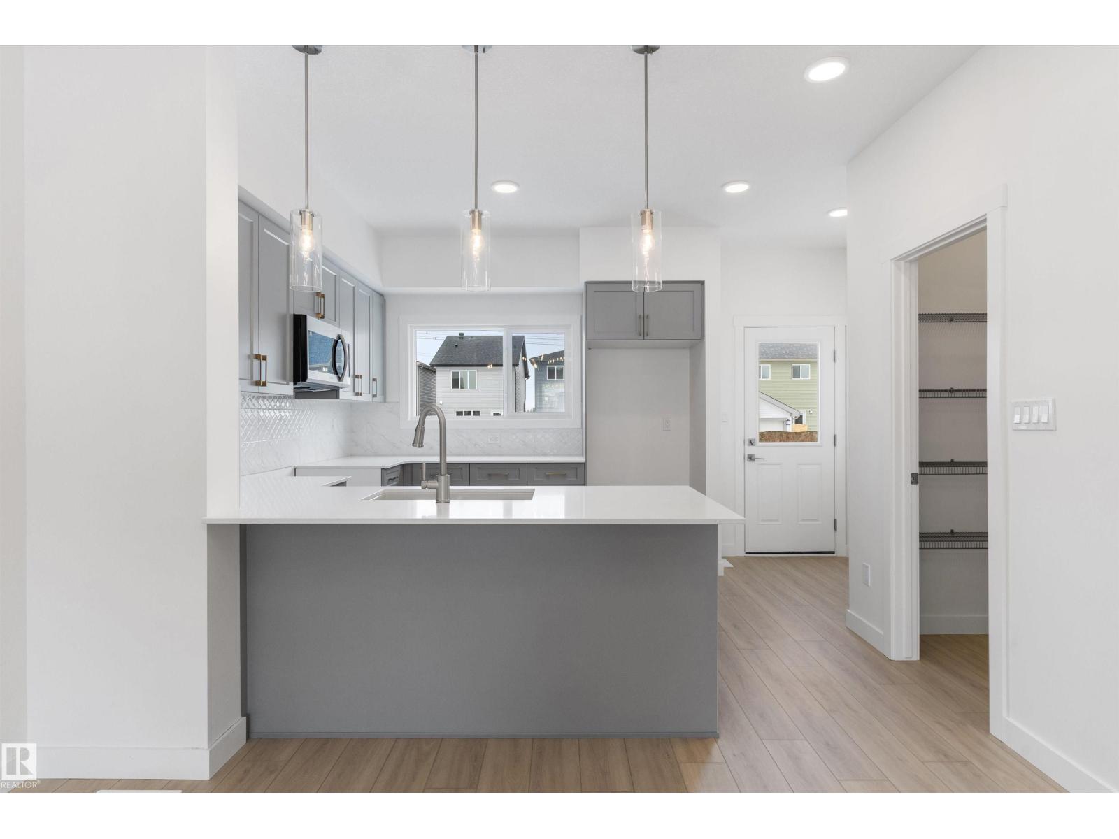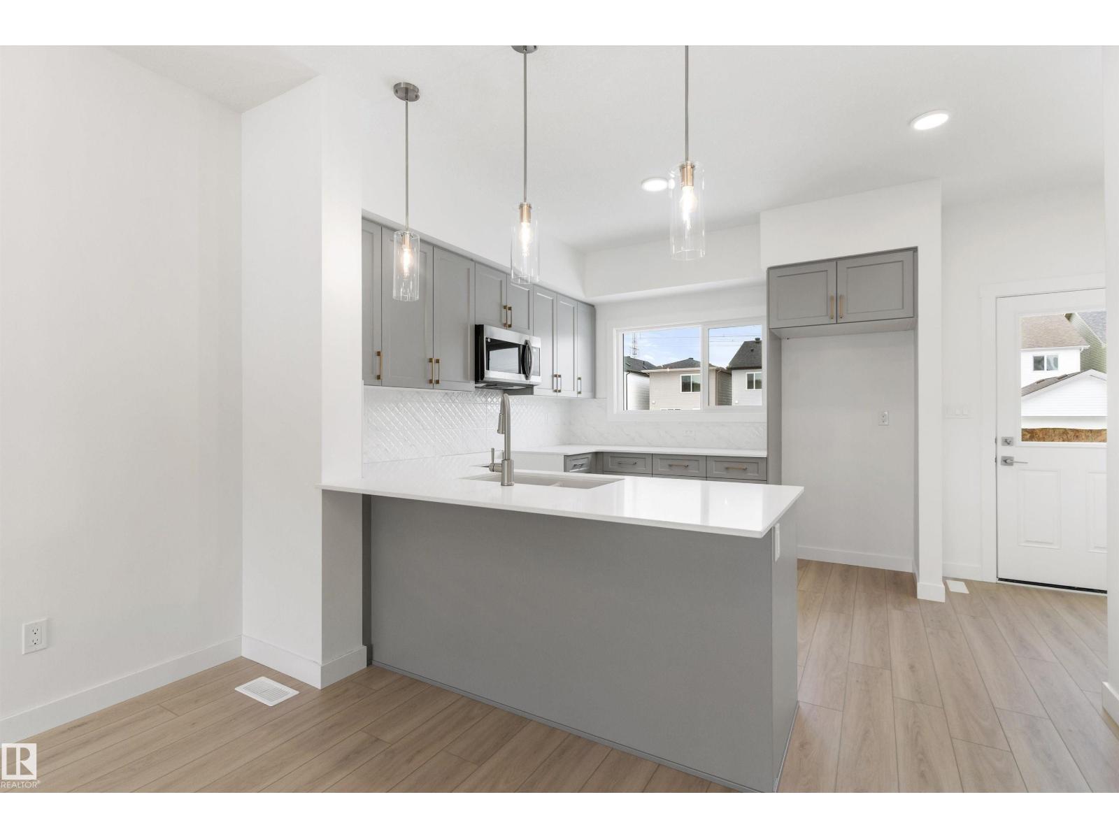 Built by Sterling Homes, this bright, laned home in The Uplands at Riverview blends comfort, charm, and smart design in a nature-filled community with walking trails. Triple-pane windows fill the front living room with natural light, creating a welcoming space to relax or host. The U-shaped kitchen features quartz countertops, peninsula seating, upgraded cabinetry, and a backyard-facing window—perfect for keeping an eye on kids or enjoying peaceful views while cooking. The dining area sits beside large rear windows, with a convenient half bath near the back entry. Upstairs, the primary suite offers a walk-in closet and a 3-piece ensuite, plus two bedrooms, a full bath, and upper-floor laundry. Luxury vinyl plank flooring, side entry, backyard with parking pad, and basement rough-ins add future flexibility. (id:51989)