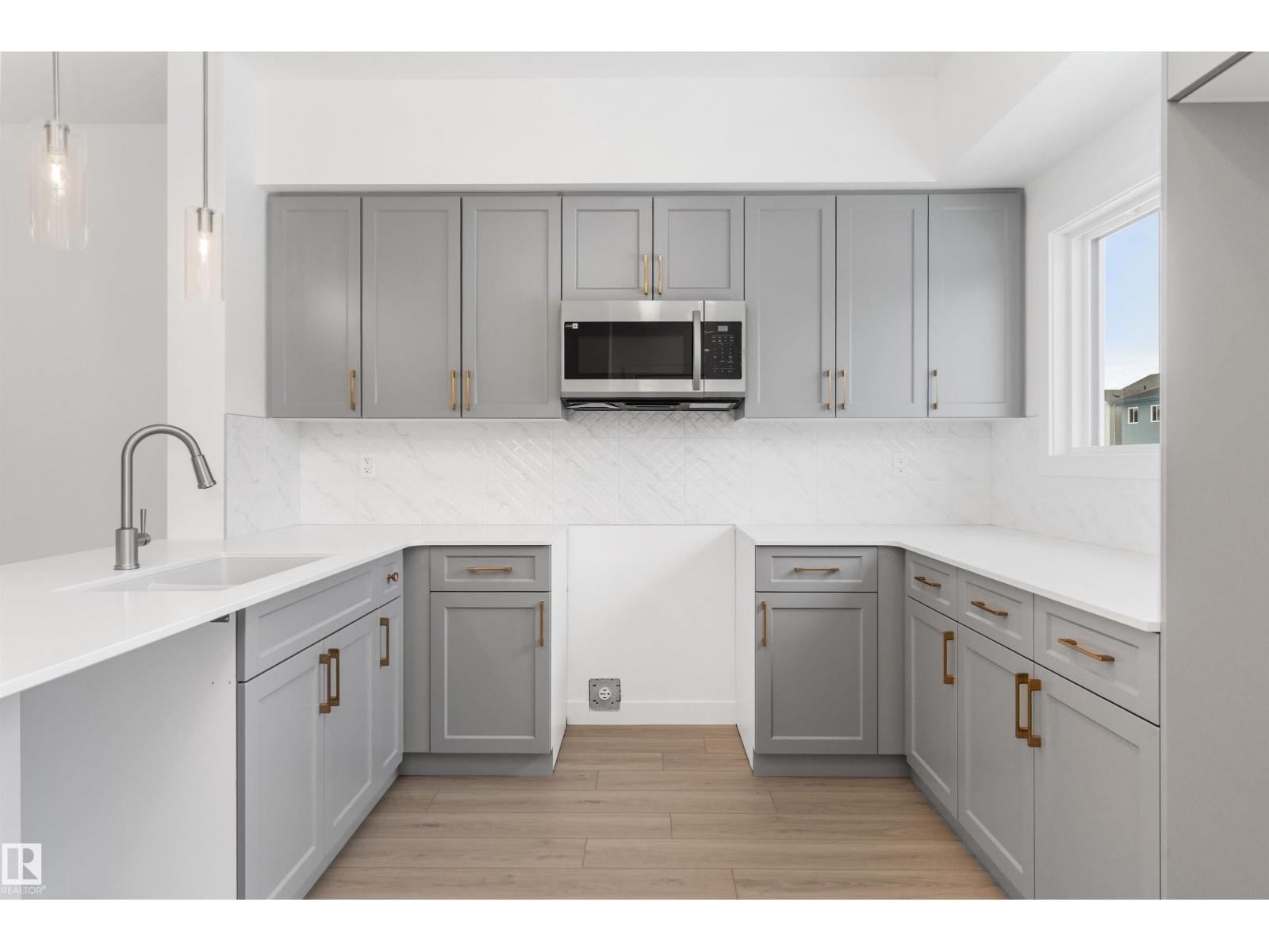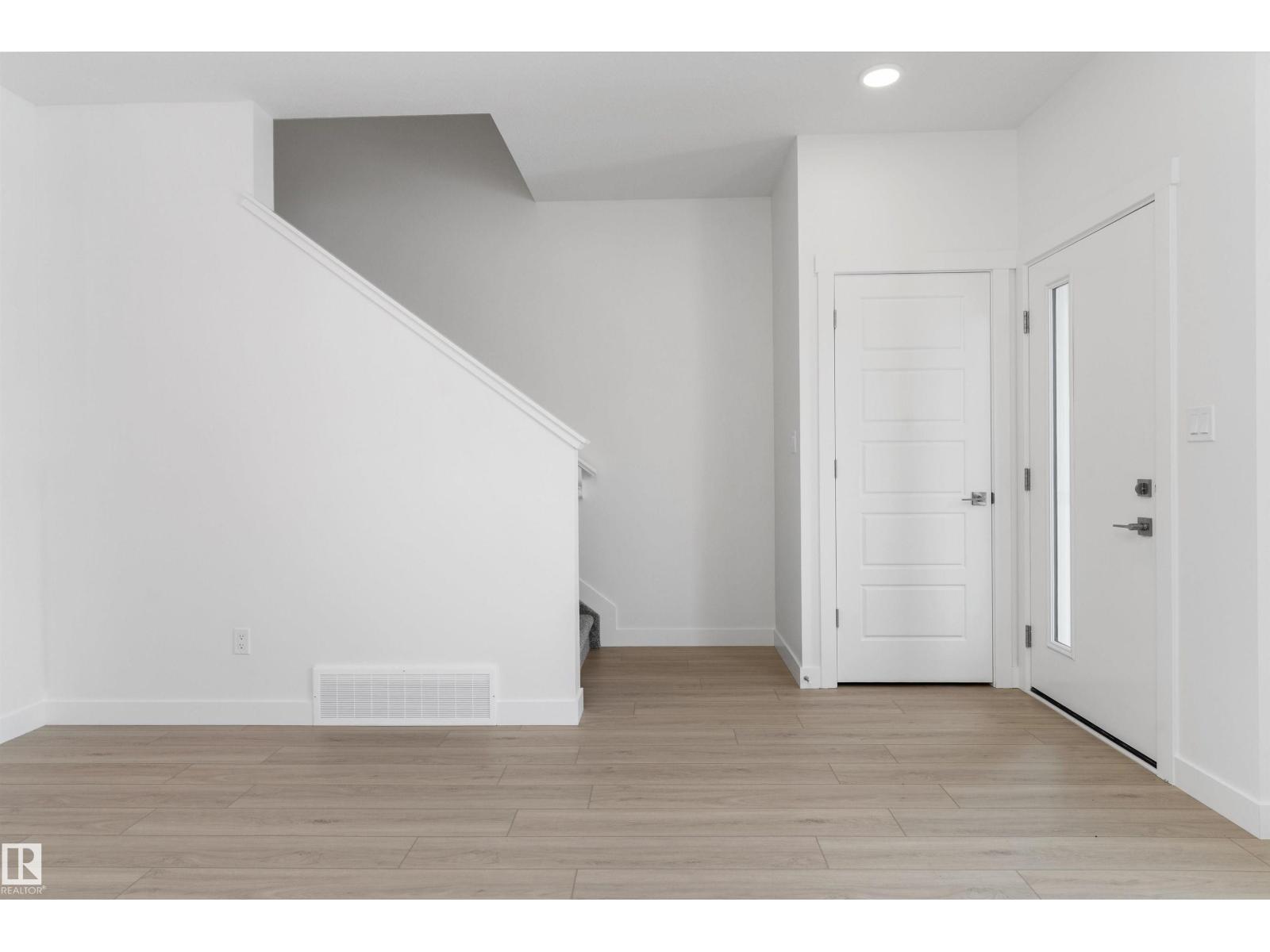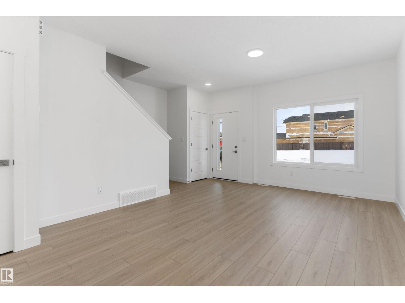 Built by Sterling Homes, this bright, laned home in The Uplands at Riverview blends comfort, charm, and smart design in a nature-filled community with walking trails. Triple-pane windows fill the front living room with natural light, creating a welcoming space to relax or host. The U-shaped kitchen features quartz countertops, peninsula seating, upgraded cabinetry, and a backyard-facing window—perfect for keeping an eye on kids or enjoying peaceful views while cooking. The dining area sits beside large rear windows, with a convenient half bath near the back entry. Upstairs, the primary suite offers a walk-in closet and a 3-piece ensuite, plus two bedrooms, a full bath, and upper-floor laundry. Luxury vinyl plank flooring, side entry, backyard with parking pad, and basement rough-ins add future flexibility. (id:51989)