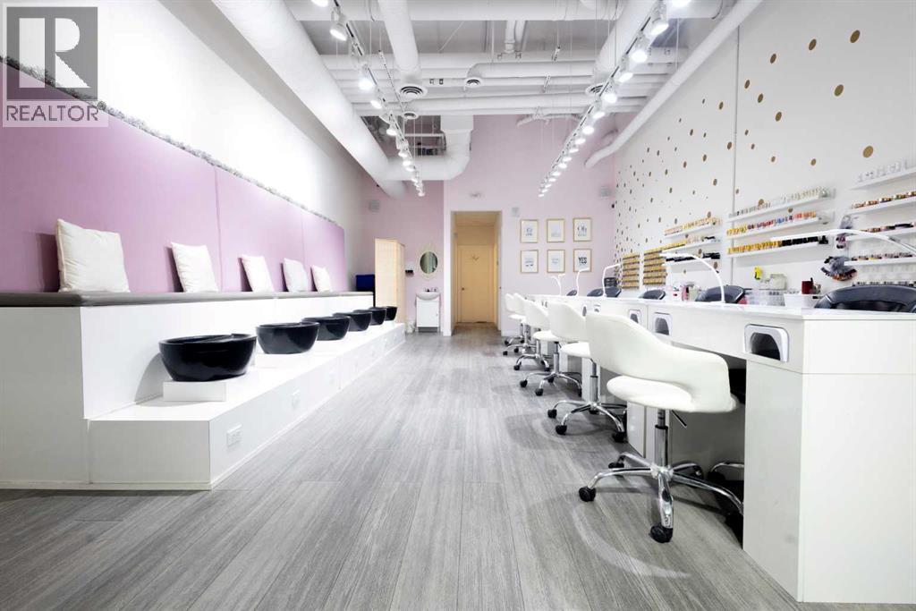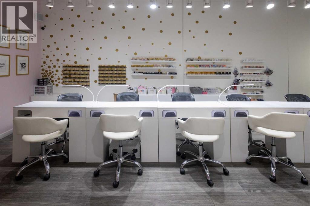 Exceptional opportunity to acquire a fully built-out, turnkey Nail Salon & Spa in a prime Calgary location. This stunning, modern salon has been designed and finished to an exceptionally high standard, offering an immediate income-generating operation for the right buyer with zero build-out costs.The main floor commercial space with high traffic adjoining businesses benifits this salon which features 6 professional manicure stations along a sleek top bench with individual LED lamps and UV nail dryers, plus a dedicated pedicure spa row with 6 luxury black basin stations set against gorgeous pink upholstered seating — creating an elevated, worthy client experience that drives repeat business and referrals.The salon also includes a private treatment room currently equipped for lashes, waxing, and esthetic services, opening multiple additional revenue streams beyond nail care. An extensive wall-mounted gel polish display with 100+ colours is available, a fully stocked back-of-house prep and storage area, in-suite washer/dryer, and a clean accessible washroom complete this exceptional package.Stylish gold polka-dot accent walls, gallery art, industrial-chic exposed ceilings, and warm track lighting create an atmosphere that clients love — and keep coming back to.Key Features:·Primemain floor street frontage location in SW Calgary — high foot traffic, premium demographic·6 manicure stations + 6 pedicure spa basins·Private treatment room (lashes, waxing, facials & more)·100+ gel polish shades displayed are available·In-suite washer/dryer·Accessible washroom·Full back-of-house storage & prep·Turnkey — walk in and operate from Day 1·Priced to sell at well below build out cost — makes this a outstanding valueAt the listed price this is an incredibly compelling deal. A build-out of this quality in Calgary would cost several times this asking price — the new owner is acquiring not just a business, but a fully finished, revenue-ready space at a fr action of replacement cost. Opportunities like this do not last. Contact the listing agents today for full details, lease information, and to arrange a private showing.All inquiries subject to NDA. Do not approach staff or clients directly. (id:51989)