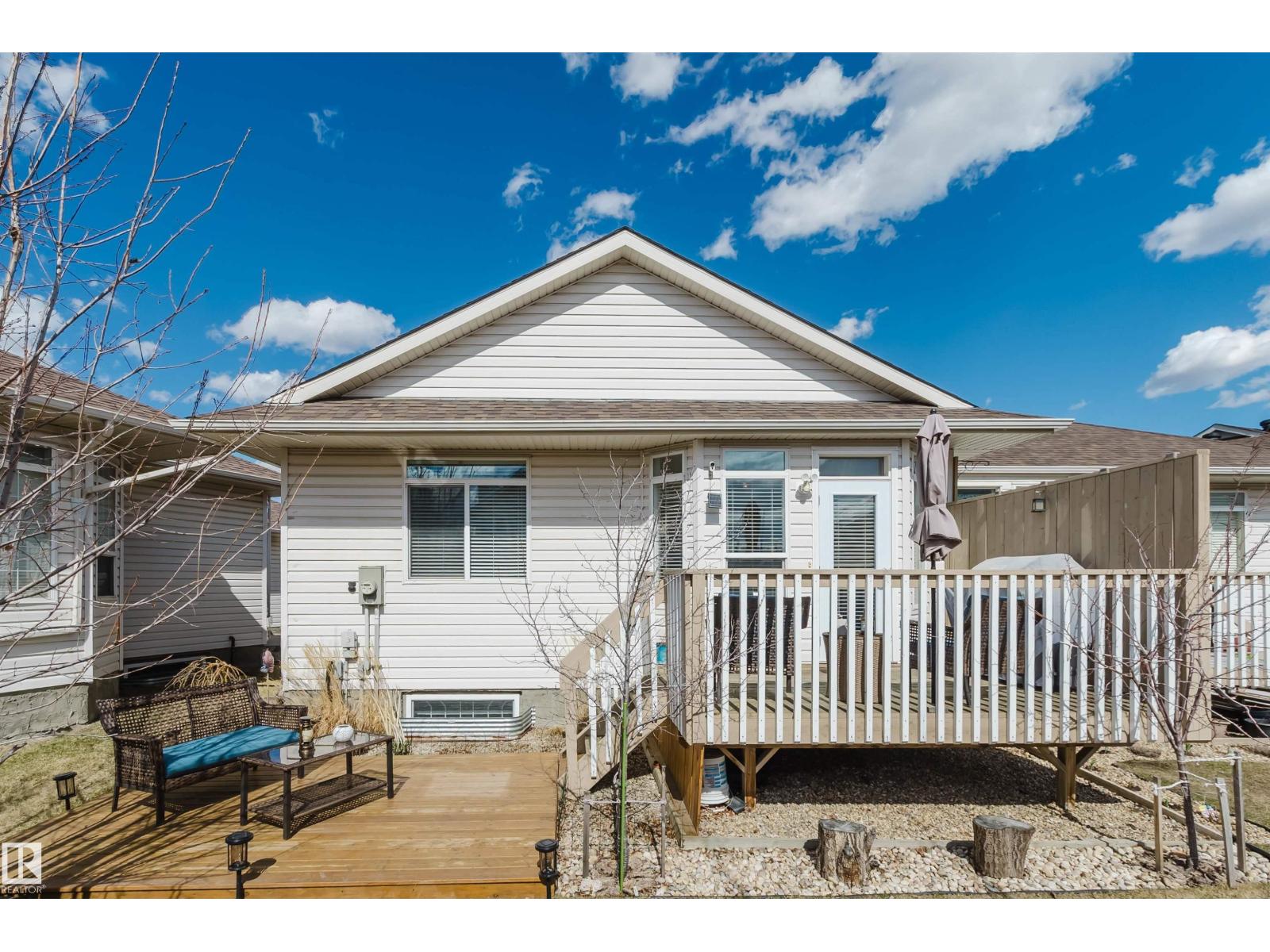 RARE FIND – Homes like this don’t come up often! Pride of ownership is evident in this immaculately maintained & upgraded half-duplex bungalow in Jackson Villas. This air-conditioned, clean & bright home is exceptionally well kept by the original owners, offering 1,113 sqft, 2+1 bedrooms, 3 full baths & an oversized dbl attached garage. Main floor features 9’ ceilings, crown moldings, large windows w/ ample natural light,& a south-facing backyard—one of the best locations in the complex. The kitchen offers white cabinets, Corian countertops, and new stainless steel appliances. Living rm features hardwood floors & opens to a large south-facing deck & lower patio. Primary bdrm has a 4-pc ensuite & a lrg W/I closet. F/F bsmt offers a family rm, rec/gym area, a bdrm, 3pc bath & large storage rm Beautifully landscaped with flowers and fruit trees. New HWT(2024). Well-managed, pet-friendly complex (board approval) w/ lawn care & snow removal to your door!Prime location near golf, parks, trails, & transit. (id:51989)