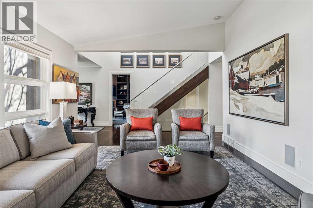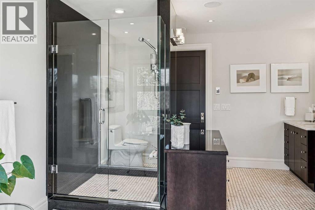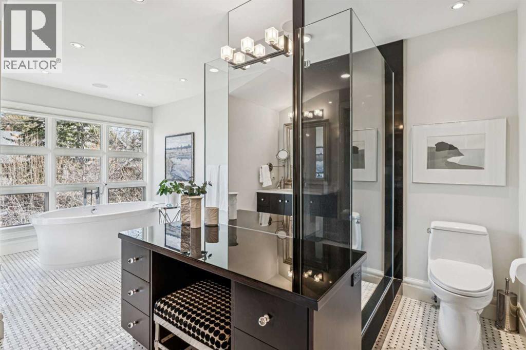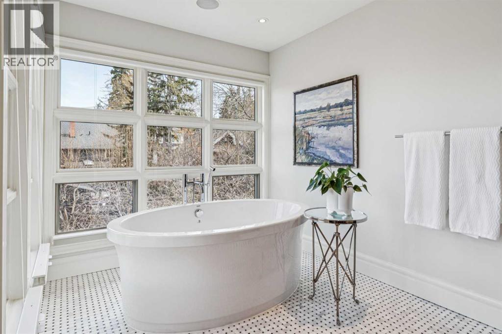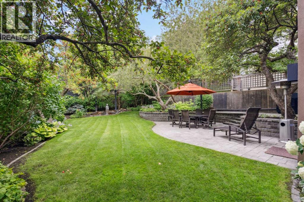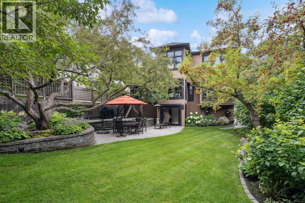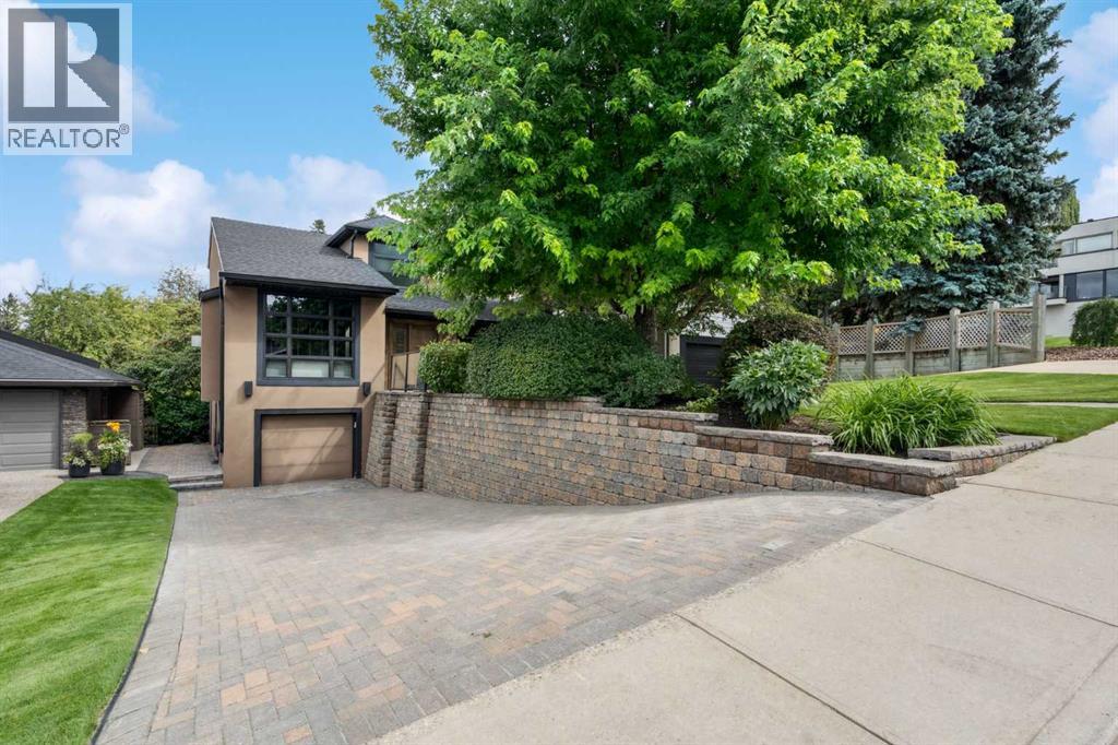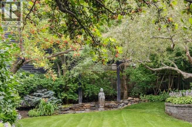 Discretely built into a Mount Royal hillside, this property is a jewel for those seeking a distinguished residence in an established neighbourhood.. The home was rebuilt to the highest standard using best quality finishing materials. . Interior design by Paul Levoie showcases outstanding features including Hidden Cabinetry, Distinctive Lighting, Interesting Fireplace Surrounds and Vaulted Ceilings.. The décor is a curated blend of Contemporary and Traditional elements with a design is Enduring and Timeless. . . The Main Level presents a 2 Story Foyer with a Gorgeous Chandelier, Open Plan Living/Dining Area, Kitchen with Top of Line Appliances, Sun filled Breakfast Nook over viewing the Garden, Full Bath and 2 Bedrooms. .( one bedroom is used as an office). A Cozy Den with Gas Fireplace complete this level. . .The Upper Level is devoted to the Primary Oasis, offering a spacious Bedroom, 2 Walk-In Closets and the most Amazing Ensuite: A true Luxury Spa with In-Floor Heat, Twin Vanities, Dressing Table, Glass Shower and a Free Standing Soaker Tub with Views that embrace Tree Tops and the City Center. . . The Lower Walk-Out Level provides great extra spaces: Access to the attached Heated Tandem 2 Car Garage, Media Room with Fitness Area, 4th Bedroom, Full Bath and Laundry. .Heated Floors are controlled by 4 separate zones. . .and lastly: Glass Doors that give way to the most Beautifully Landscaped Private Retreat: a Garden accentuated with Mature Deciduous and Fruit Trees, a wide assortment of Perennial Plantings, Patio, Lush Lawn and a Pond! . Buddha resides in the pond and hopes to remain in his Peaceful Retreat. . Lightly lived in, this notable home is a MOVE IN READY OPPORTUNITY. (id:51989)