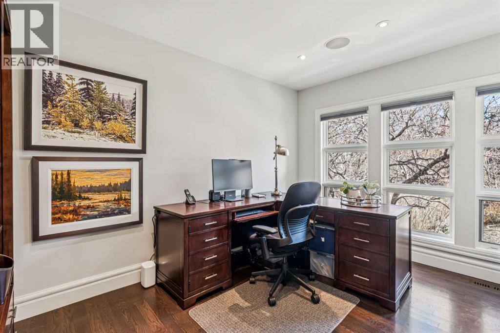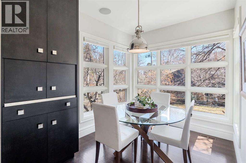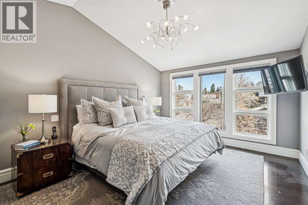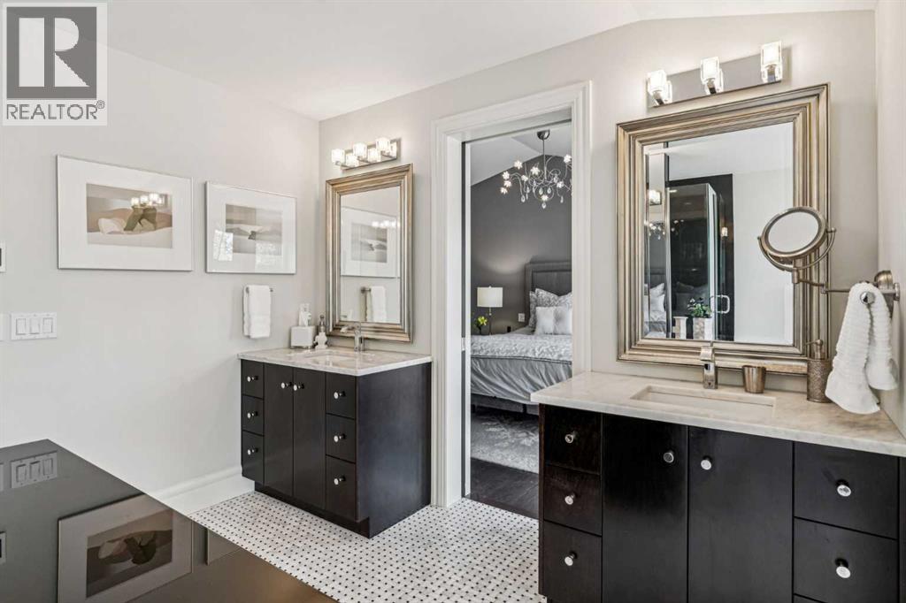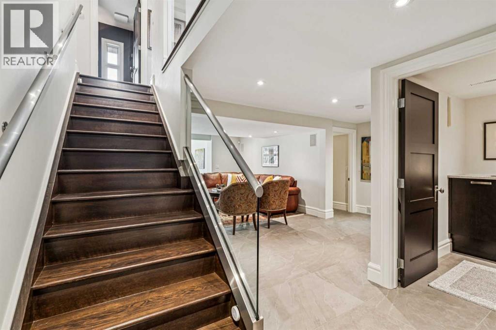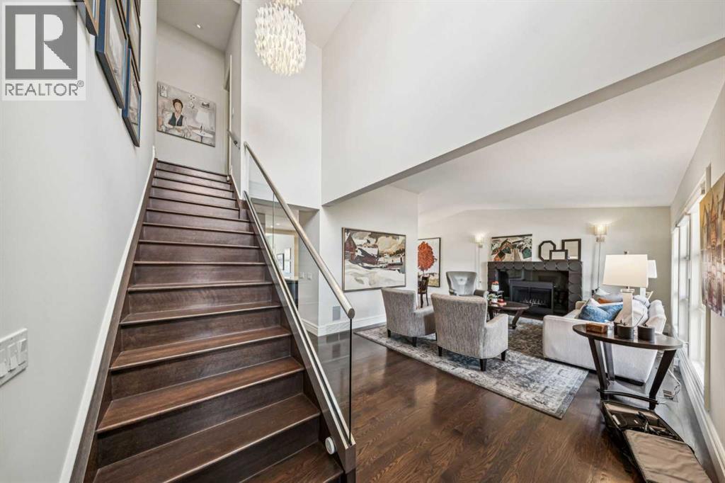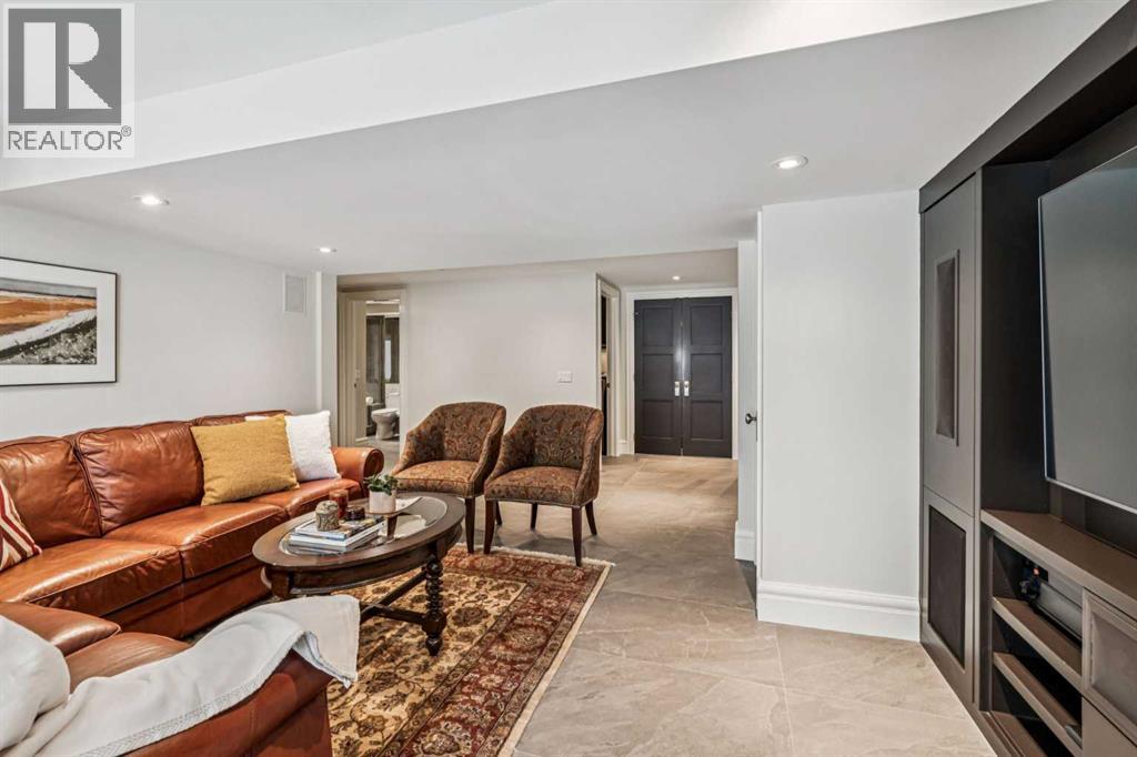 Discretely built into a Mount Royal hillside, this property is a jewel for those seeking a distinguished residence in an established neighbourhood.. The home was rebuilt to the highest standard using best quality finishing materials. . Interior design by Paul Levoie showcases outstanding features including Hidden Cabinetry, Distinctive Lighting, Interesting Fireplace Surrounds and Vaulted Ceilings.. The décor is a curated blend of Contemporary and Traditional elements with a design is Enduring and Timeless. . . The Main Level presents a 2 Story Foyer with a Gorgeous Chandelier, Open Plan Living/Dining Area, Kitchen with Top of Line Appliances, Sun filled Breakfast Nook over viewing the Garden, Full Bath and 2 Bedrooms. .( one bedroom is used as an office). A Cozy Den with Gas Fireplace complete this level. . .The Upper Level is devoted to the Primary Oasis, offering a spacious Bedroom, 2 Walk-In Closets and the most Amazing Ensuite: A true Luxury Spa with In-Floor Heat, Twin Vanities, Dressing Table, Glass Shower and a Free Standing Soaker Tub with Views that embrace Tree Tops and the City Center. . . The Lower Walk-Out Level provides great extra spaces: Access to the attached Heated Tandem 2 Car Garage, Media Room with Fitness Area, 4th Bedroom, Full Bath and Laundry. .Heated Floors are controlled by 4 separate zones. . .and lastly: Glass Doors that give way to the most Beautifully Landscaped Private Retreat: a Garden accentuated with Mature Deciduous and Fruit Trees, a wide assortment of Perennial Plantings, Patio, Lush Lawn and a Pond! . Buddha resides in the pond and hopes to remain in his Peaceful Retreat. . Lightly lived in, this notable home is a MOVE IN READY OPPORTUNITY. (id:51989)