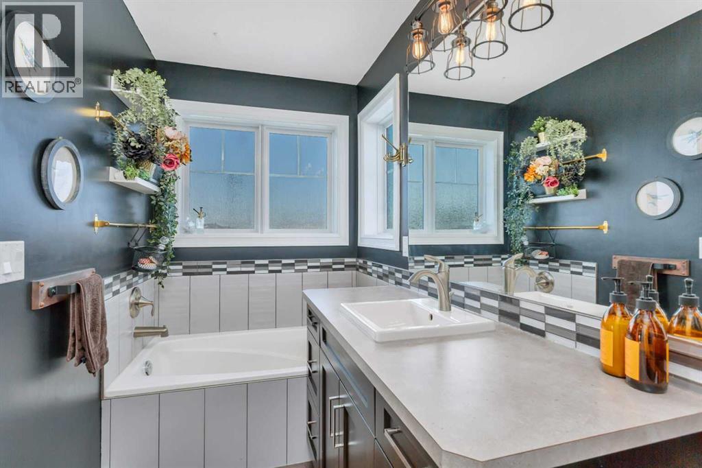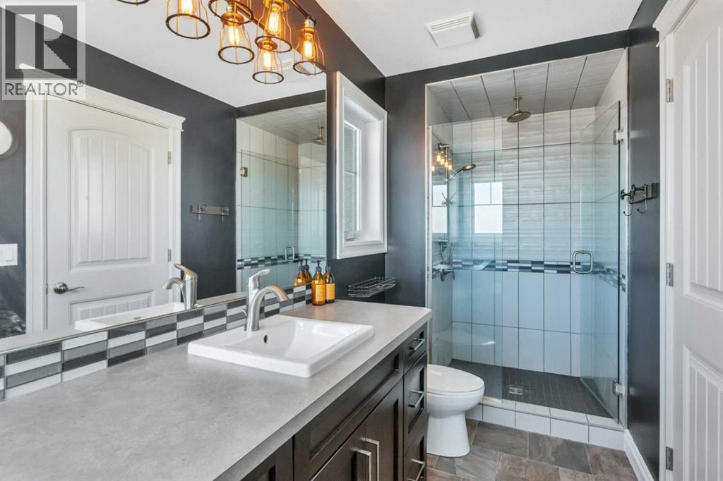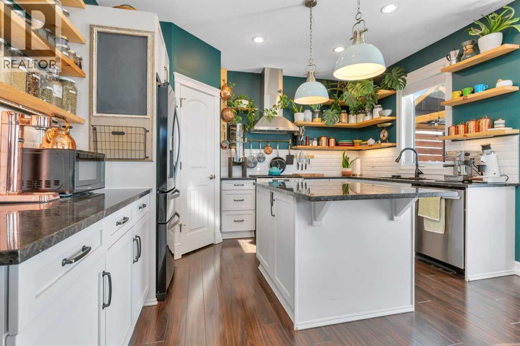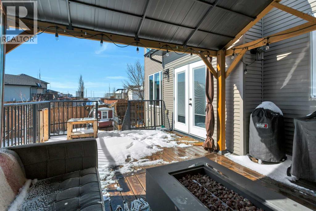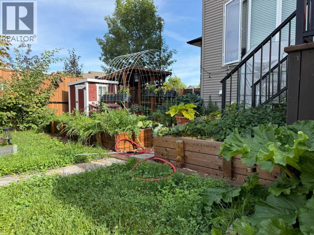 197 Sabre Road delivers with a 2-storey layout, heated garage, central air, and a finished basement with in-floor heat, all set on a 7000 sq ft corner lot minutes to Gasoline Alley and Red Deer. A well-designed 2-storey detached home offering 5 bedrooms, 3.5 bathrooms, and a layout that balances everyday function with standout features. The open concept main floor is ideal for both daily living and entertaining, anchored by a spacious kitchen with granite countertops, a island, and seamless flow into the dining and living areas. A gas fireplace adds warmth and comfort, while central air keeps the home cool through the summer months. A dedicated main floor office provides flexibility for remote work or study, and main floor laundry adds convenience. The double attached heated garage is perfect for Alberta winters. Upstairs, the primary bedroom is a true retreat with two walk-in closets and a private ensuite featuring a soaker tub and separate shower. Additional bedrooms offer space for family or guests. The fully developed basement includes in-floor heating, creating a comfortable extension of the home for recreation, movie nights, or hosting. Set on a 7000 sq ft corner lot, the outdoor space is built for lifestyle and utility. Enjoy the back deck with gazebo, fire table, and gas line for BBQs. The yard also features RV parking, raised garden beds, a greenhouse, chicken coop, and a storage shed. Solar panels contribute to energy efficiency. (id:51989)