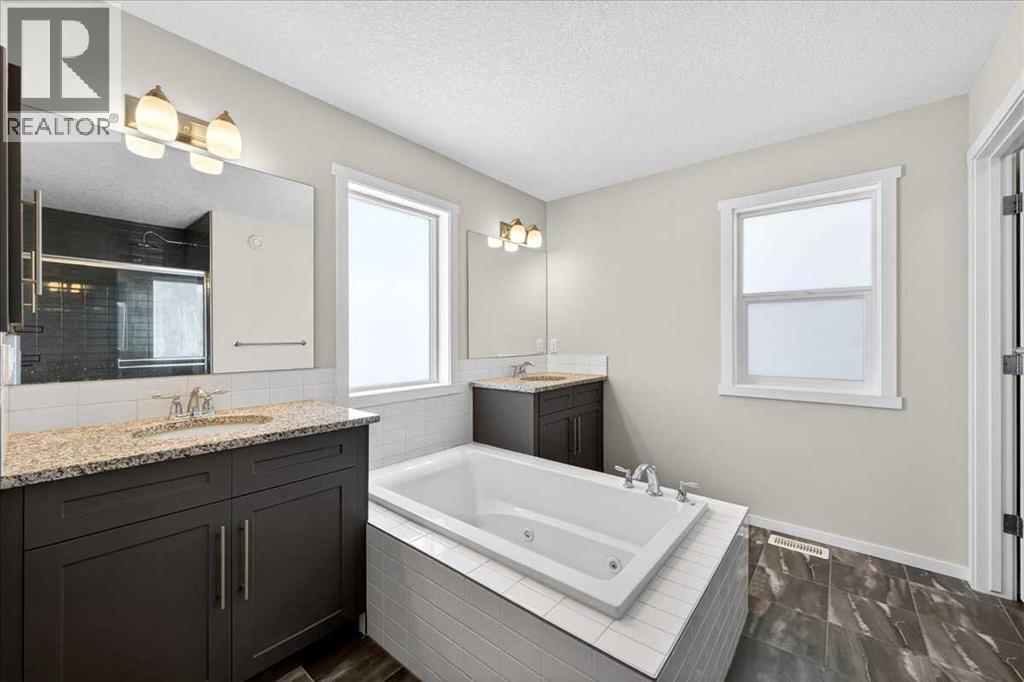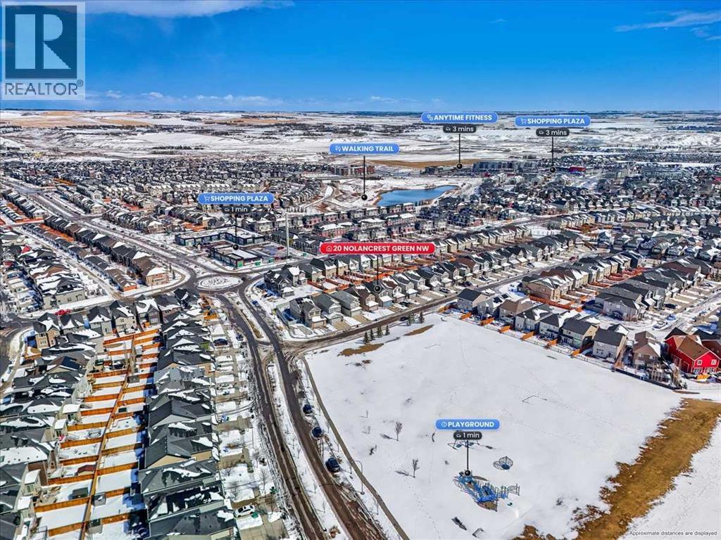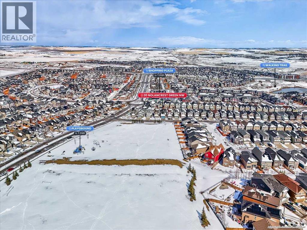 Welcome to 20 Nolancrest Green NW—ideally located on a quiet street overlooking green space with a playground and soccer field, perfect for families and those who value privacy and scenic views. The main floor features built-in cubbies that add both style and practical everyday storage, a bright den/office with French doors - an ideal work-from-home setup, rich hardwood flooring and a spacious open-concept layout that seamlessly blends the living room, dining area, and kitchen. The inviting living room is anchored by a cozy gas fireplace, creating the perfect space to relax or entertain. You’ll also appreciate the 9-foot ceilings, knockdown finish, and abundant lighting throughout. The kitchen is both functional and inviting, complete with a large island and breakfast bar, granite countertops, an undermount sink, a convenient pantry, and a full set of newer appliances (2024), including fridge, dishwasher, and hood fan. Sliding doors lead to an oversized backyard—perfect for outdoor living and entertaining. Upstairs, you’ll find three generously sized bedrooms, a versatile bonus room (easily convertible into a fourth bedroom), and convenient upper-level laundry with newer washer & dryer (both from 2024). The spacious primary suite includes a walk-in closet and a well-appointed ensuite with a jetted tub, separate shower, and dual sinks. The basement is partially finished and includes a permitted 3-piece bathroom, with plenty of room to develop a recreation area, additional bedroom, or storage space. Enjoy easy access to transportation, schools, shopping, grocery stores and all your daily amenities. This home truly offers comfort, space, and an exceptional location Book your private showing with your favorite agent today! ***SEE VIRTUAL TOUR*** (id:51989)