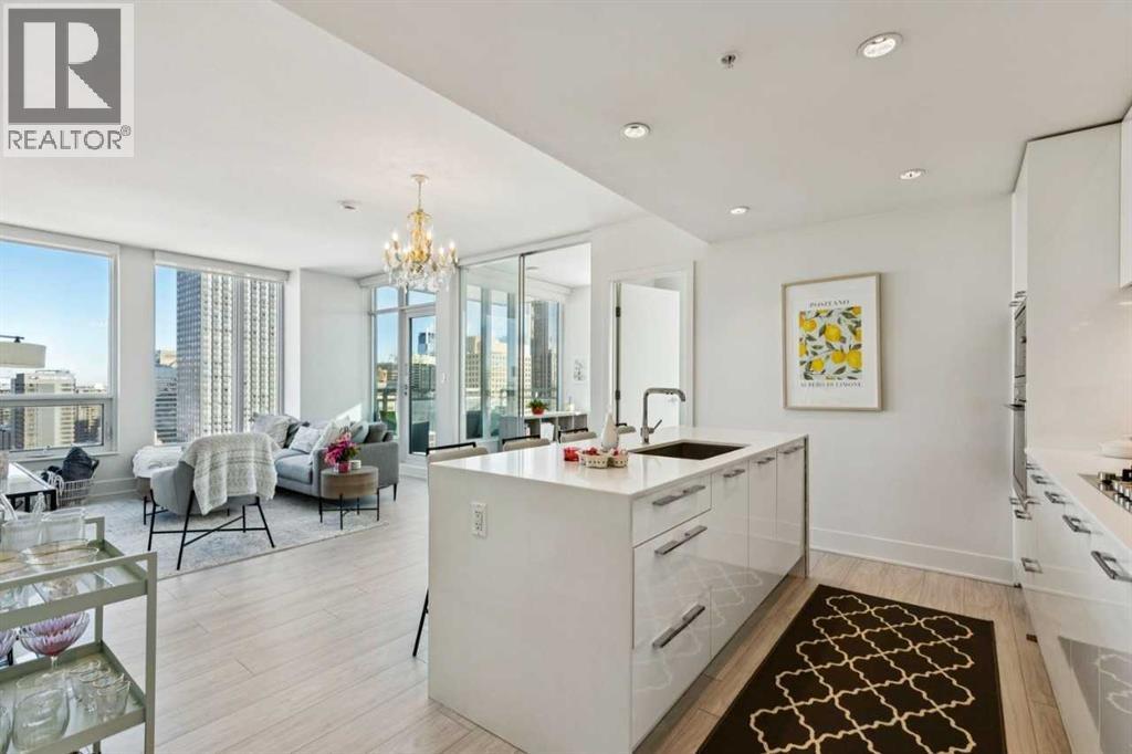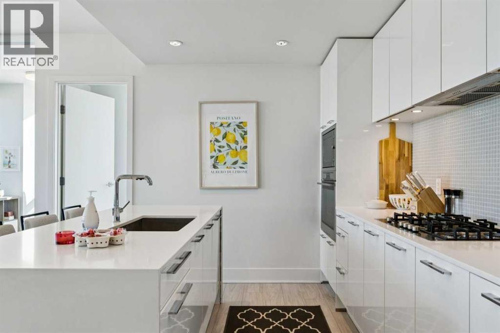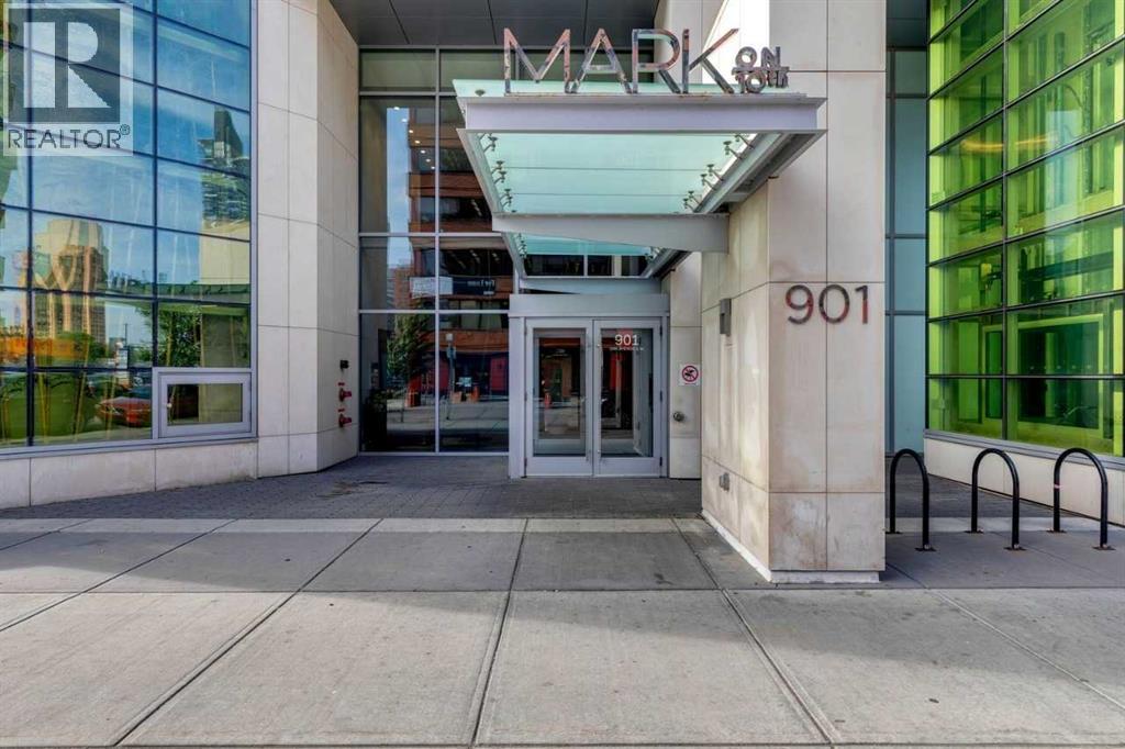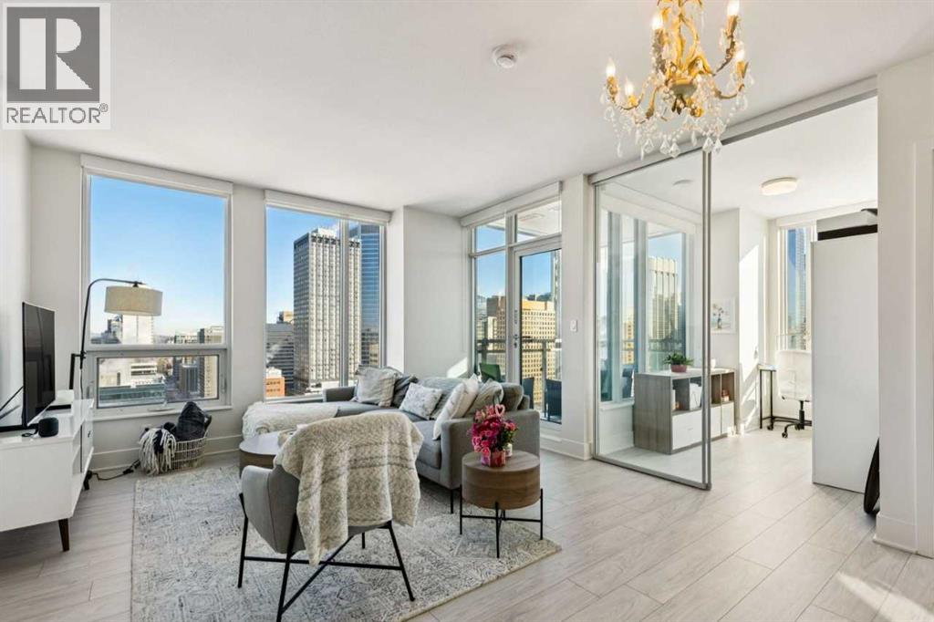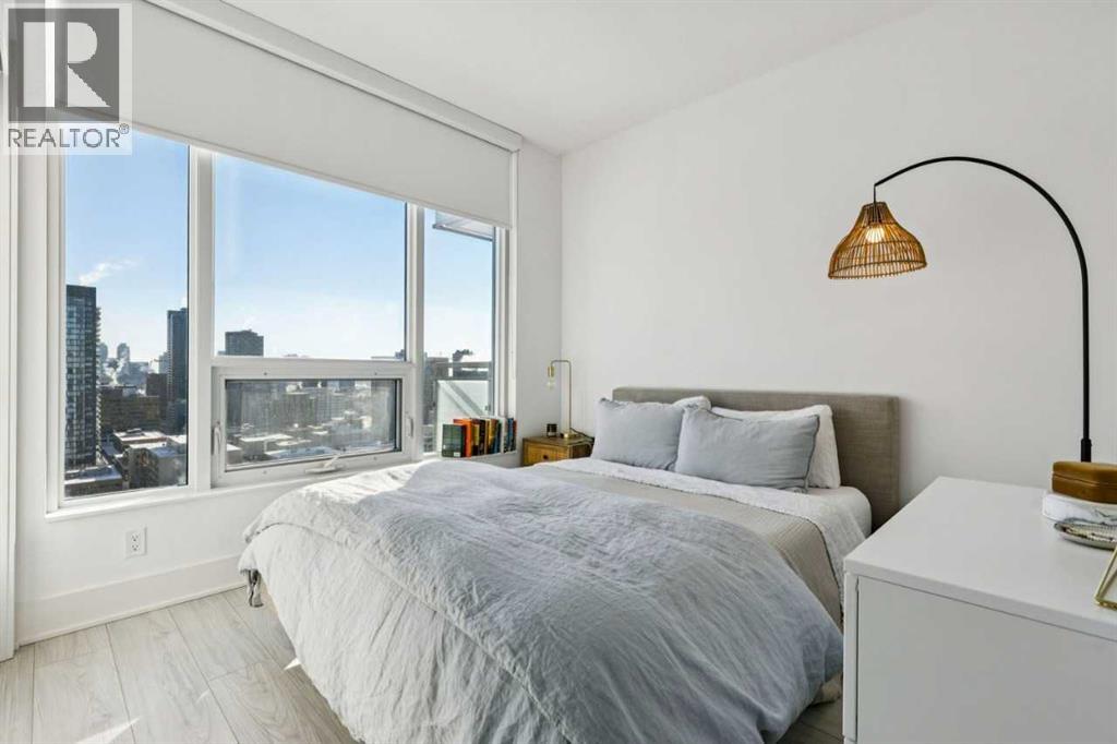 Live, work and play at The Mark on 10th. Perched on the 20th floor, this bright and spacious corner unit offers breathtaking panoramic views of Calgary’s downtown core and the vibrant Beltline. Featuring 2 bedrooms, 2 bathrooms and a private den with sliding glass doors, the thoughtfully designed 909 sq ft layout blends style and function. The contemporary kitchen is appointed with premium German appliances/cabinetry, Kohler fixtures and sleek quartz countertops. A custom walk-in closet, blackout blinds in both bedrooms and a private balcony create a sophisticated retreat above the city.Enjoy luxury amenities including full-time concierge, secure parcel lockers, a stunning 34th-floor rooftop with two-level lounge, hot tub, sauna, steam room and fitness centre, plus a garden terrace and guest suite on the 3rd floor. Includes a rare titled oversized parking stall (approx. 1.5 stalls) and storage locker. Steps to cafés, restaurants, groceries, LRT, 17th Ave and the Bow River pathways. (id:51989)