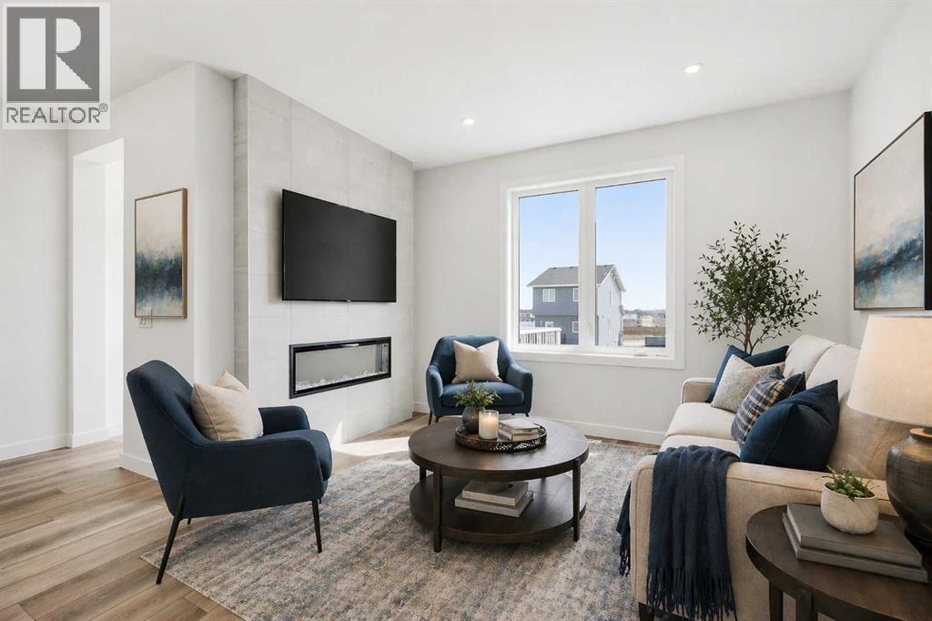 Welcome to Bridgeport in Chestermere, where style, quality, and thoughtful design come together in this beautifully crafted new home with exceptional curb appeal.From the moment you arrive, you’ll notice the inviting exterior and upgraded gel-stained fibreglass front door that sets the tone for what’s inside. Step into a bright and open entryway that flows seamlessly into the main living space, highlighted by 9’ ceilings and extra-wide vinyl plank flooring that carries throughout the main floor.The heart of the home is the stunning kitchen, featuring quartz countertops, full-height cabinetry to the ceiling, a silgranit undermount sink, and a full 5-piece appliance package included by the builder. The space opens effortlessly into the dining and living areas, where you’ll find an upgraded fireplace with a modern tile surround perfect for cozy evenings and entertaining guests.Upstairs, convenience meets comfort with a well-designed layout that includes upper floor laundry. The spacious primary bedroom offers a relaxing retreat, complete with a private ensuite featuring a double vanity. Additional bedrooms provide plenty of room for family or guests.The basement is ready for your finishing touches, offering a functional layout with endless potential to customize to your needs. Step outside to enjoy the rear deck ideal for summer evenings. Take advantage of the garage pad already poured and included in the purchase price.Built by a reputable developer with a proven track record since 1988, this home showcases quality craftsmanship throughout, including triple pane windows and a high-efficiency 2-stage furnace for year-round comfort and energy efficiency. Offering the perfect blend of style, function, and long-term value, this is an opportunity you won’t want to miss in one of Chestermere’s newest communities. (id:51989)