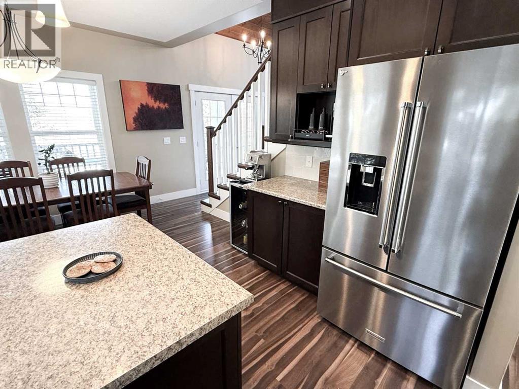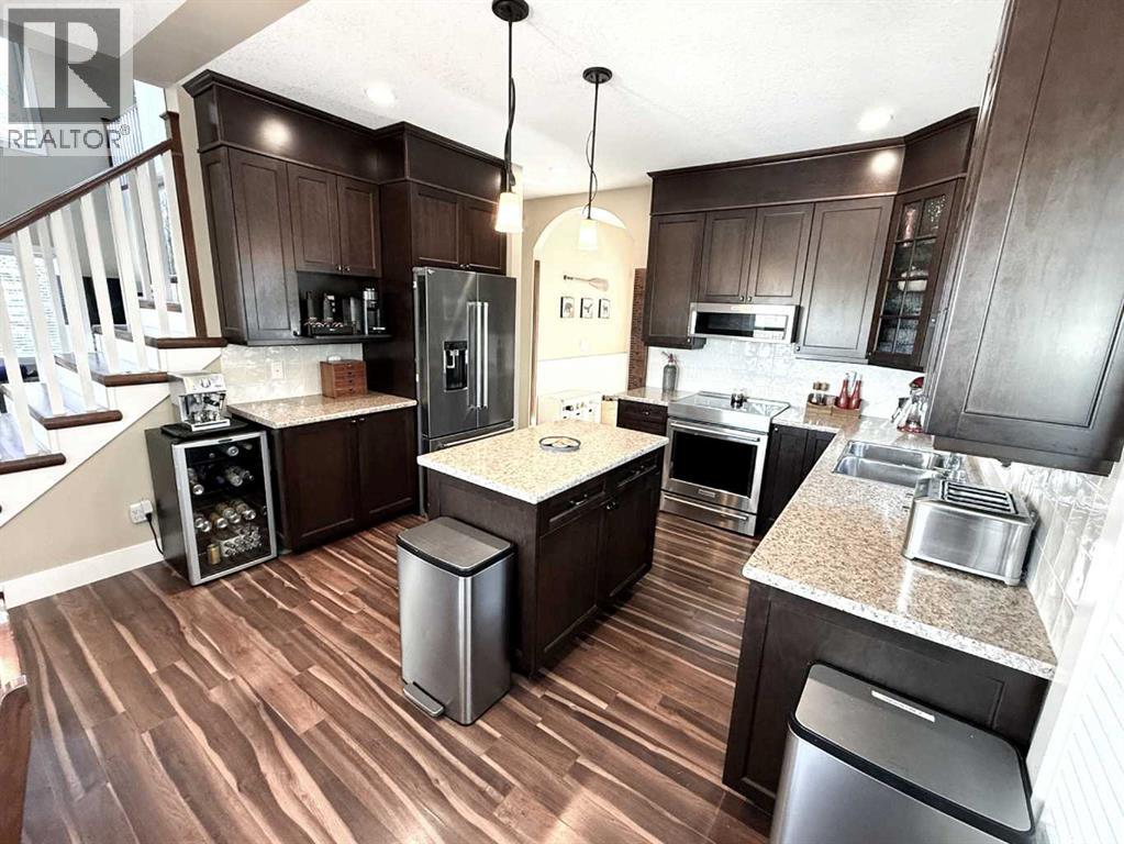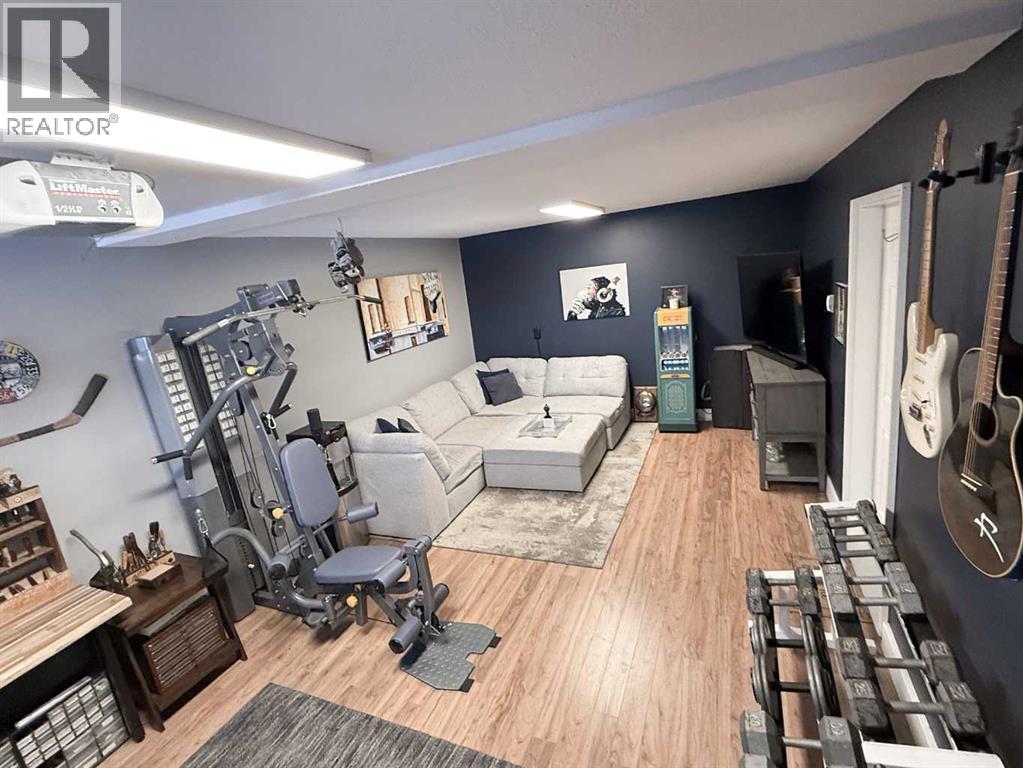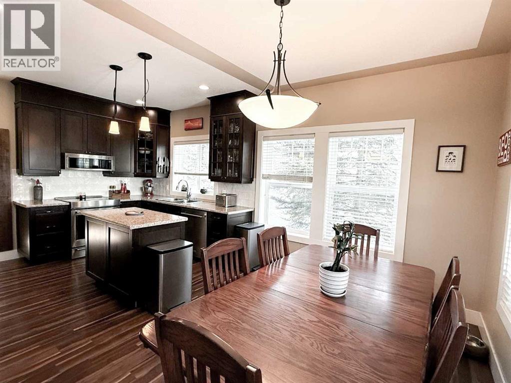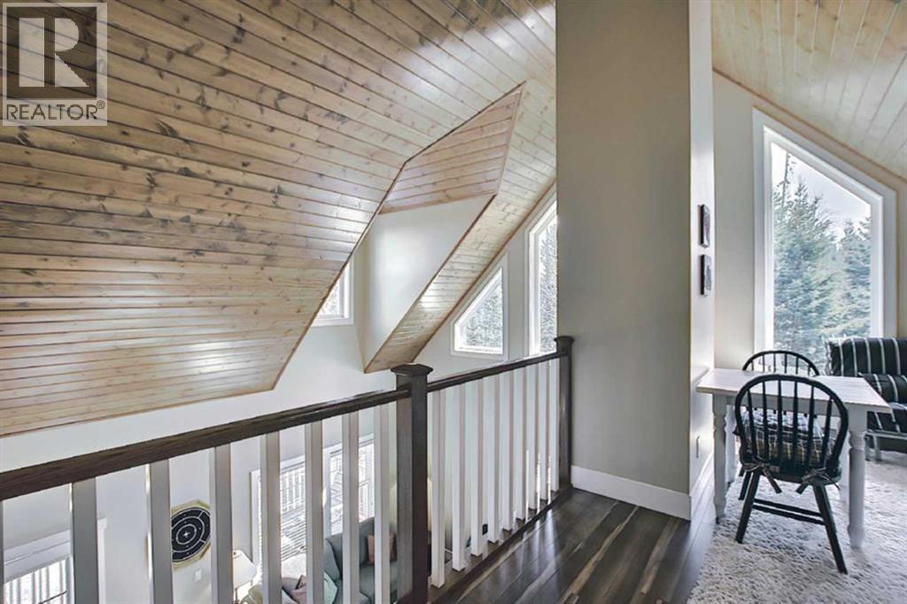 Custom-built mountain home in the exclusive gated community of James River Retreat, surrounded by forest and endless outdoor adventure.Located just 25 minutes northwest of Sundre and under two hours from Calgary, this beautifully maintained property offers privacy, comfort, and year-round recreation in one of Alberta’s most unique private communities. Inside, dramatic vaulted ceilings and expansive windows fill the open living space with natural light while showcasing peaceful forest views. The bright kitchen features a stainless steel induction KitchenAid stove and appliances (still under warranty) and flows seamlessly into the dining and living areas, creating a warm and inviting space for gathering with family and friends. Step outside onto the large covered front deck with a natural gas BBQ hookup, perfect for outdoor cooking and relaxing while taking in the valley and surrounding trees. The main level includes a spacious primary bedroom, full bathroom, and laundry, allowing convenient single-level living. Upstairs, a stunning open loft overlooking the living room leads to two additional bedrooms and another full bathroom. The lower level offers a large guest room and full bath, while the attached garage has been converted into a versatile recreation space currently used as a gym, hobby room, and home theatre. Comfort is exceptional year-round with in-floor heating throughout the home and a heat recovery ventilation system. Outside, enjoy a private backyard fire-pit area surrounded by forest, complete with two custom-built woodsheds. The property also features a detached (natural gas heated) garage with a custom electric lift designed for working on or storing a quad and mower, along with extensive space-saving shelving and storage. High-speed Starlink internet makes working remotely easy, making this property ideal as a full-time home, weekend getaway, or retirement escape. Living in James River Retreat offers private access to the James River for kayaking, fi shing, and swimming, a community pond for skating in winter, and shared amenities including a cook shack, gathering tables, and horseshoe pits perfect for private gatherings and events. Conveniently located 20 minutes from Burntstick Lake and just 15 minutes to the Bearberry Saloon, this remarkable property offers the perfect balance of seclusion and accessibility. A school bus stop at the top of the hill also makes it practical for full-time family living. (id:51989)
