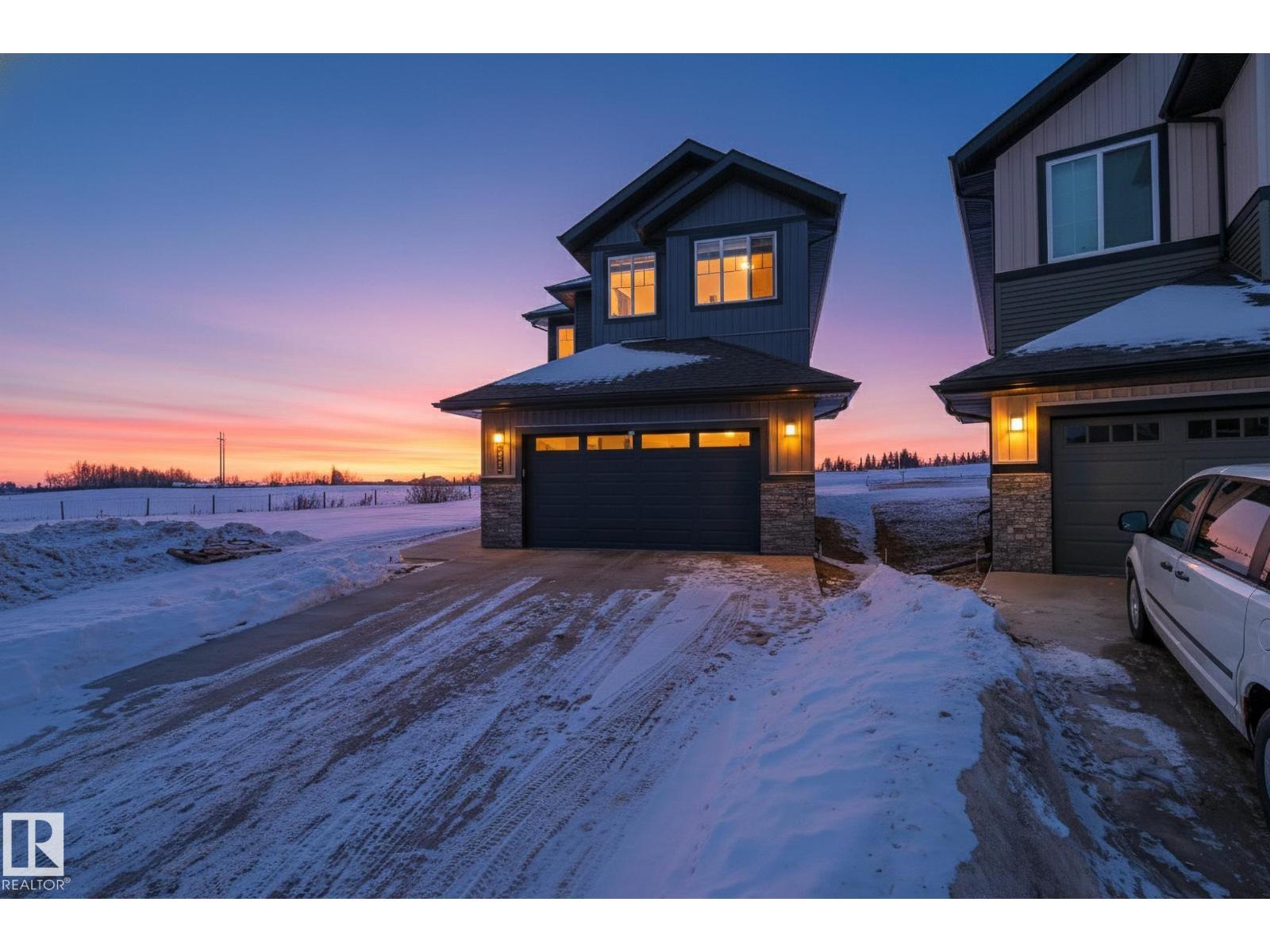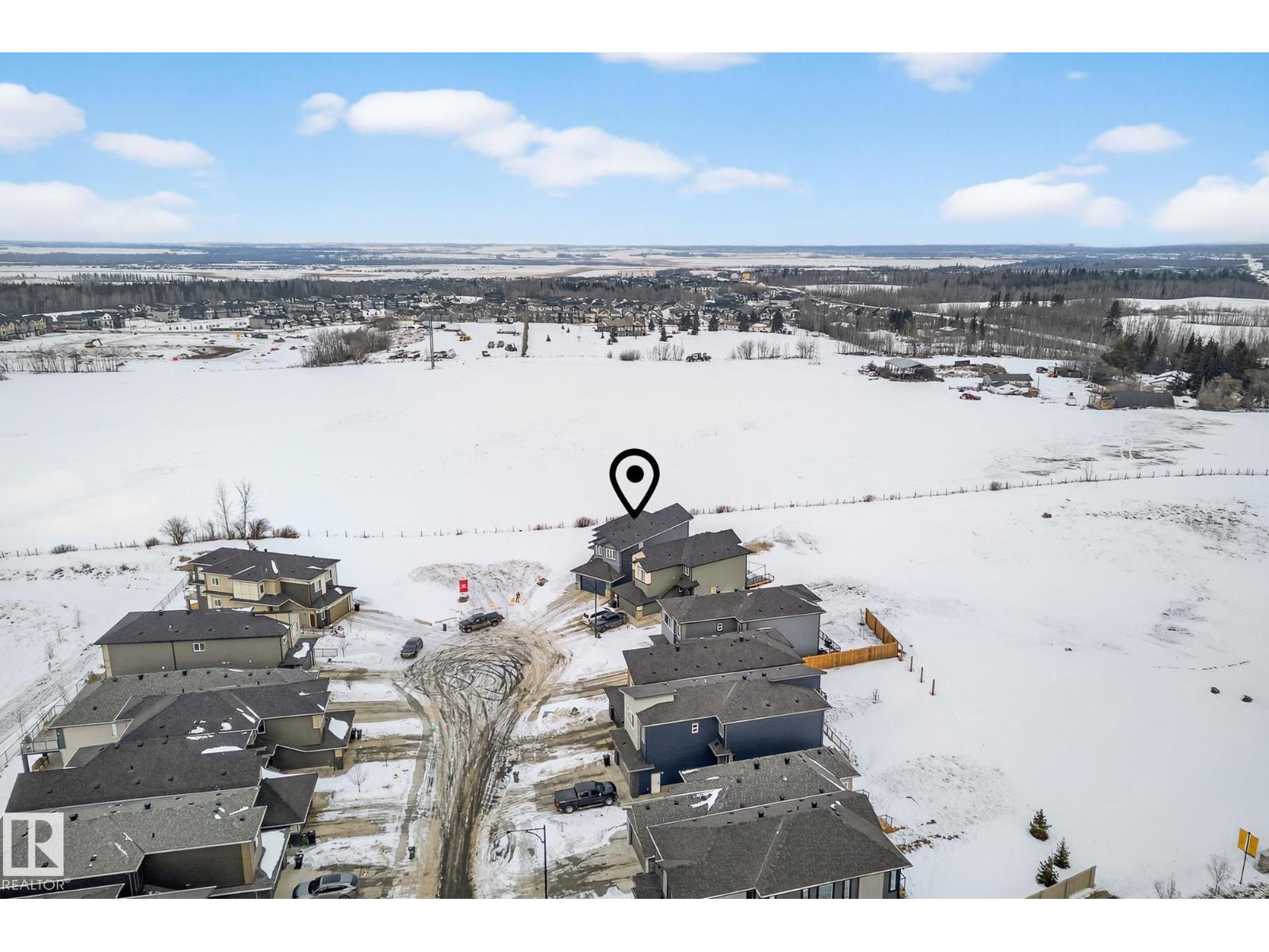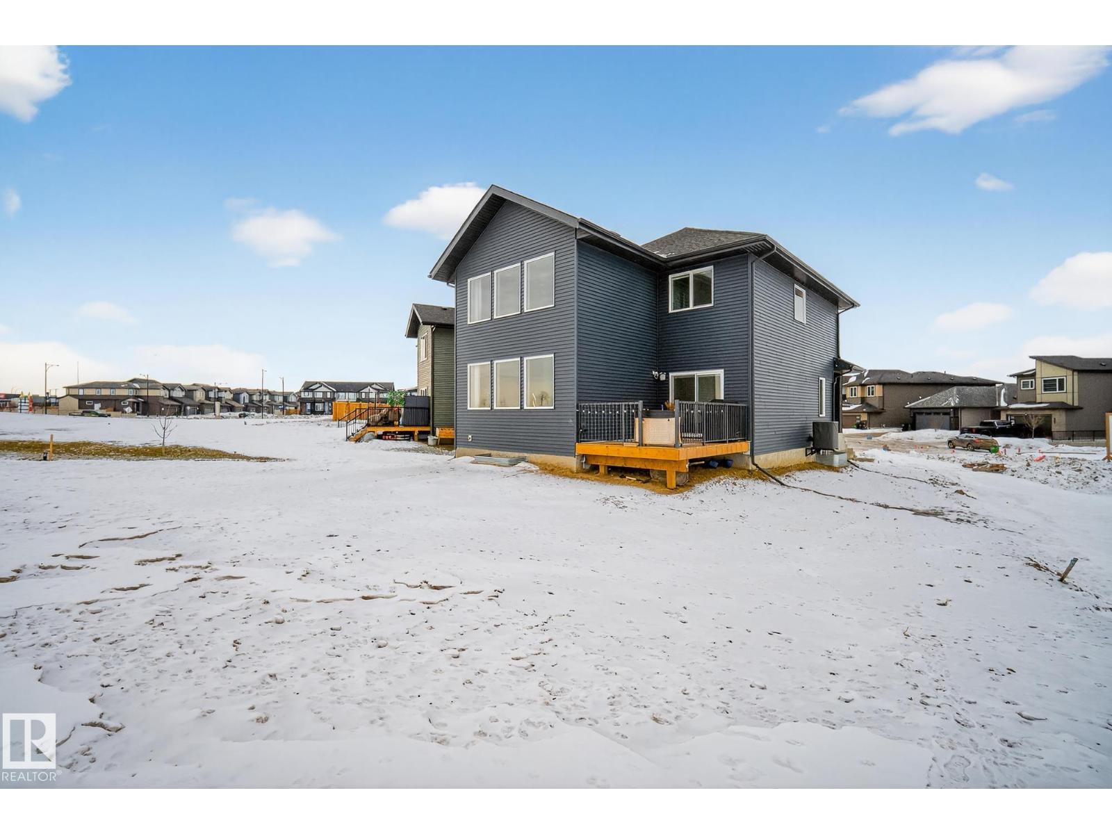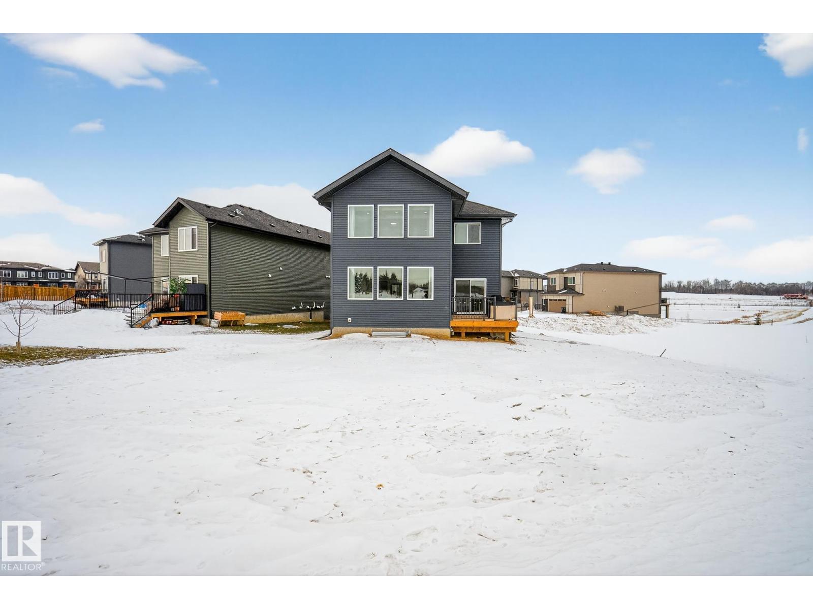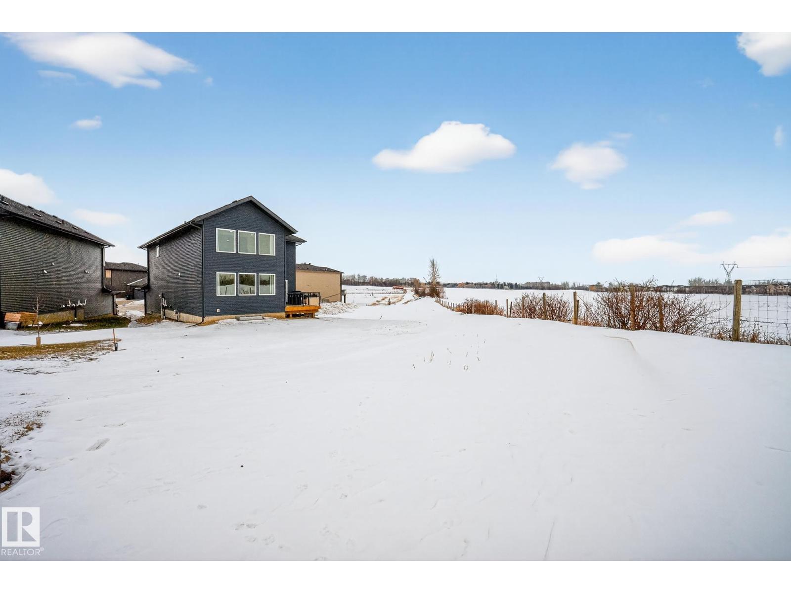 2,405 sq ft. 3 bed + office. Safe cul-de-sac w/quiet farmland behind, next to Alberta’s largest provincial park - 4,400 acre Lois Hole Provincial Park & Big Lake (8km x 3km), an extensive network of natural trails & green spaces. Lot is twice the size of standard building pocket: 820m2/8,800 sq ft. Pet washing station for after outdoor adventures. Location! Just off 215 St/Yellowhead/Trans Canada Hwy/Henday. 9km to WEM. 14km to downtown Edm. Central A/C, rear deck w/gas line for BBQ. All window coverings. Permanent Christmas lights. 18ft open-to-above ceilings, Chefs kitchen w/5'x8' island. 3 top floor bdrms PLUS large main flr office (8'10x13'X7). Bonus rm. Luxurious primary w/spa-like ensuite & walk-in. All baths finished w/natural stone counters. MDF shelving in pantry, mudroom & all closets for durable & elegant storage. Huge value - no GST payable, representing approx $35,000 savings. $2,500 landscaping deposit is pre-paid: will be transferred to buyer. Full new home warranty. Possession flexible. (id:51989)