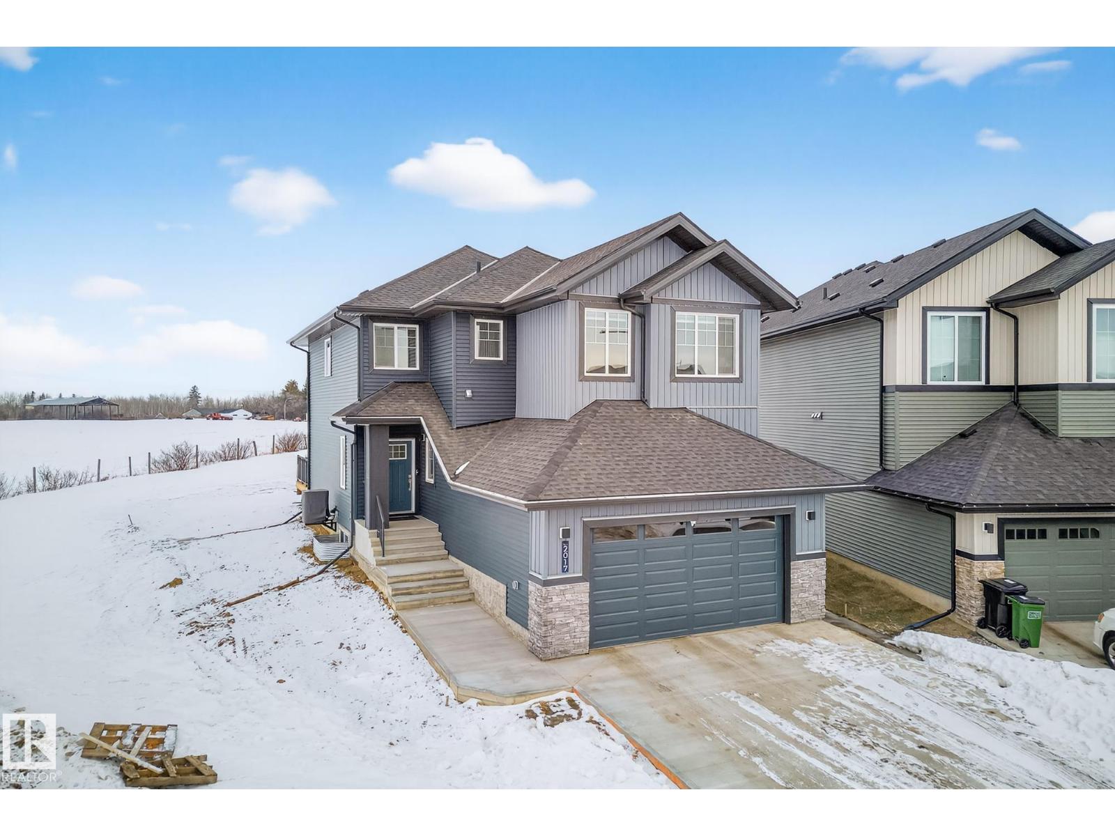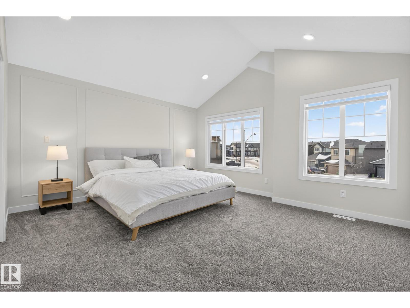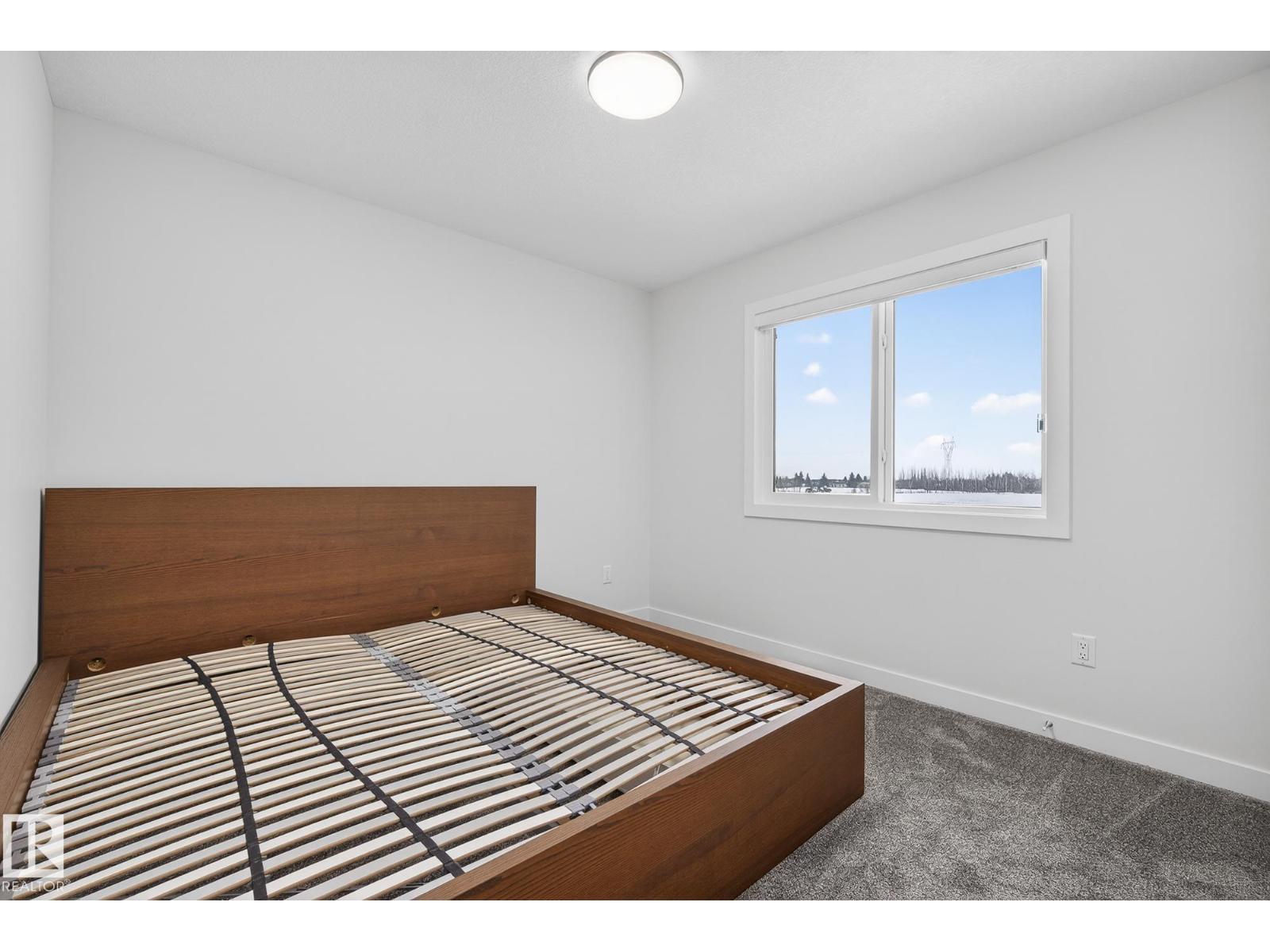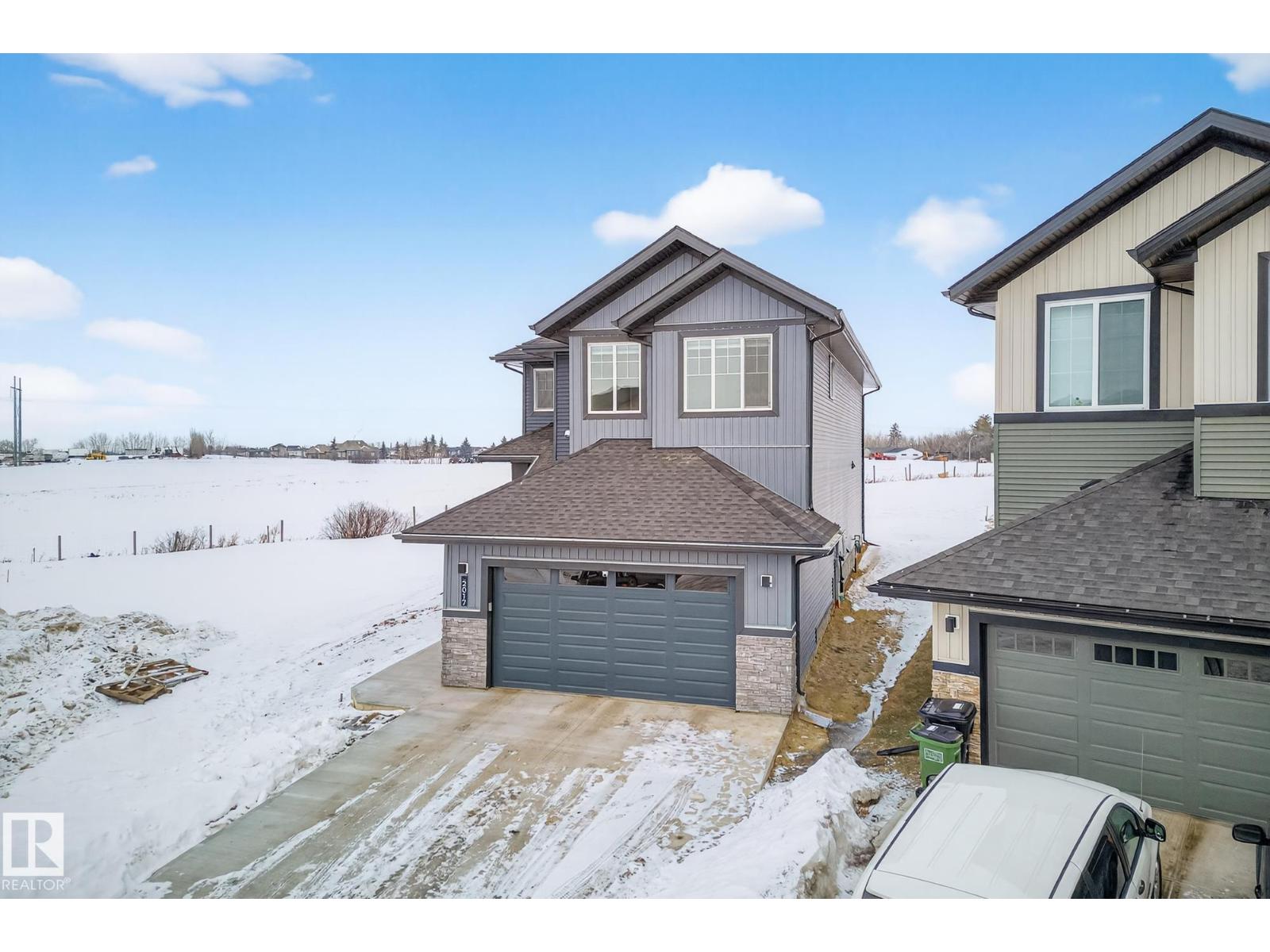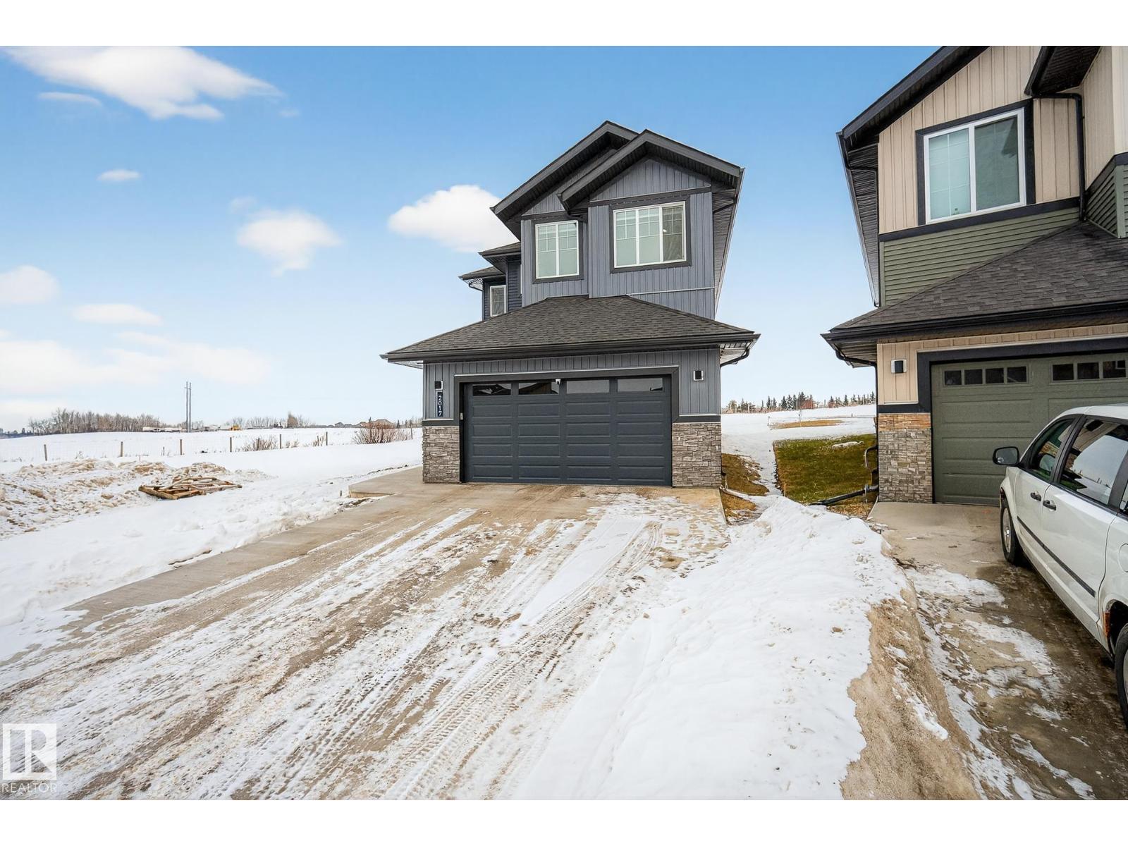 2,405 sq ft. 3 bed + office. Safe cul-de-sac w/quiet farmland behind, next to Alberta’s largest provincial park - 4,400 acre Lois Hole Provincial Park & Big Lake (8km x 3km), an extensive network of natural trails & green spaces. Lot is twice the size of standard building pocket: 820m2/8,800 sq ft. Pet washing station for after outdoor adventures. Location! Just off 215 St/Yellowhead/Trans Canada Hwy/Henday. 9km to WEM. 14km to downtown Edm. Central A/C, rear deck w/gas line for BBQ. All window coverings. Permanent Christmas lights. 18ft open-to-above ceilings, Chefs kitchen w/5'x8' island. 3 top floor bdrms PLUS large main flr office (8'10x13'X7). Bonus rm. Luxurious primary w/spa-like ensuite & walk-in. All baths finished w/natural stone counters. MDF shelving in pantry, mudroom & all closets for durable & elegant storage. Huge value - no GST payable, representing approx $35,000 savings. $2,500 landscaping deposit is pre-paid: will be transferred to buyer. Full new home warranty. Possession flexible. (id:51989)