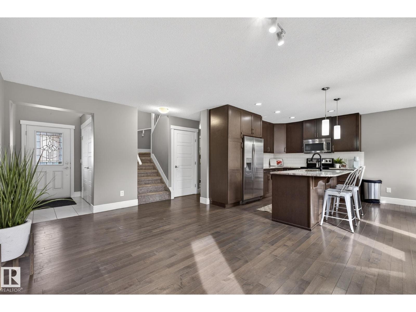Welcome to this Beautifully Crafted 1,404 sq/ft Two-Storey Half Duplex by Coventry Homes where Quality Construction meets Modern Comfort and Style. Step inside to discover a thoughtfully designed Open-Concept main floor featuring Rich Hardwood Flooring and a Stunning Chef’s Gourmet Kitchen complete with Granite Countertops and Sleek Cabinetry perfect for Cooking, Entertaining and Everyday Living. The Bright and Inviting Living and Dining Areas flow seamlessly creating a Warm and Functional space for Family Gatherings. Upstairs you’ll find Three Generously Sized Bedrooms including a Spacious Primary Retreat along with Two well appointed Bathrooms that offer both Convenience and Comfort for a Growing Family. Enjoy Year Round Comfort with Central Air Conditioning and step outside to your Fully Landscaped backyard featuring a large patio ideal for summer barbecues or relaxing evenings outdoors. Completing this exceptional home is a Double Attached Garage providing both Convenience and Additional Storage. (id:51989)