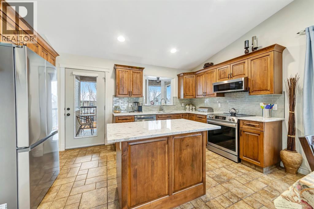 Welcome to your forever home in one of Lloydminster’s most desirable neighbourhoods! Nestled in a quiet close and backing onto a peaceful walking path just steps from Bud Miller Park, this beautiful bungalow is the perfect blend of comfort, space, and family living.Sitting on a massive 10,786 sq. ft. pie-shaped lot, this property offers plenty of room for kids to play, summer barbecues, and evening fires under the stars. You’ll also love the RV parking with oversized gated access—ideal for storing your trailer, boat, or any of your family’s adventure gear safe & out of sight. Step inside to a warm and welcoming open floor plan, featuring rich walnut flooring that ties the main living spaces together. The spacious kitchen includes new stone counter tops, a large island that’s perfect for family breakfasts or baking nights, new appliances and the three-way stone gas fireplace adds a cozy touch that connects the kitchen, dining, and living room beautifully.There are three bedrooms on the main floor, each offering comfort and style. The primary suite is a true retreat, complete with a full ensuite featuring a jetted tub, in-floor heat and a walk-in closet—a quiet space to unwind after a busy day.Downstairs, the walkout basement is bright and welcoming with large windows and newer carpet. It’s the perfect spot for family movie nights or entertaining friends, complete with a bar area and rough-ins for built-in speakers to create your own home theatre. Step outside to enjoy the stone patio and spacious backyard, perfect for playtime or relaxing weekends.You’ll also find a fourth bedroom with a walk-in closet, a full bathroom, and a finished laundry and utility room for added convenience.This home also features a double attached garage, central air conditioning, central vacuum, and all appliances included—everything your family needs for easy living.With its thoughtful layout, unbeatable location, and welcoming atmosphere, this home truly has it all—a place where me mories are made and families thrive. (id:51989)