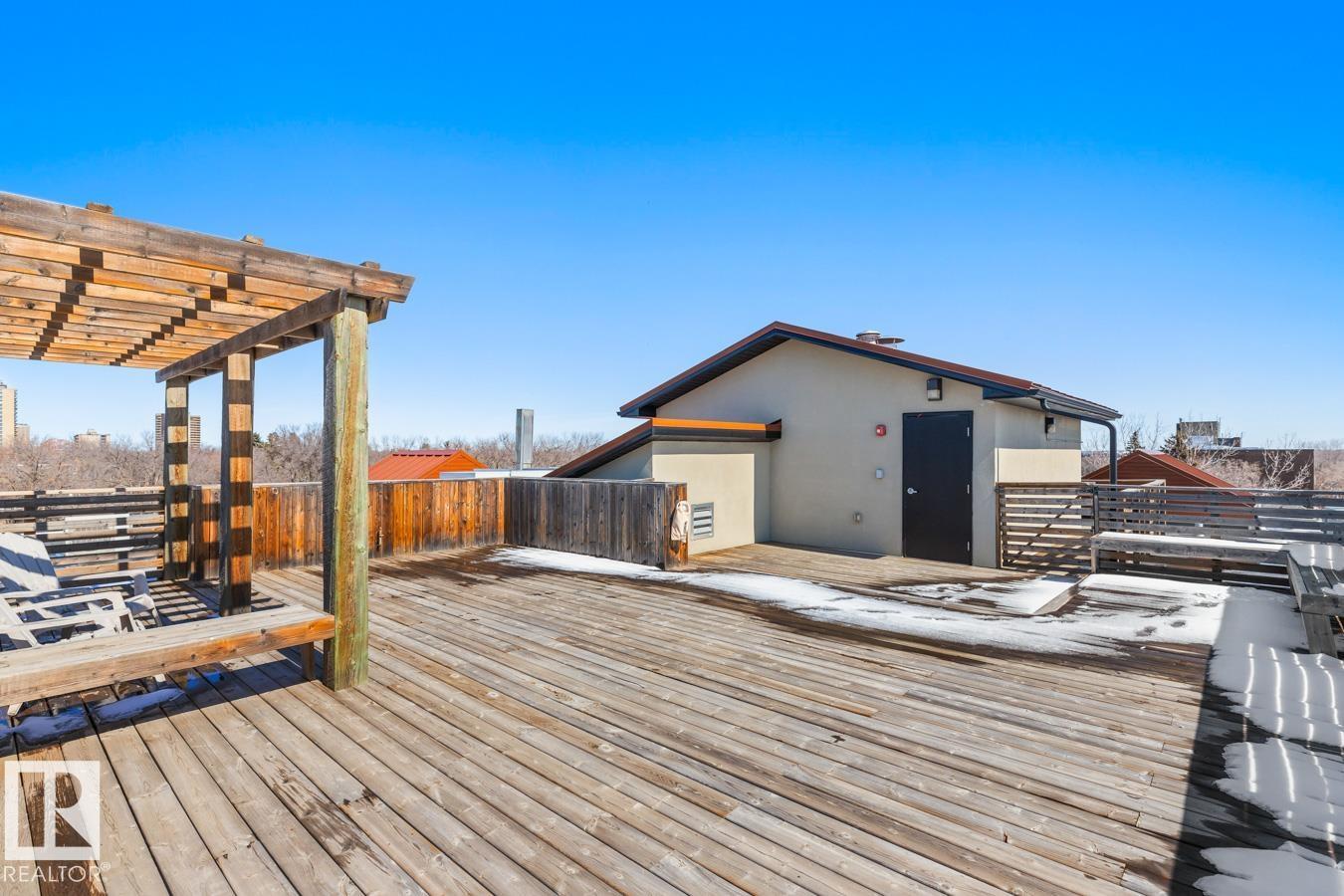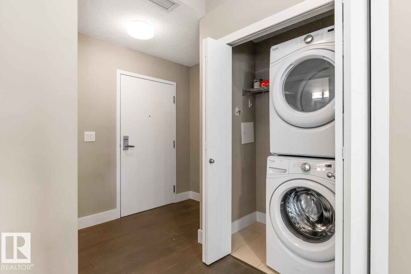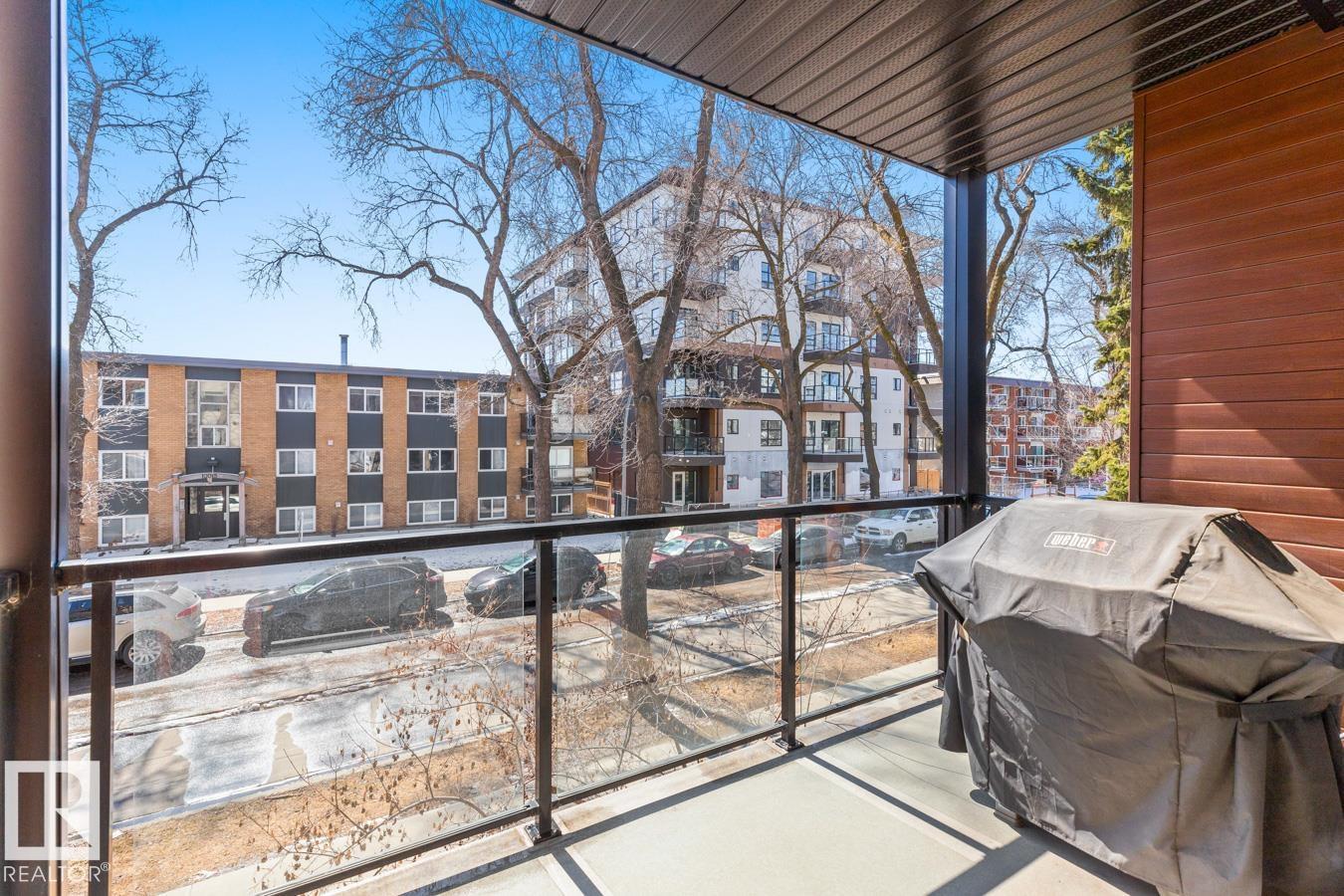 This Well Maintained Building Is Just Steps From Whyte Avenue Located Along A Lovely Tree Lined Street. Step Inside Your CORNER Unit & Enjoy This Airy & Open Layout Featuring 2 Bedrooms; 2 Bathrooms; Kitchen With Bar Style Counter With Room For 2 Bar Stools, Lots Of Soft Close Cupboards And Drawers, SS Appliances & Pot Lights; Eating Area; Living Room With Patio Doors to Your South Facing Patio With Natural Gas Hook-up. Convenient Stacked Washer/Dryer Off Your Kitchen In A Closet. Built-In Computer Desk Or A Place To Show Off Your Wine Collection! Primary Bedroom With Floor To Ceiling Mirrored Full Wall Closet Plus 3 Piece En-Suite. 4 Piece Bathroom. Bonus Is The Roof-Top Terrace With Stunning Panoramic Views, Benches To Sit On With Friends. Underground Parking & Extra Storage As Well. **HEAT & WATER Included In The Condo Fees.** Whether You Want To Grab Brunch, Check Out The Farmers Market Or Attend Local Festivals, This Place Has It All. Come On And Begin Your New Lifestyle On Whyte Avenue. (id:51989)