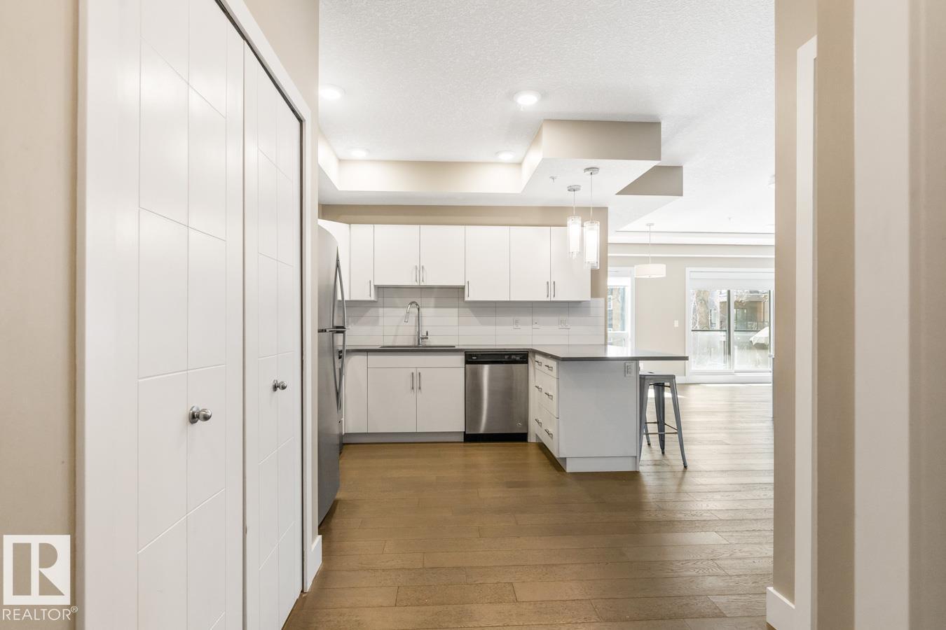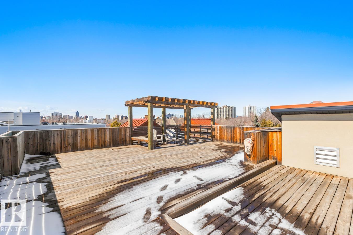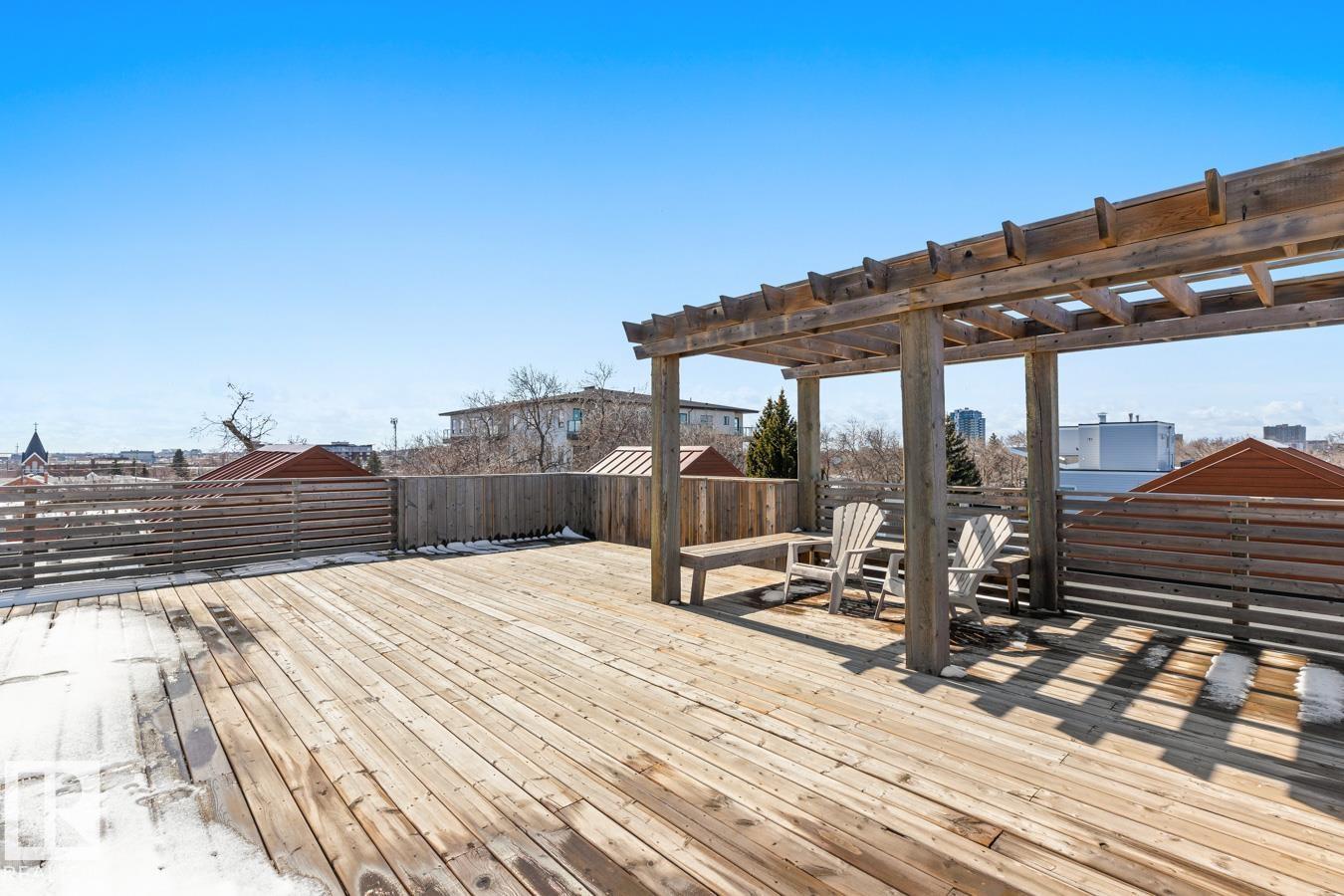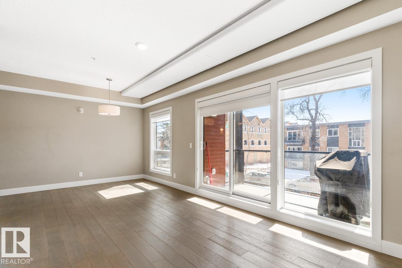 This Well Maintained Building Is Just Steps From Whyte Avenue Located Along A Lovely Tree Lined Street. Step Inside Your CORNER Unit & Enjoy This Airy & Open Layout Featuring 2 Bedrooms; 2 Bathrooms; Kitchen With Bar Style Counter With Room For 2 Bar Stools, Lots Of Soft Close Cupboards And Drawers, SS Appliances & Pot Lights; Eating Area; Living Room With Patio Doors to Your South Facing Patio With Natural Gas Hook-up. Convenient Stacked Washer/Dryer Off Your Kitchen In A Closet. Built-In Computer Desk Or A Place To Show Off Your Wine Collection! Primary Bedroom With Floor To Ceiling Mirrored Full Wall Closet Plus 3 Piece En-Suite. 4 Piece Bathroom. Bonus Is The Roof-Top Terrace With Stunning Panoramic Views, Benches To Sit On With Friends. Underground Parking & Extra Storage As Well. **HEAT & WATER Included In The Condo Fees.** Whether You Want To Grab Brunch, Check Out The Farmers Market Or Attend Local Festivals, This Place Has It All. Come On And Begin Your New Lifestyle On Whyte Avenue. (id:51989)
