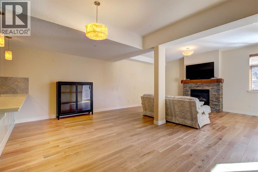 Luxurious apartment with downtown convenience! Experience the best of downtown convenience with this spacious, south-facing, single-level condo. Featuring two bedrooms plus a generous den, this home offers an open-concept layout with upscale finishes throughout. The main living area includes newly redone hardwood flooring. Relax by the cozy stone fireplace while enjoying breathtaking views of the iconic Three Sisters—visible from both the living room and the sun-soaked south-facing deck. The gourmet kitchen is a chef’s dream, complete with custom cabinetry, quartz countertops and stainless steel appliances. Both bedrooms include private ensuites and walk-in closets, while the large den offers flexible space for a home office or guest room. Additional highlights include in-suite laundry, ample storage and a dedicated parking stall. Amazing location footsteps to many of Canmore's attractions including shopping and dining plus numerous walking and biking trails. (id:51989)
