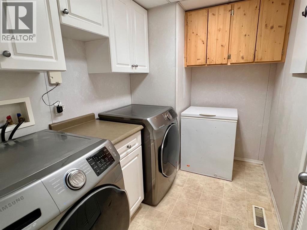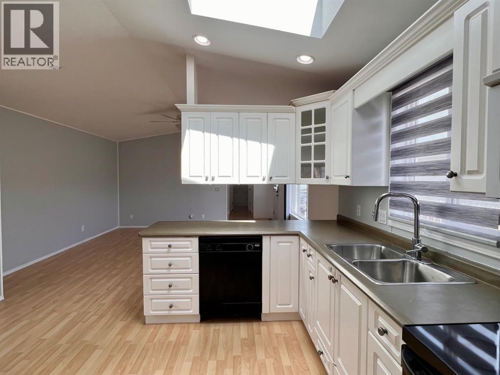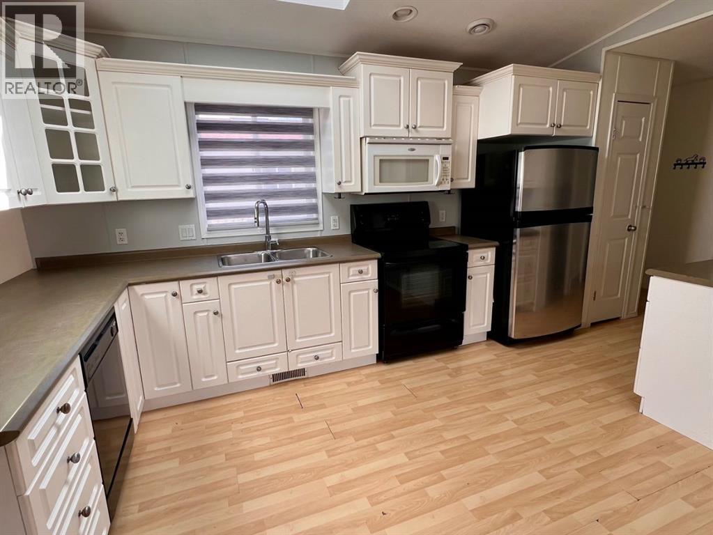 Welcome to Trumpeter Mobile Home Park, a sought-after and well-maintained community known for its pride of ownership. This 3-bedroom, 2-bathroom modular offers a great layout, including a spacious primary bedroom with ensuite. The home features plenty of natural light from large windows and a skylight over the kitchen sink, creating a bright and open feel. This property offers a great opportunity for buyers looking to add value and make it their own. Lot fees include common area maintenance, garbage, snow removal, and sewer. Conveniently located just minutes from schools, parks, walking trails, and shopping. (id:51989)
