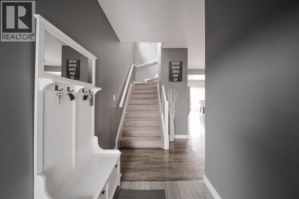 Welcome to 206 Athabasca Avenue: a well cared for two storey home rebuilt by Triumph Homes and owned by the original owner ever since. Offering 1,720 square feet of thoughtfully designed living space, this home is ideally located in Abasand just steps from the school and with easy access to bus routes and downtown, making it a convenient choice for families and commuters alike.Curb appeal is modern and inviting, complemented by an attached double garage and a two car driveway. The garage is heated and includes a workbench and deep freezer that will stay with the home. Inside, the main level features an open concept layout that flows comfortably from the living room into the kitchen and dining area, creating a welcoming space for everyday living and entertaining. The kitchen is finished with slow close cabinetry, under cabinet lighting and stainless steel appliances. Upstairs, the home offers three bedrooms and two full bathrooms, along with a small bonus living space that works well as a play area, reading nook, or home office. The primary suite is a standout, featuring a walk through walk in closet leading to the ensuite, complete with a soaker tub accented by a chandelier and a separate walk in shower. A convenient two piece bathroom is located on the main floor.The basement is partially developed with plumbing already roughed in for an additional bathroom. Central air conditioning adds comfort through the warmer months, and a brand new washer was installed in 2025.The fully fenced backyard is designed for low maintenance with crushed stone throughout. A gazebo and prefab shed are included, offering practical outdoor storage and a shaded space to relax. Schedule your private showing and explore the value and convenience this Abasand home has to offer. (id:51989)