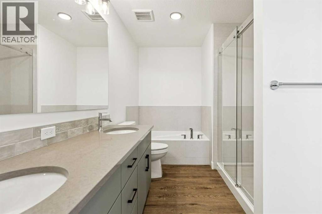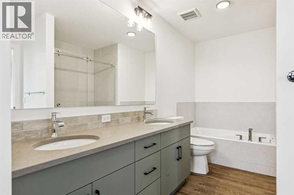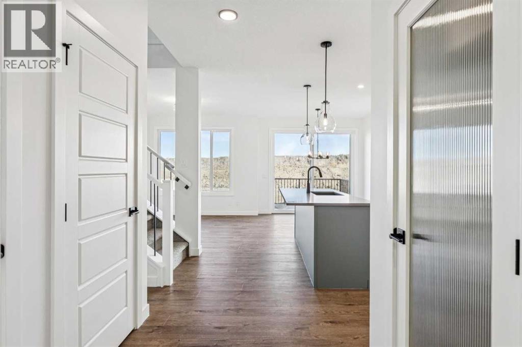 Welcome to the Abbott by Sterling Homes Calgary! Built by a trusted builder with over 70 years of experience, this home showcases on-trend, designer-curated interior selections tailored for a home that feels personalized to you. Energy efficient and smart home features, plus moving concierge services included in each home.Built to 2025 specifications, this home features LVP throughout the main floor and wet areas, triple-pane and additional windows, and an electric fireplace with mantel. The kitchen offers stainless steel appliances, chimney hoodfan, built-in microwave, a Silgranit sink, island with pendant lighting, Quartz countertops with undermount sinks, and a pantry with french door. The main floor includes a bedroom and full bath, while the primary bedroom features a 5-piece ensuite with soaker tub, tiled-wall fiberglass shower, and a bank of drawers. Enjoy upper-floor laundry, a vaulted bonus room, paint-grade railing with iron spindles, a side entrance, 9' basement ceilings, and a rear deck with BBQ gas line rough-in. This energy-efficient home is Built Green certified and includes triple-pane windows, a high-efficiency furnace, and a solar chase for a solar-ready setup. With blower door testing that may be eligible for up to 25% mortgage insurance savings, plus an electric car charger rough-in, it’s designed for sustainable, future-forward living. Featuring a full range of smart home technology, this home includes a programmable thermostat, ring camera doorbell, smart front door lock, smart and motion-activated switches—all seamlessly controlled via an Amazon Alexa touchscreen hub.Some photos are representative. (id:51989)
