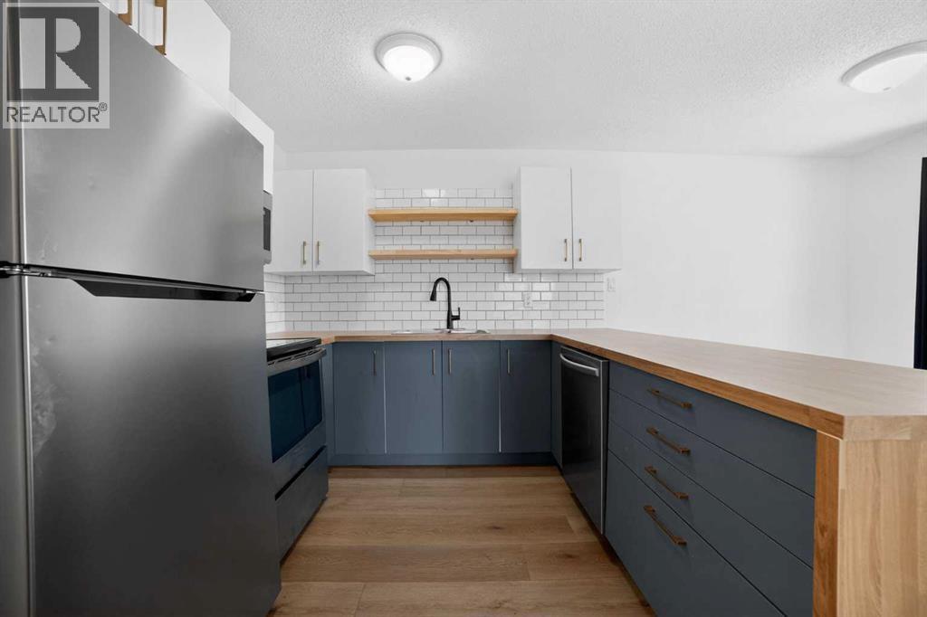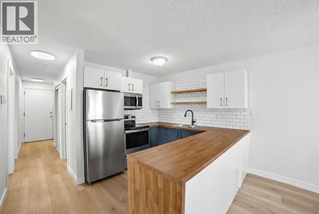 Nicely updated 2 bed, 1 bath 2nd floor condo in the Forest Grove building in South Lethbridge! Immediate possession available. Current owner has recently added some new LED light fixtures, paint touch ups, and a brand new a/c wall unit to keep cool in the summer. Condo has vinyl plank floors, a modern kitchen will full appliance package, and is one of the few units in the building that has it's own in-suite laundry! Living room has access to a south facing balcony. Nice view off the balcony to sit and enjoy. Corner unit to enjoy plenty of sunlight! Condo fees of $393/month include your heat, professional management, exterior maintenance, reserve fund, snow removal on property and your parking spot, and lawncare on property, water, sewer, garbage. You just pay your electricity! Internet and TV would be your own as well from whichever provider you choose. One assigned parking stall with plug-in for block heater in the winter. Close to parks, convenience store, and public transit! Move in and enjoy, or add this to your rental portfolio. (id:51989)