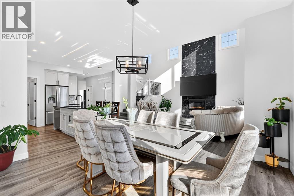 Welcome to an exceptional 2023-built home in the community of Dawson’s Landing, where modern design, everyday functionality, and income potential come together on a generous 5,793 sqft quiet corner lot. Offering an impressive 3,514 sqft of beautifully developed living space, this west-facing residence is designed to capture warm afternoon light, filling the home with a bright and inviting atmosphere from the moment you arrive. Step inside the expansive main floor, where a grand foyer and 9-foot ceilings set the tone for the elegance that unfolds throughout. The open-concept layout seamlessly connects the kitchen, dining, and living areas, anchored by a breathtaking living room ceiling that soars over 18 feet. A stunning floor-to-ceiling tiled gas fireplace creates a dramatic focal point, adding warmth and sophistication to the heart of the home. The chef-inspired kitchen is both stylish and practical, featuring built-in appliances, ample cabinetry, abundant counter space, a massive walk-in pantry, and an oversized island perfect for entertaining, family gatherings, and effortless meal preparation. A main floor bedroom and full bathroom provide ideal flexibility for guests, multigenerational living, or a private home office, while the convenient boot room offers direct access to the double attached garage. The upper level continues to impress with over 1,300 sqft of thoughtfully designed space. A bright and open bonus room is bathed in natural light, creating the perfect retreat for relaxing or family movie nights. The luxurious primary suite is privately positioned and features a spacious walk-in closet along with a spa-inspired 5-piece ensuite complete with double vanities. On the opposite side of the home, three additional generously sized bedrooms share a full bathroom, offering comfort and privacy for the entire family. A well-appointed laundry room with additional storage completes this level.The fully developed lower level offers outstanding versatility with its own private side entrance leading to a beautifully finished illegal basement suite spanning 930 sqft. Complete with a full kitchen, two bedrooms, a spacious living room, full bathroom, full-size washer and dryer, and dedicated utility room storage, this space is ideal for extended family, guests, or potential mortgage helper opportunities. Outside, the large landscaped yard is designed for both relaxation and entertaining, featuring a garden, gazebo, and concrete patio perfect for summer evenings and weekend gatherings. Ideally located near a convenient shopping complex for all your everyday and on-the-go needs, this remarkable home offers luxury, space, and lifestyle in one of the area’s most desirable settings. (id:51989)