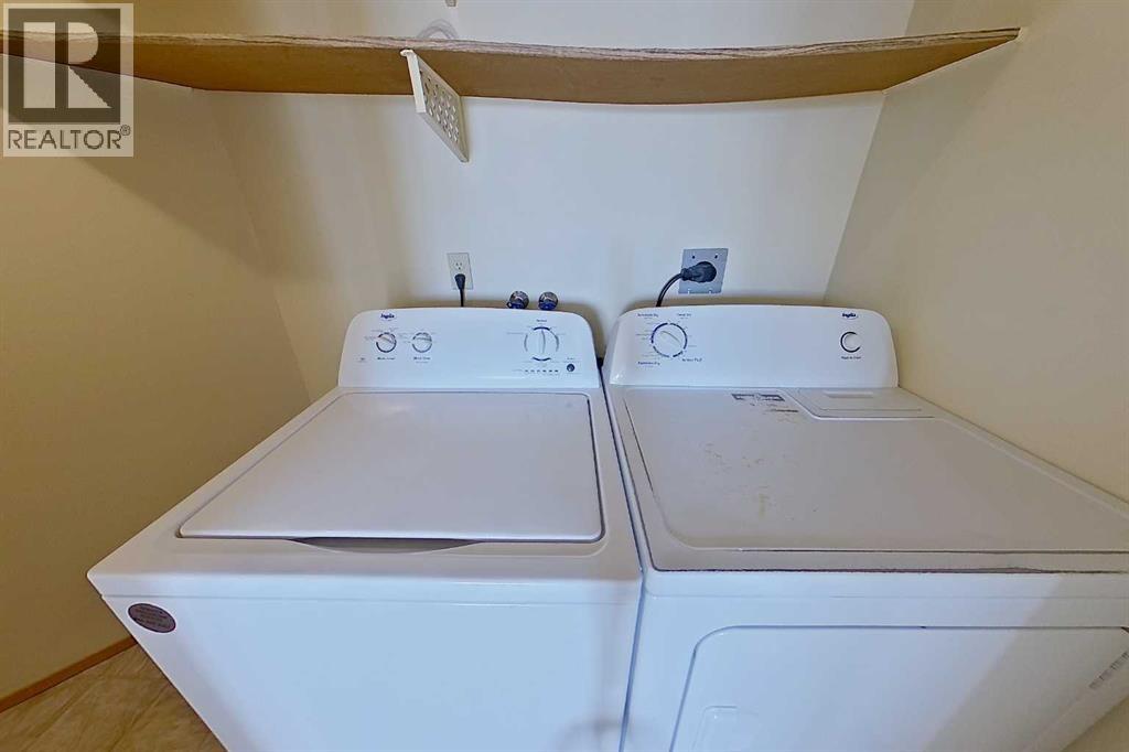 1153 Sq Ft...3 Bedroom, 2 Bath; Corner unit in Grizzly Ridge. The open concept floor plan has a large living/dining room with access to a private balcony. Kitchen has a eating bar that opens into the dining room, European cabinets, 3 appliances and a pantry in the hall. Primary Bedroom with a walk-in closet and 2 additional bedrooms share the 2 Pc and 4 Pc Bathrooms. In suite laundry room with storage. Condo fee incl. Professional Property Management, Building Manager/Caretaker, Heat, Water, Garbage, Reserve Fund, exterior/ground/snow Maintenance and Building Insurance. Great property for a 1st time buyer, investor or empty nester... looking for a carefree lifestyle. (id:51989)