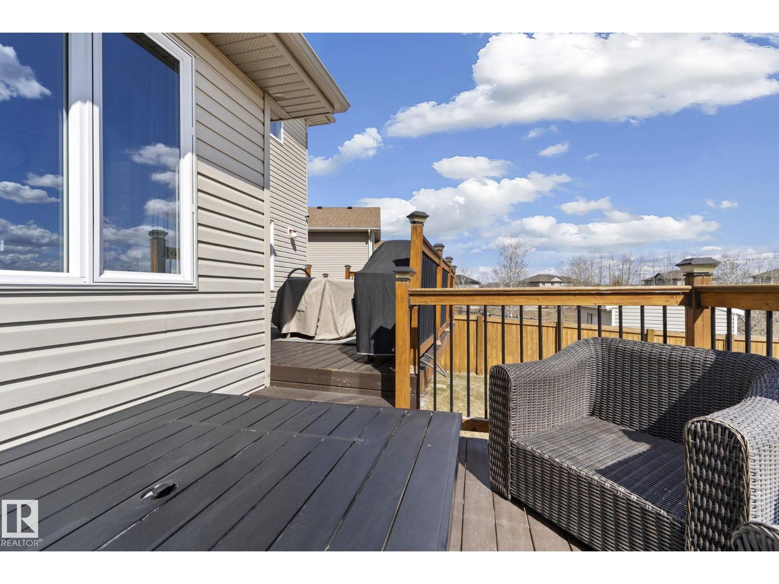 WELCOME TO this fully finished RAYBORNE home! Roomy tiled foyer leads you the bright and open living space! Main floor flex room is great for a den, sitting or music room or even play area! Cozy up to the gas fireplace in the living room boasting hardwood flooring and big south facing window. This area overlooks the renovated kitchen where you'll find loads of white cabinetry, quartz counters, stainless appliances, corner pantry and a 2-tiered island. The family sized dining area has a big window and garden door leading to a massive 2 tiered deck (with gas hookup for bbq and firepit) and newly landscaped yard! Oh the view - no neighbors behind! Upstairs offers a large bonus room, 2 spacious bedrooms, 4 piece bathroom AND a huge king sized primary bedroom! Downstairs is perfectly designed for entertaining with a rec room,4th bedroom,bathroom and tons of storage. Other features: new furnace, water heater & gemstone lights in 2025, O/S double garage, extra large driveway-loads of room for parking! (id:51989)