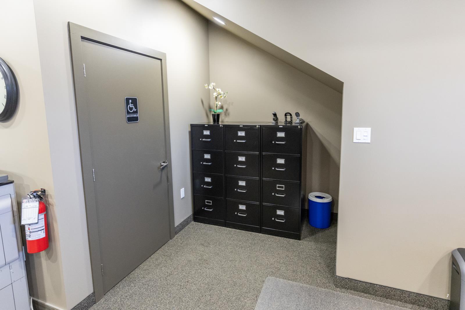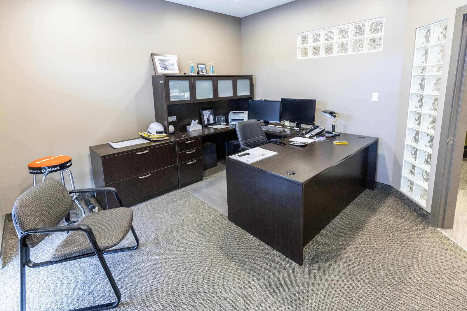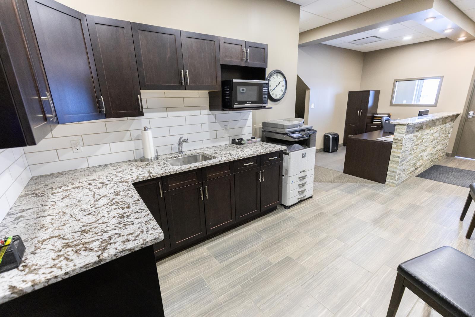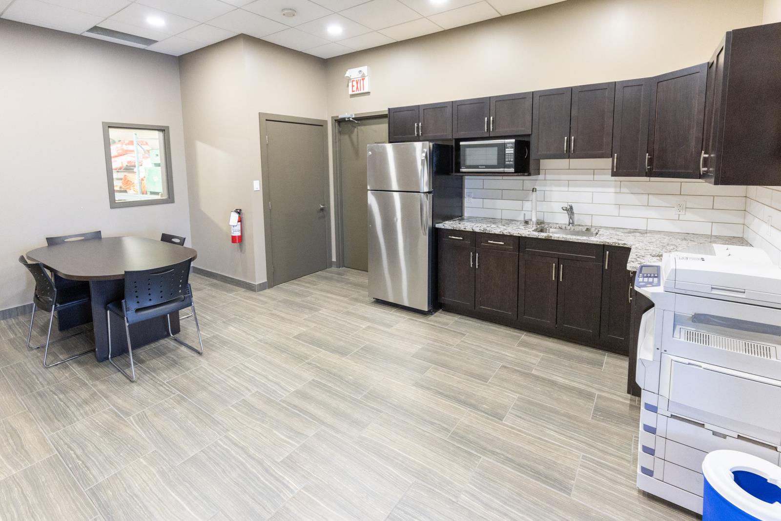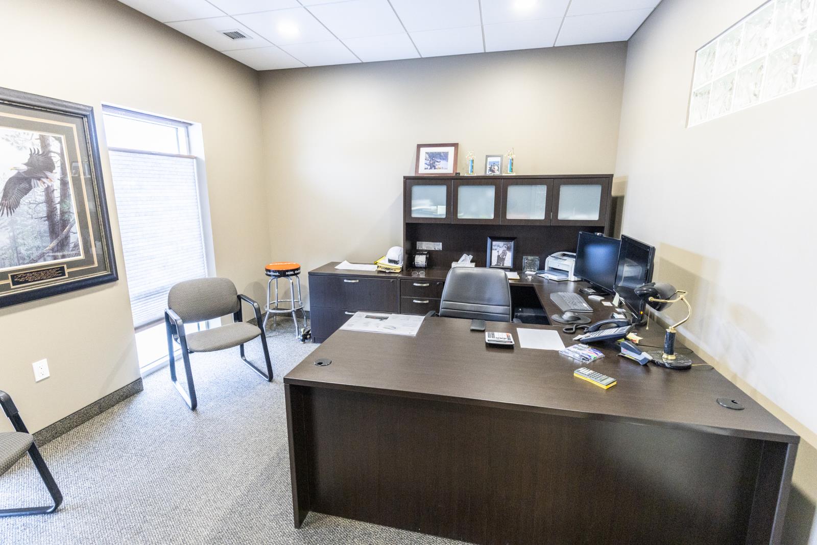 This versatile industrial building (zoned IM) offers an excellent combination of functional shop space and well-sized office areas, making it ideal for a variety of commercial or light industrial uses. The warehouse/shop measures 50’ x 30’ and features a durable, fully epoxy-finished floor and 2pc bathroom. Ceiling heights reach approximately 32’ at the peak and 20’ - 24’ at the low end, providing outstanding vertical clearance for equipment, racking, or storage. A 16’ x 14’ overhead door enhances accessibility, while a well-designed tool crib and mezzanine add valuable storage efficiency. Complementing the warehouse is a thoughtfully designed office component with both main-floor and mezzanine offices, each measuring 30’ x 30’. The main level includes two offices, an attractive reception area with built-in desk, granite countertops, filing and storage, plus a two-piece bath and kitchenette. The upper level features two additional offices, an executive boardroom, staff kitchen, two-piece bath, and eating area. A fenced rear yard measuring 30’ x 130’ is available for storage at $588 per month if required. Overall, this property presents an excellent opportunity for businesses seeking a clean, functional, and well-maintained industrial space with strong ceiling height and flexible office integration. (id:51989)